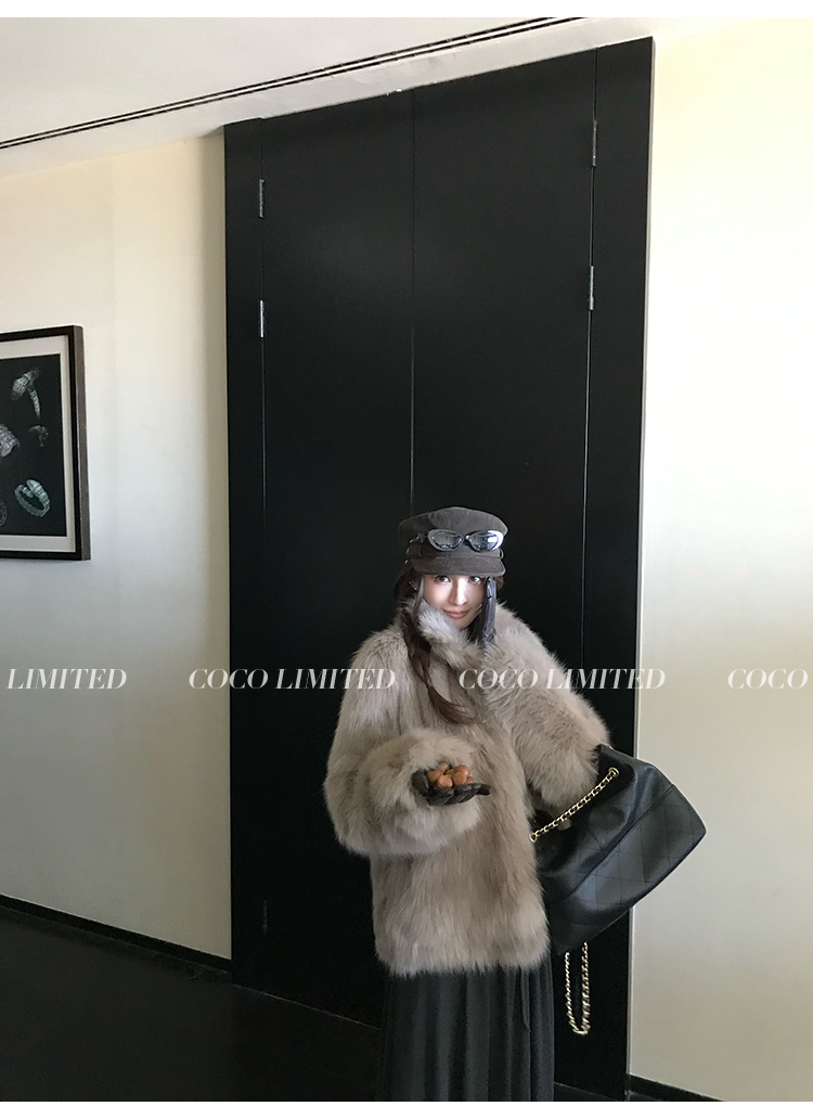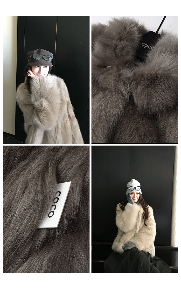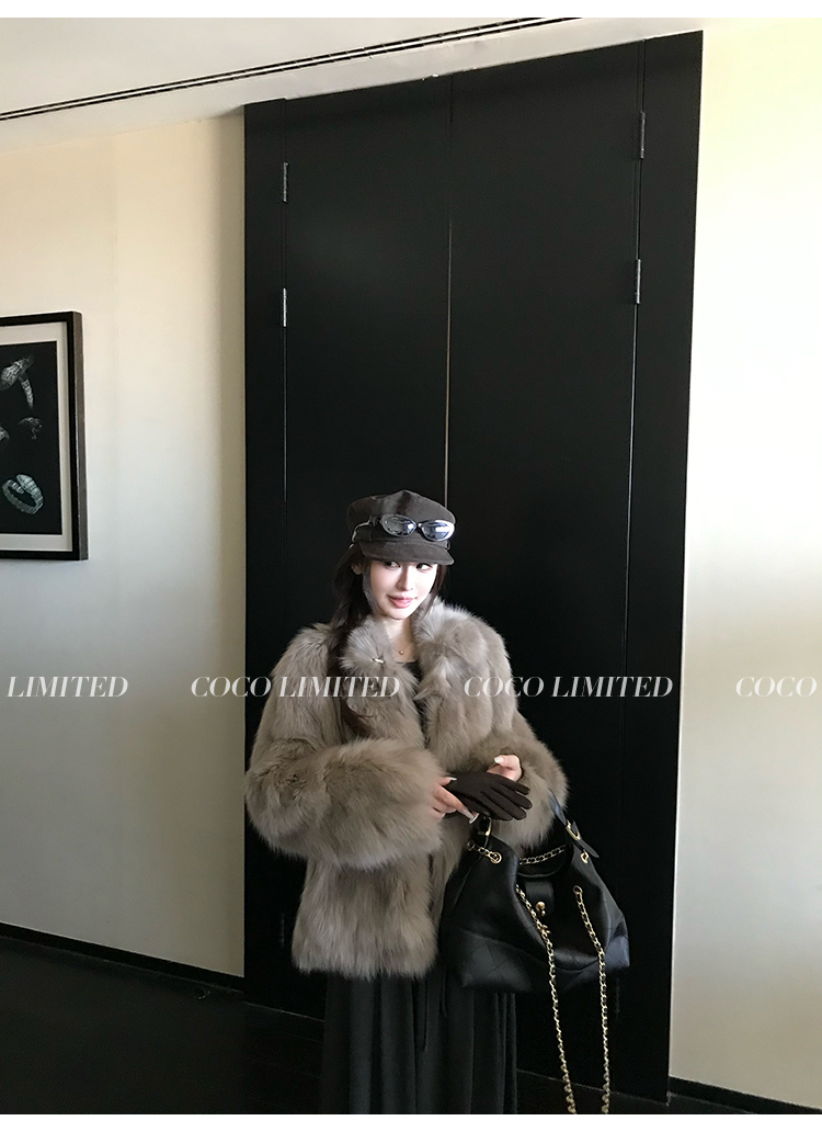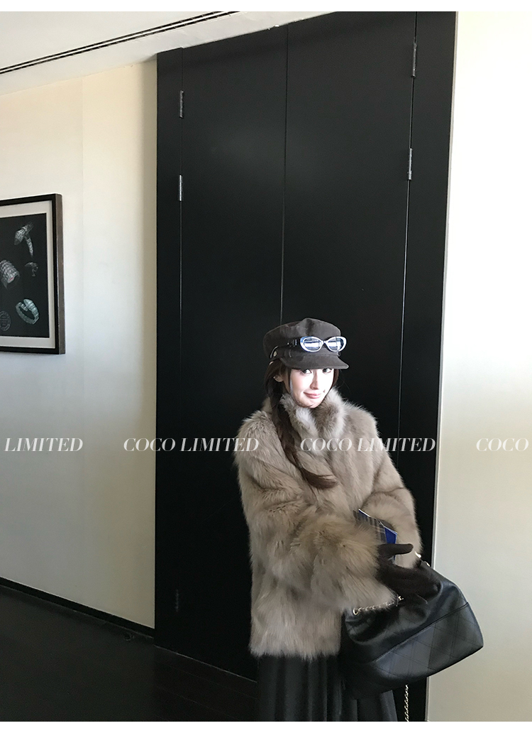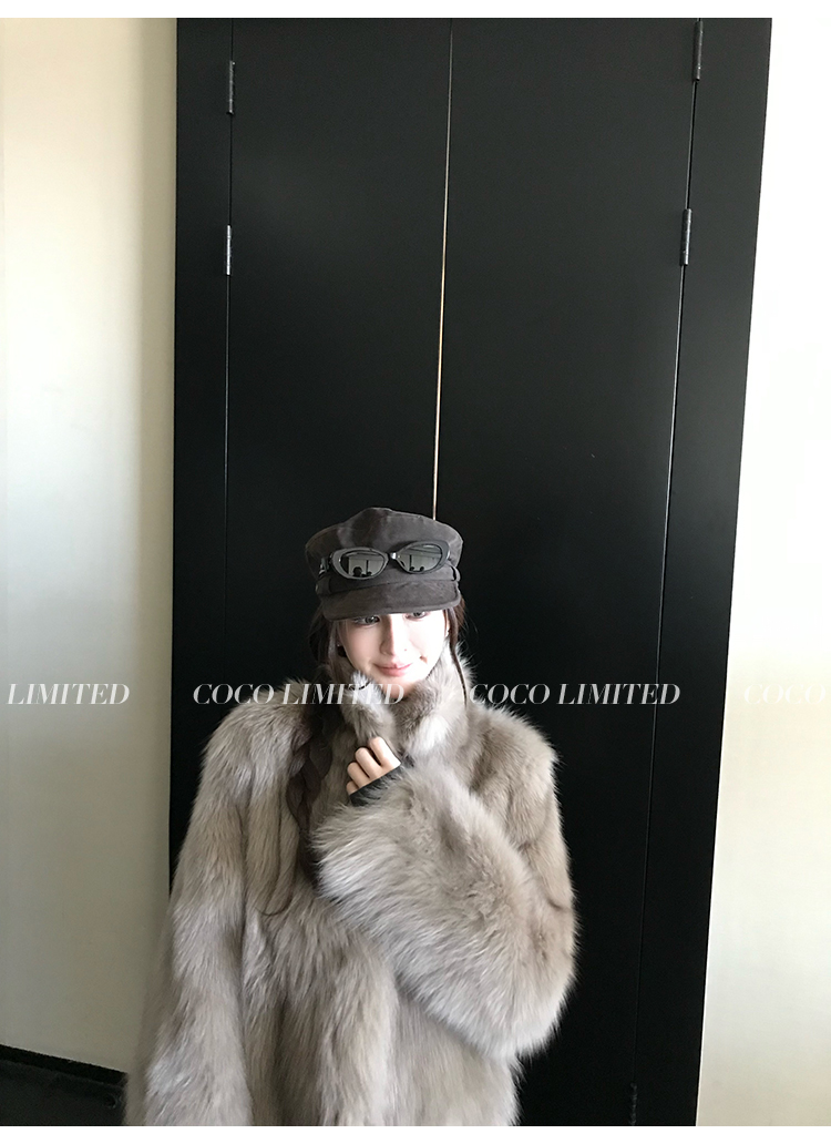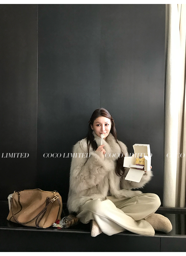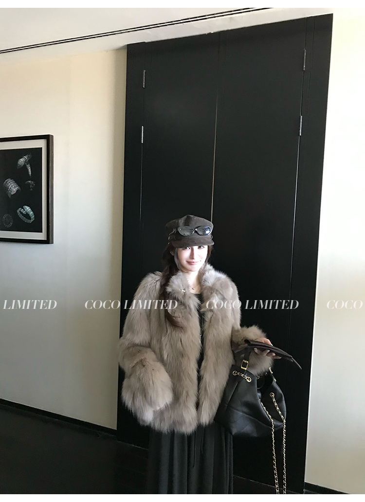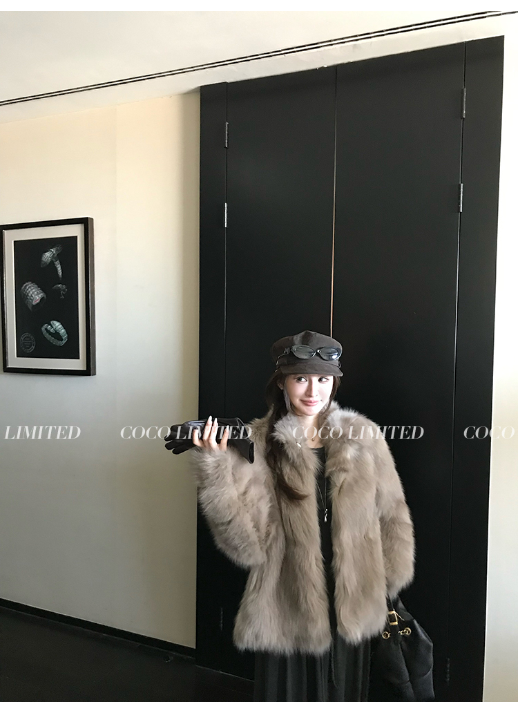 Coco Fur "Minuet" Reversible Stand-Up Collar Finnish Saga Imported Fox Fur Belly Fur Coat