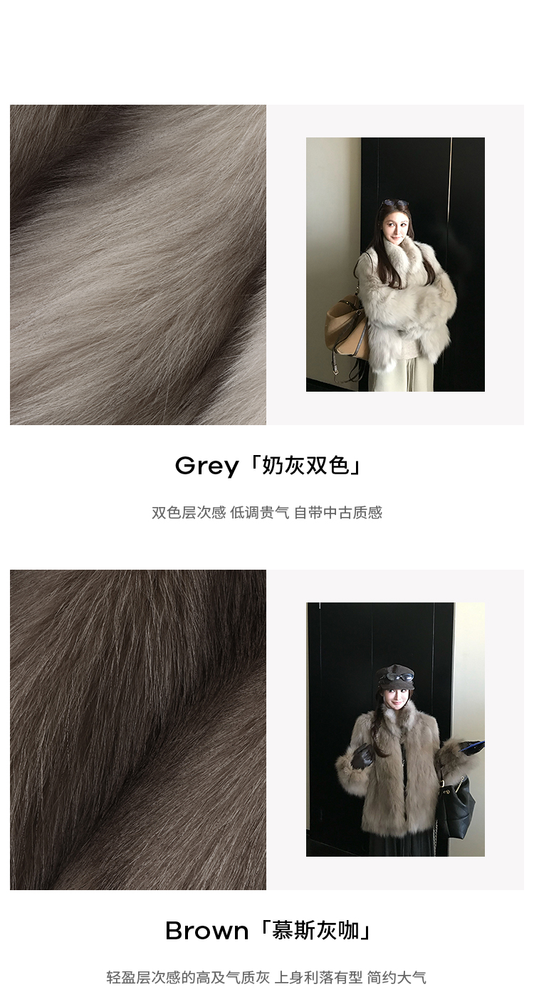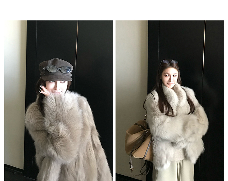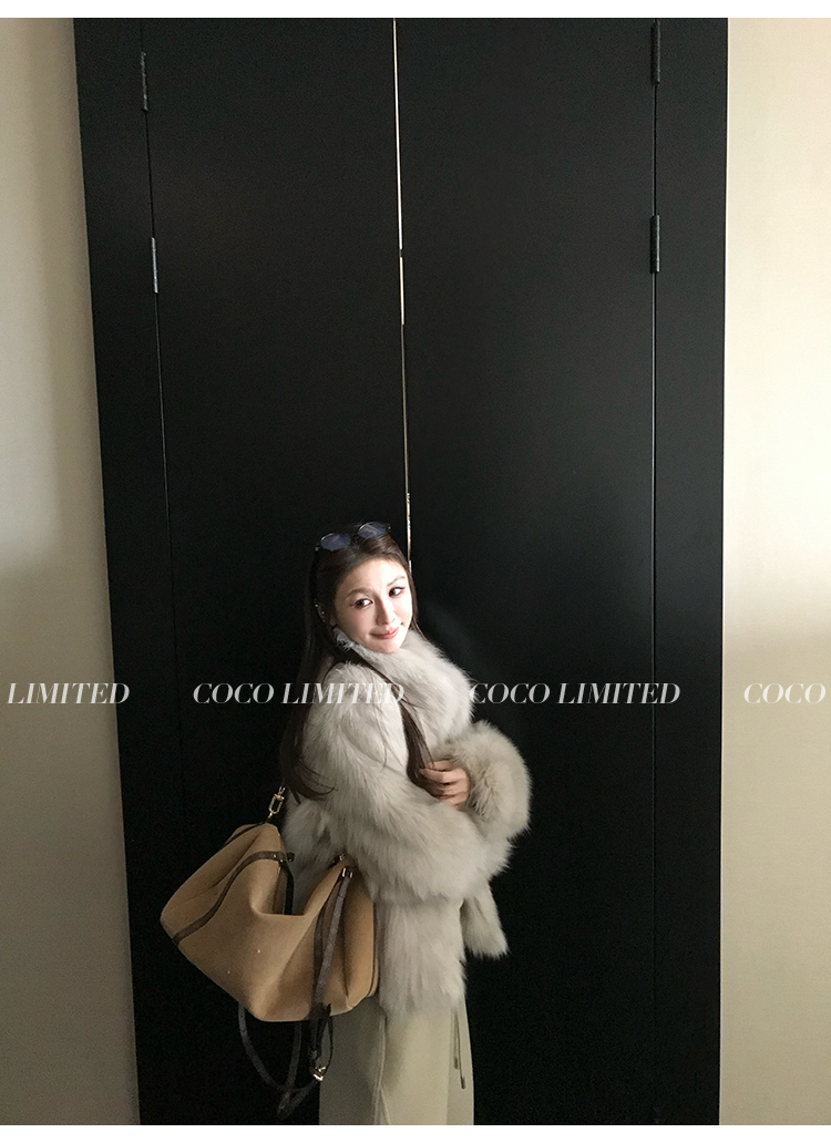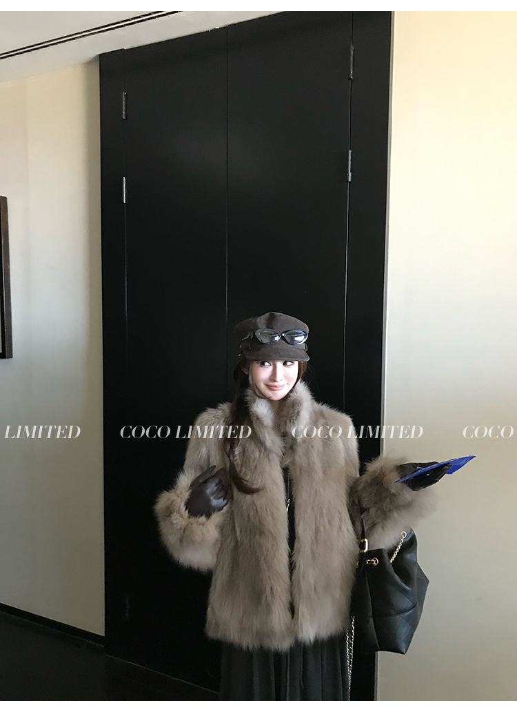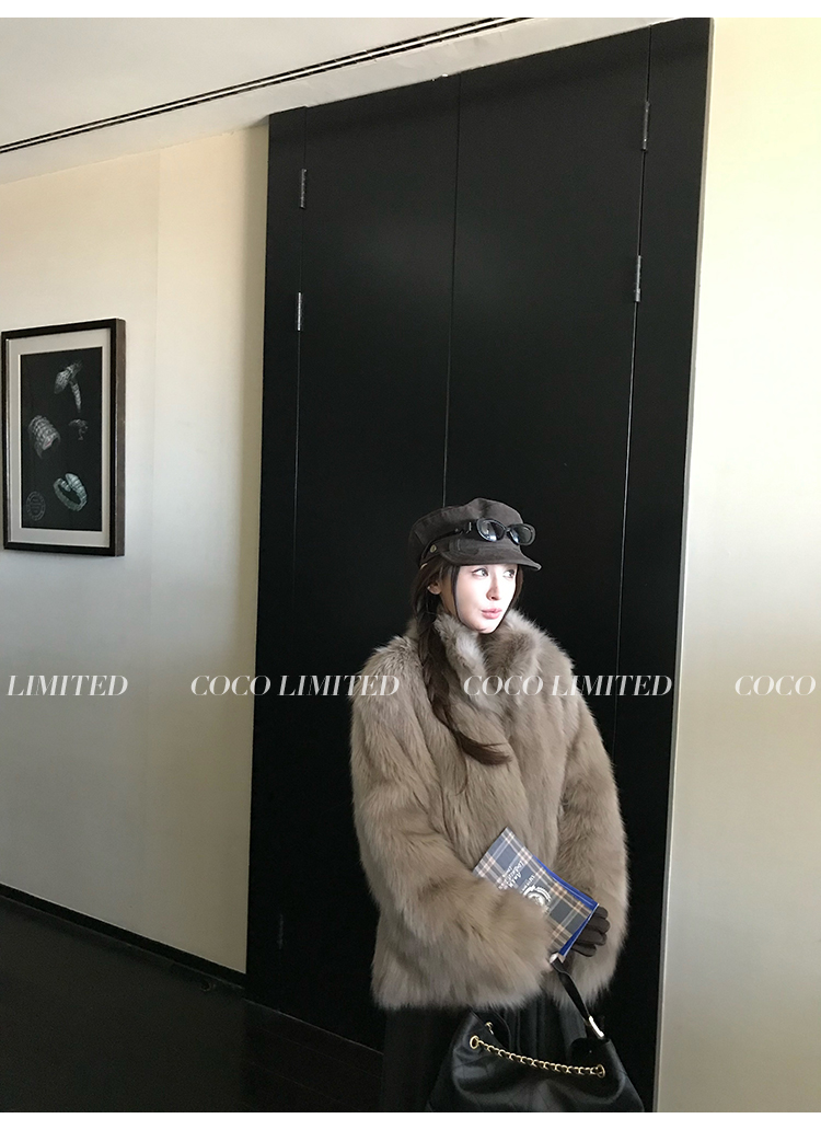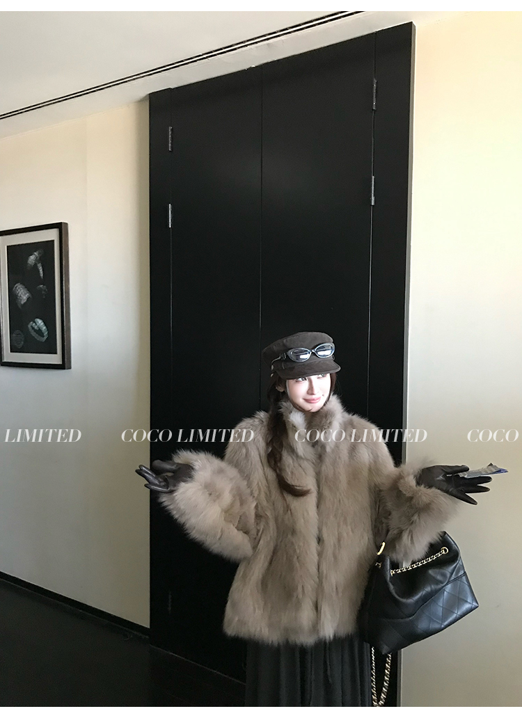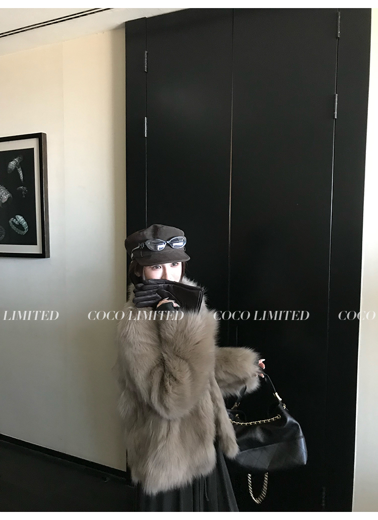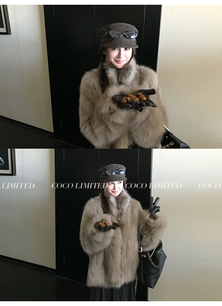 Coco Fur "Minuet" Reversible Stand-Up Collar Finnish Saga Imported Fox Fur Belly Fur Coat