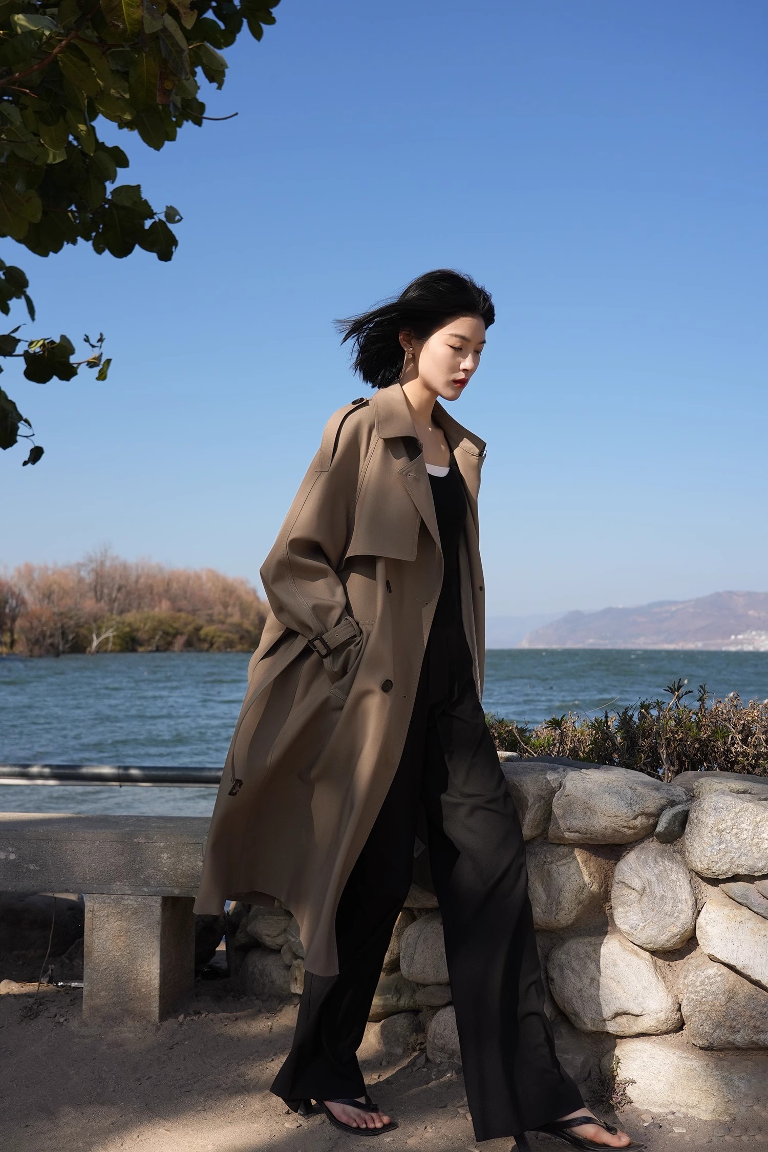 High-end giant good-looking windbreaker coat for women long style tall 2025 autumn and winter new popular popular coat British style