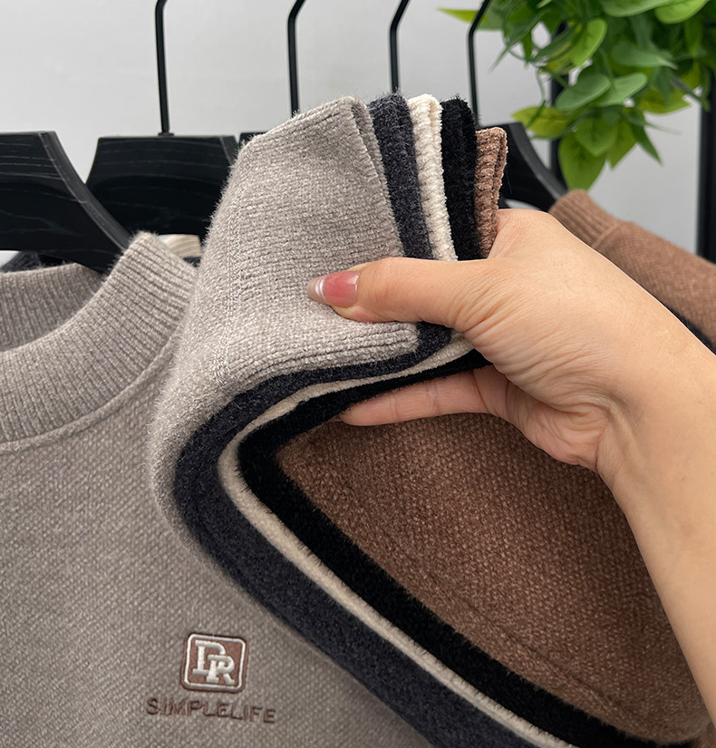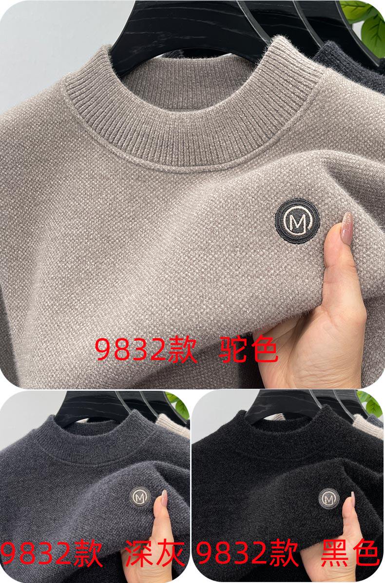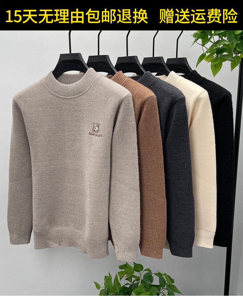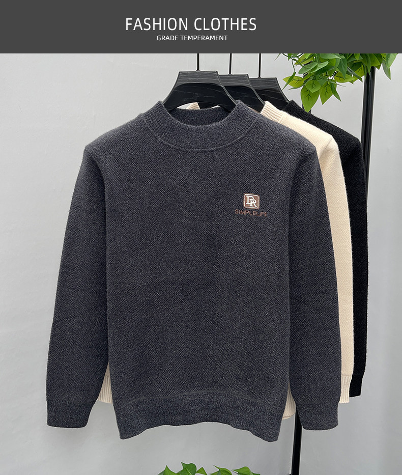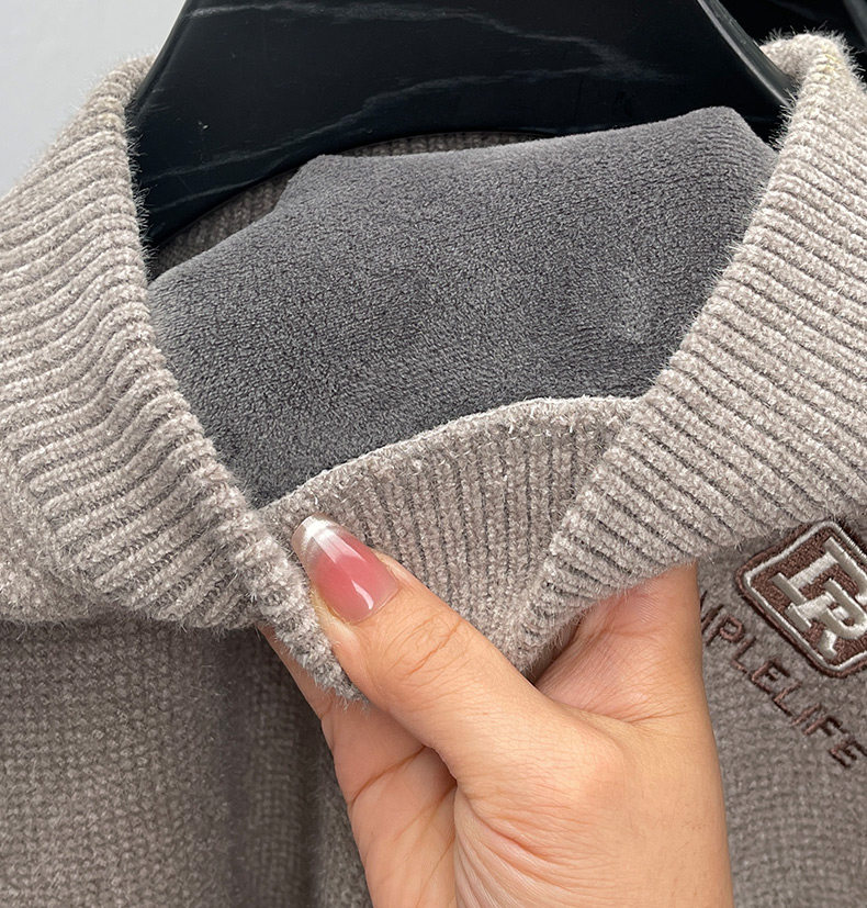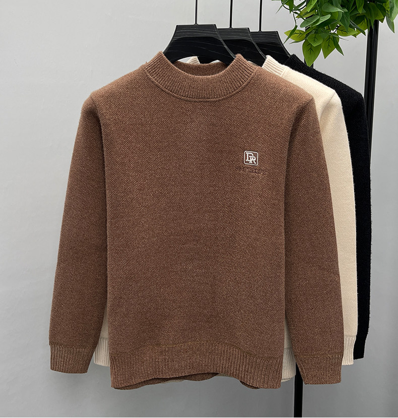 One-piece velvet winter half-turtleneck sweater for young and middle-aged men, new fashion embroidered velvet thickened warm sweater trendy