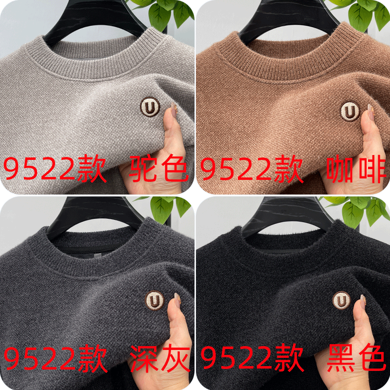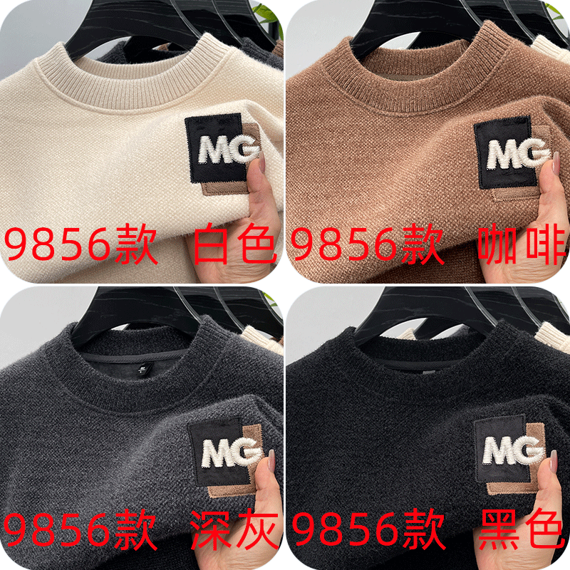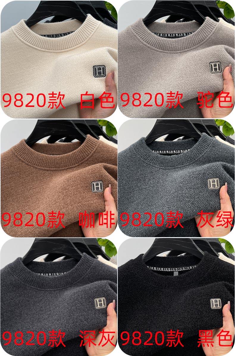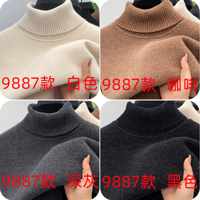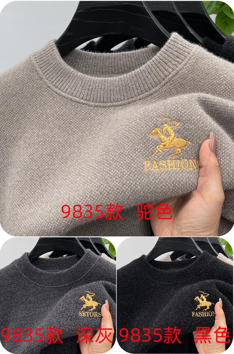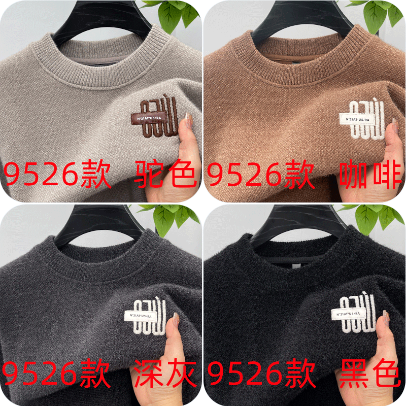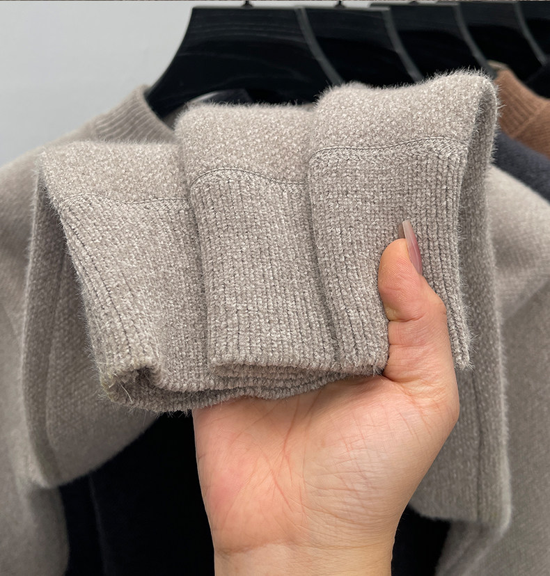 One-piece velvet winter half-turtleneck sweater for young and middle-aged men, new fashion embroidered velvet thickened warm sweater trendy