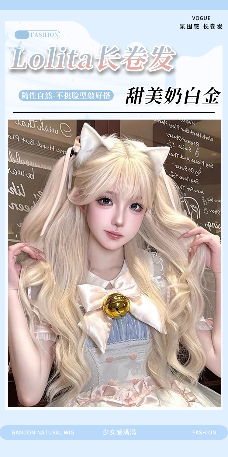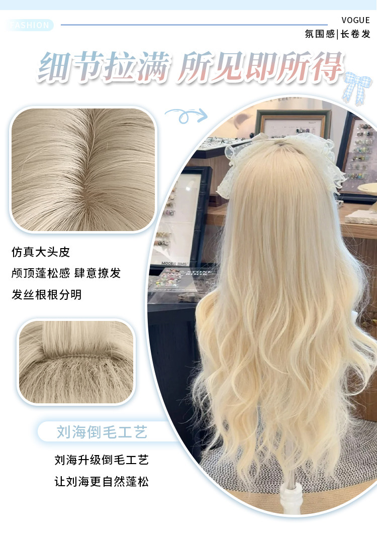 [Princess Jasmine] Wig for Women, Long White Gold Hair, Long Curly Hair, Lolita Style, Big Waves, Natural and Fluffy, Full Head Wig