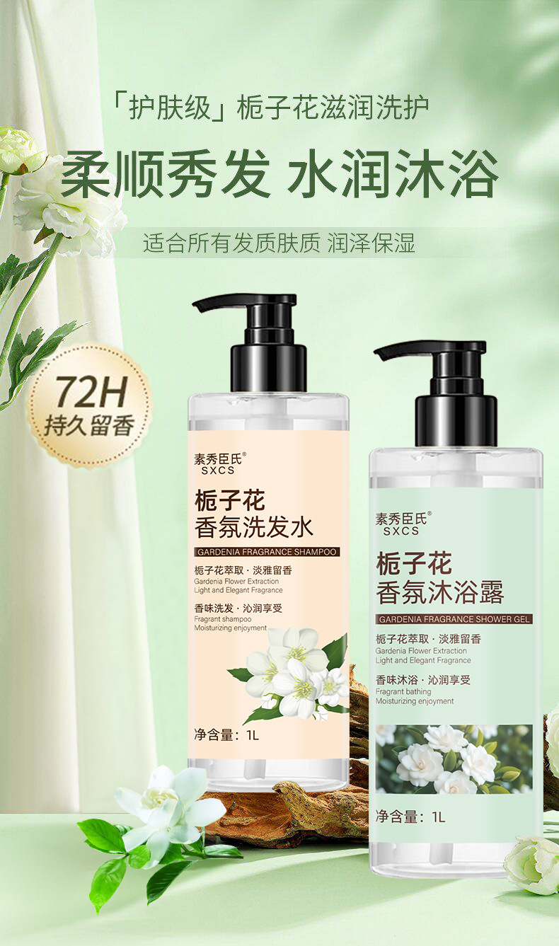 香味 栀子花沐浴露1L大瓶装,栀子花洗发水1L大瓶装,洗护套装【洗发水+沐浴露】
