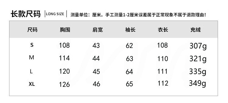 Fleece filling amount (g) 307-349g