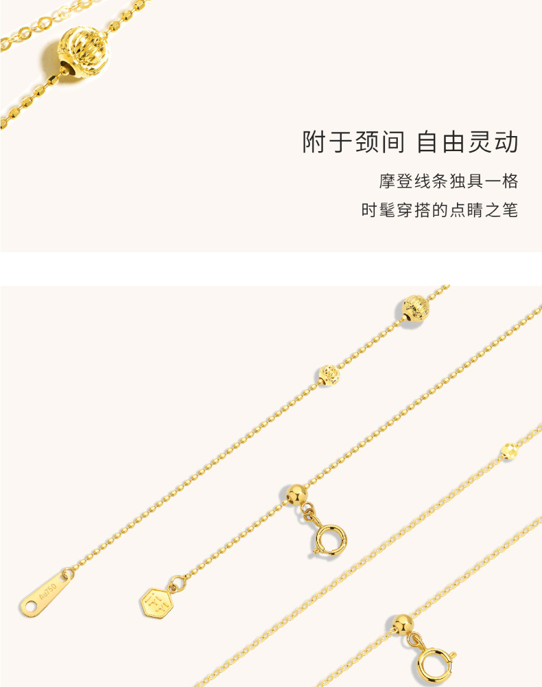 Blogger's Same Style Iff Jewelry 18K Gold Clavicle Chain Necklace Bead Chain Layered Plain Chain Neck Chain Neptune Chain Gift