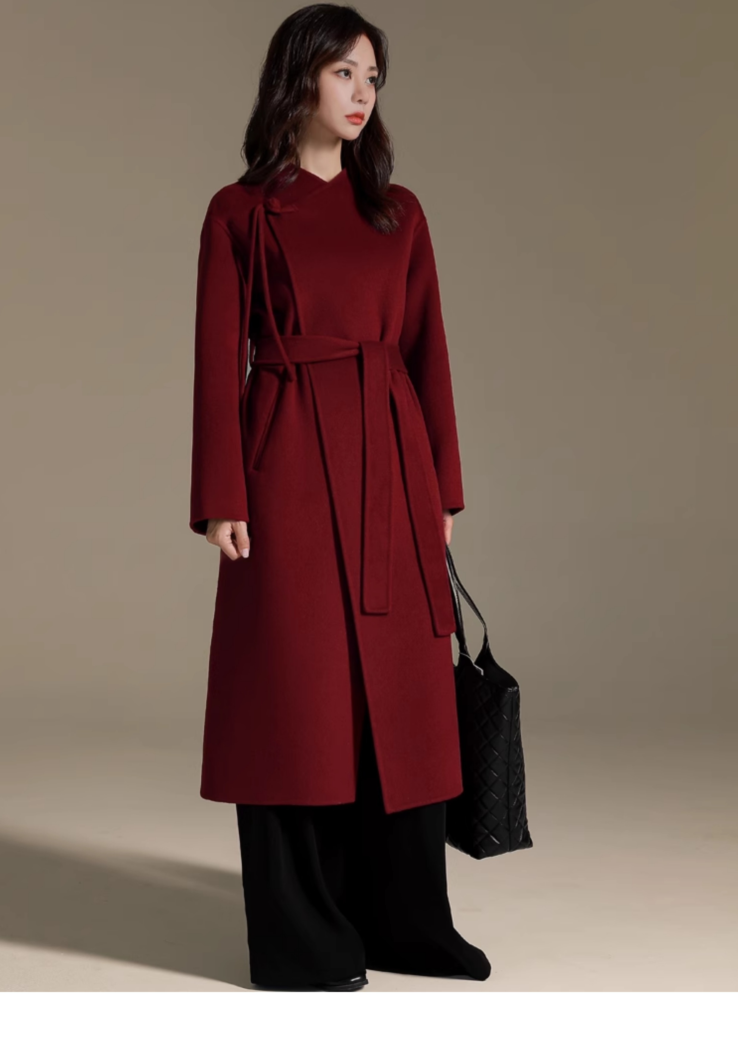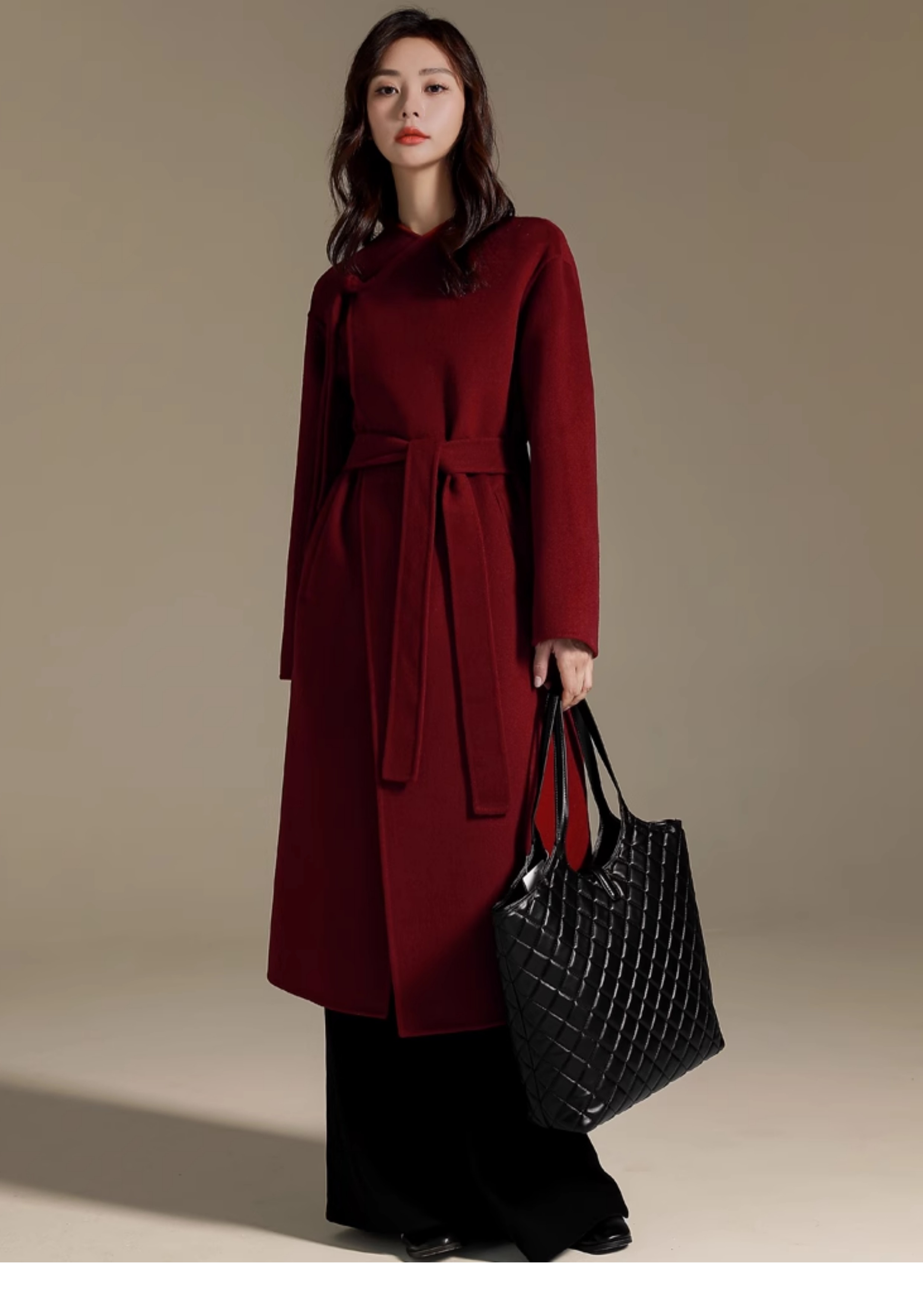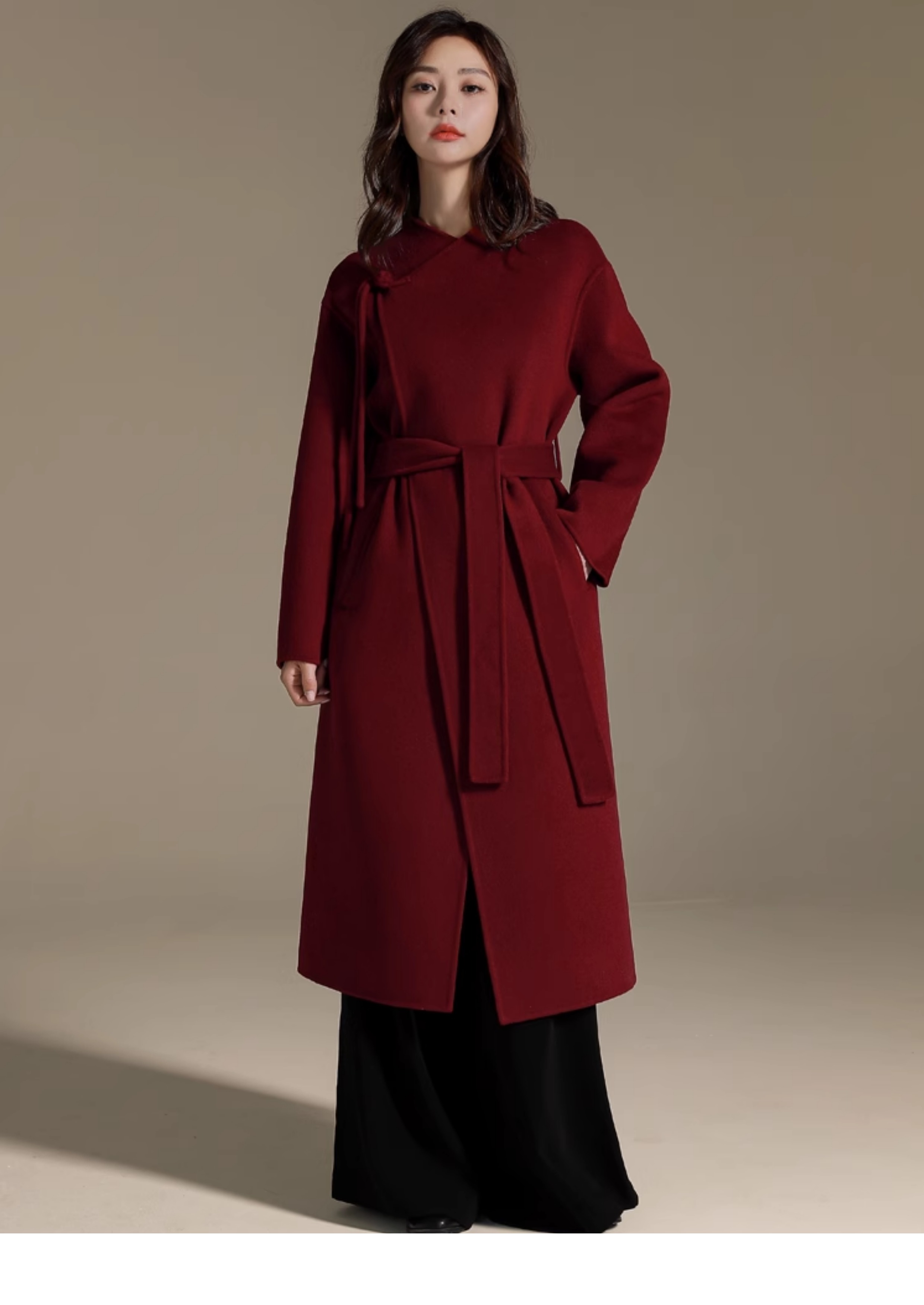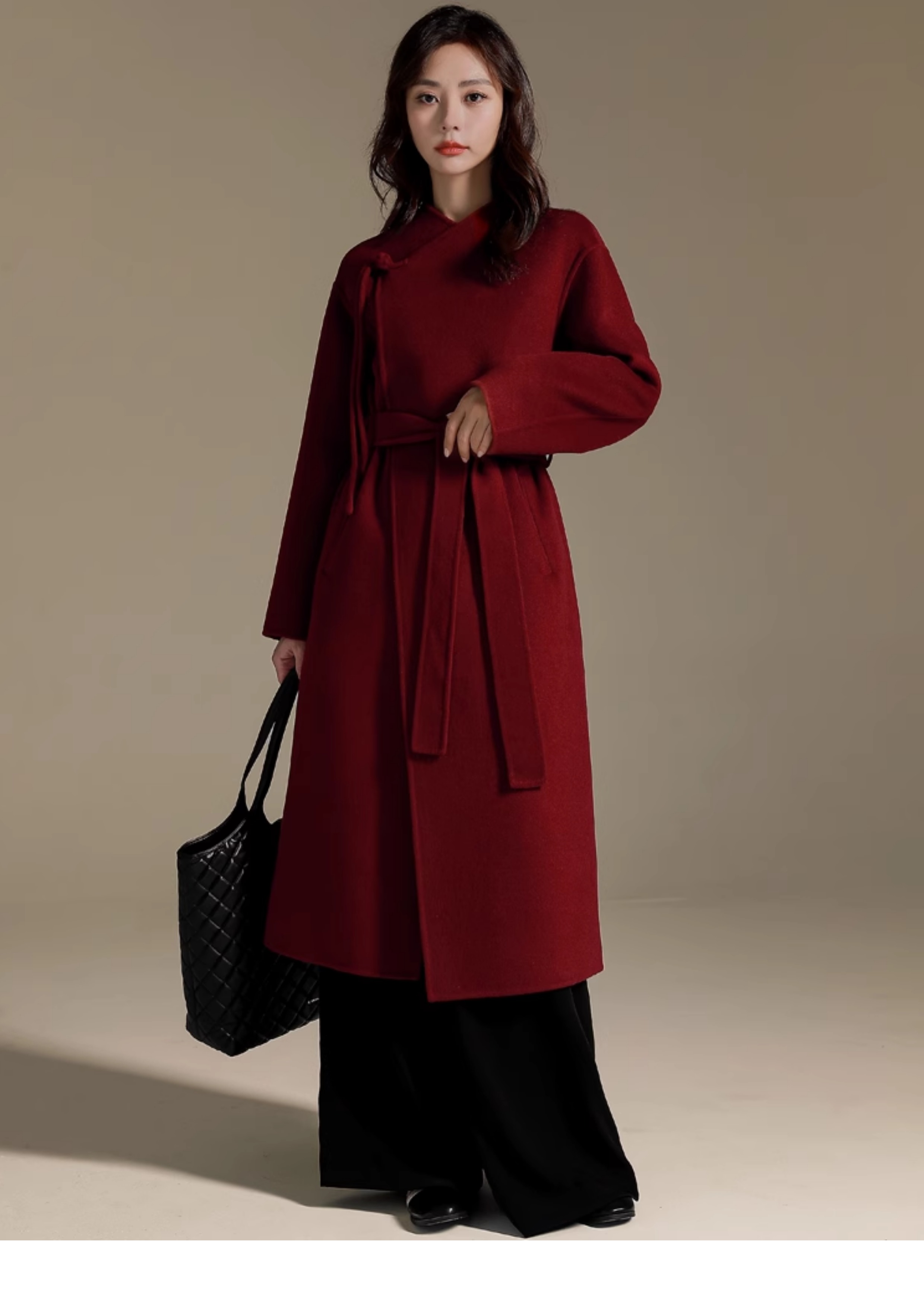 New Chinese style Ancora red cashmere coat jacket 2024 autumn and winter new style plate buckle double-sided woolen high-end coat for women