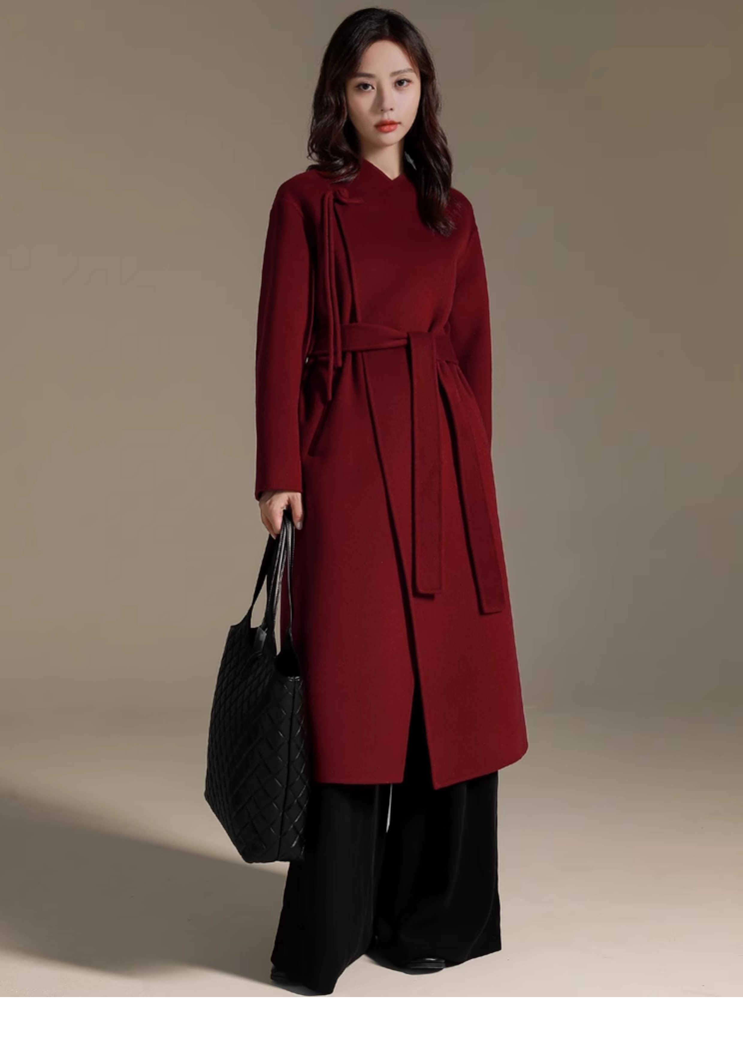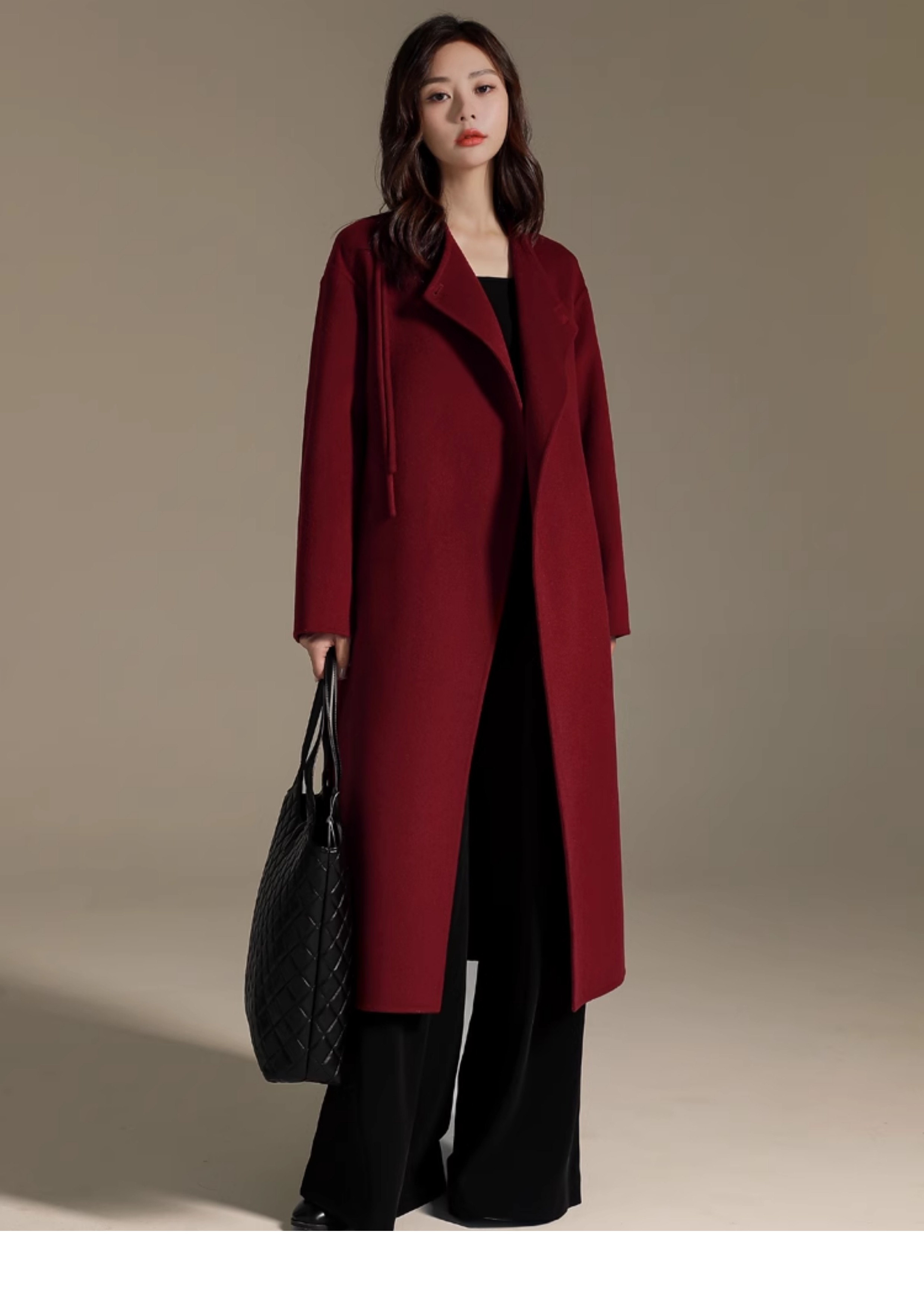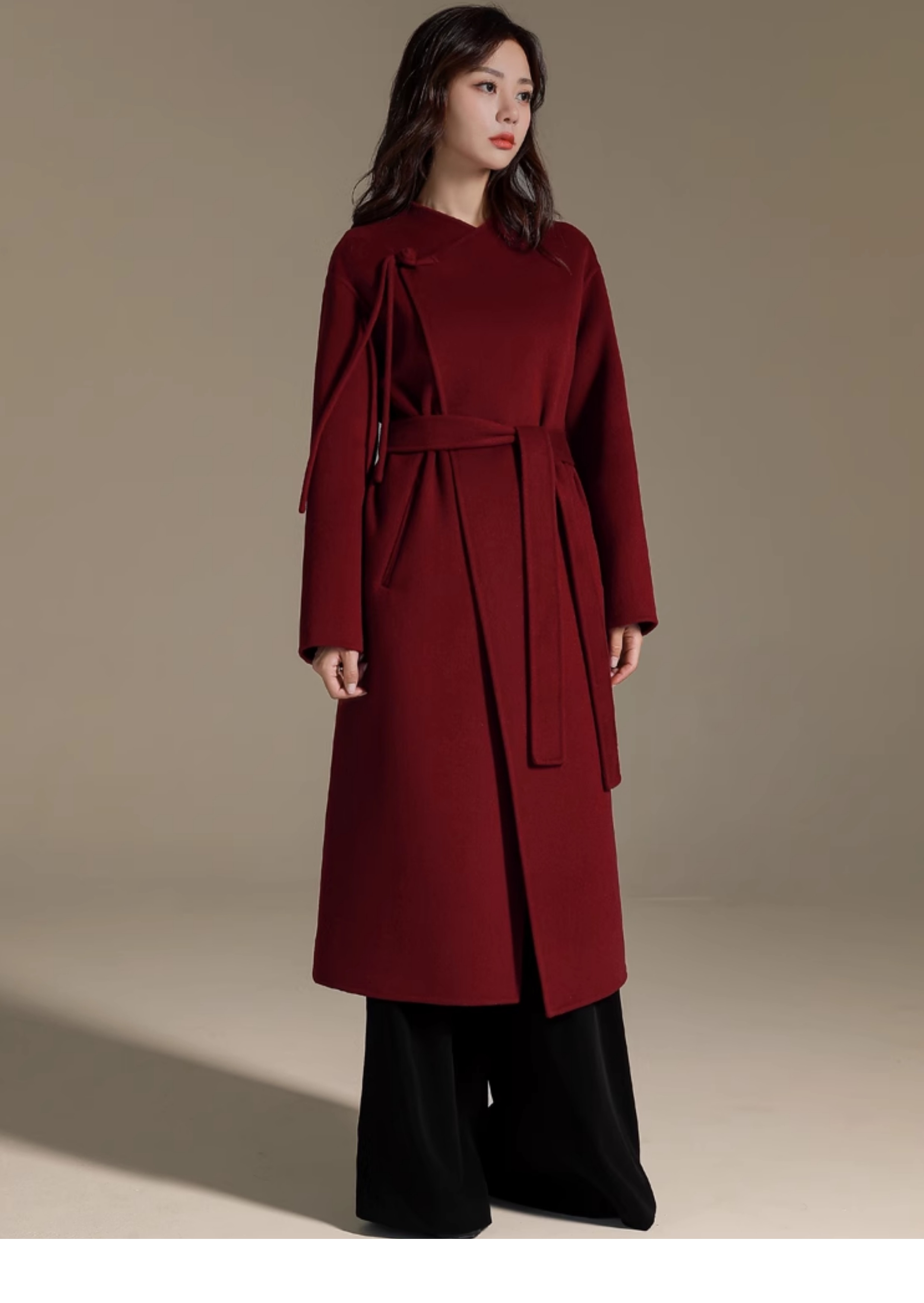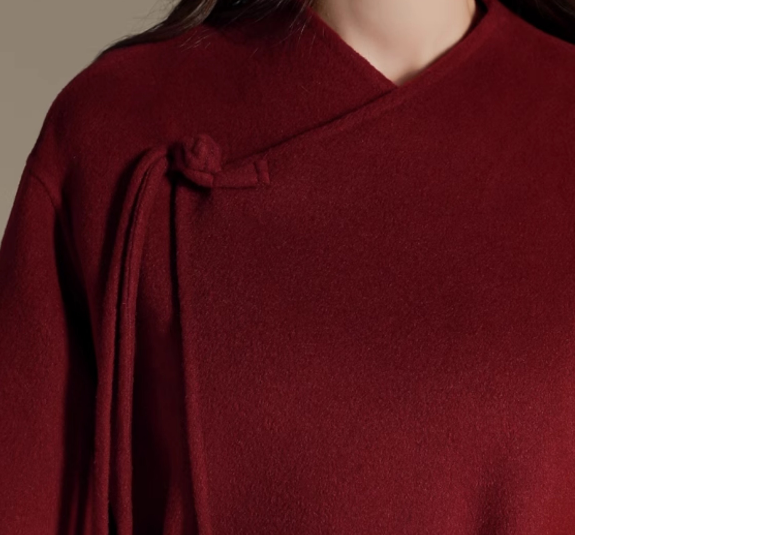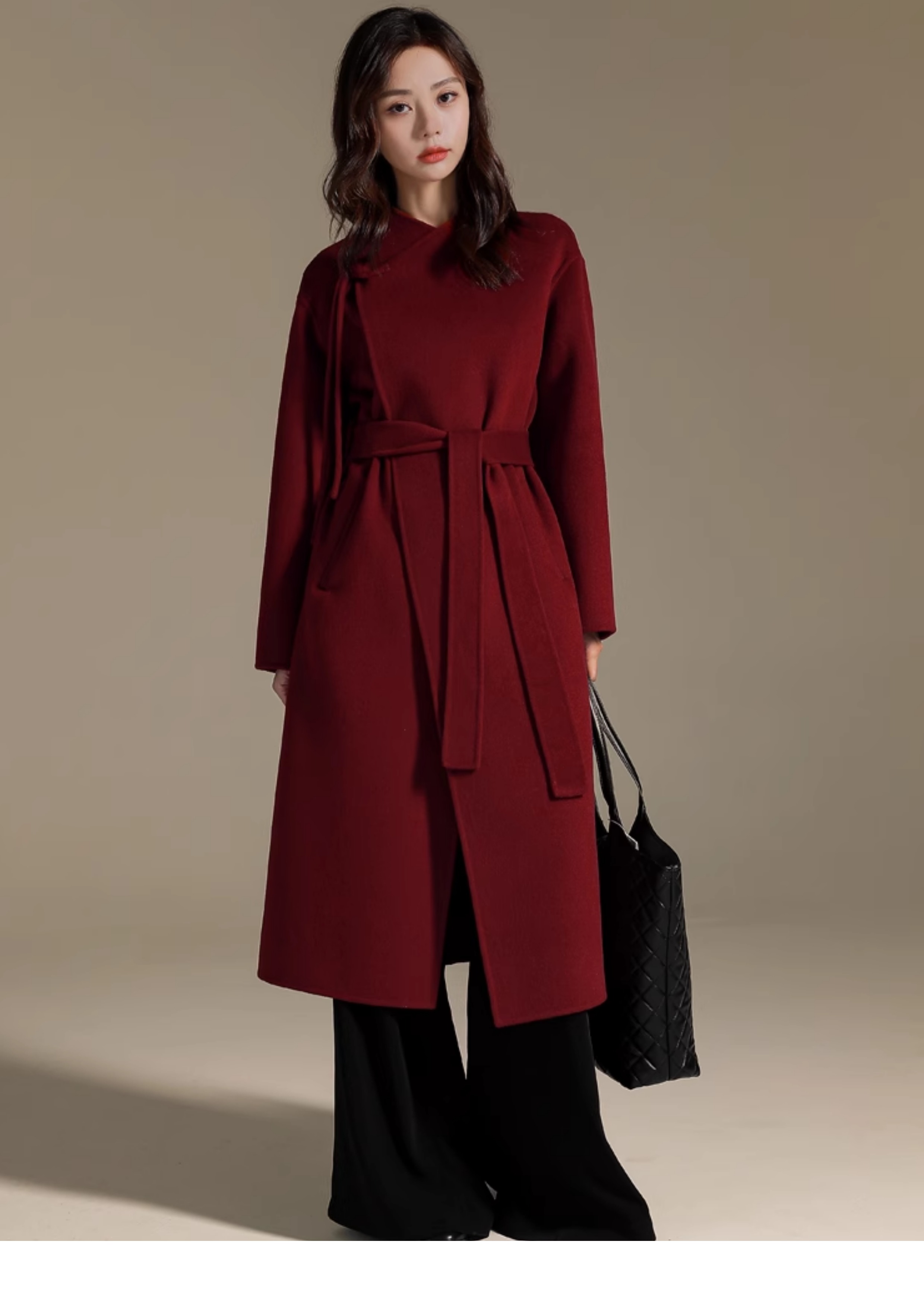 New Chinese style Ancora red cashmere coat jacket 2024 autumn and winter new style plate buckle double-sided woolen high-end coat for women