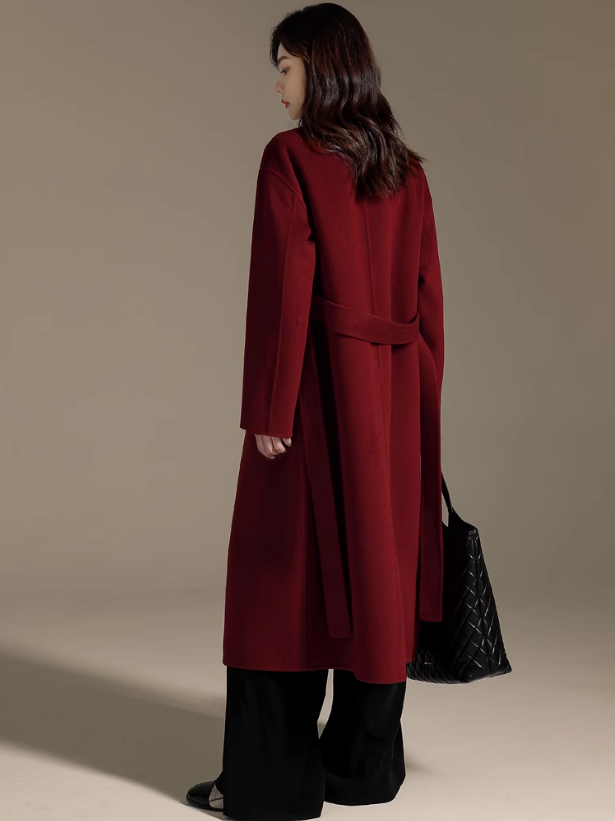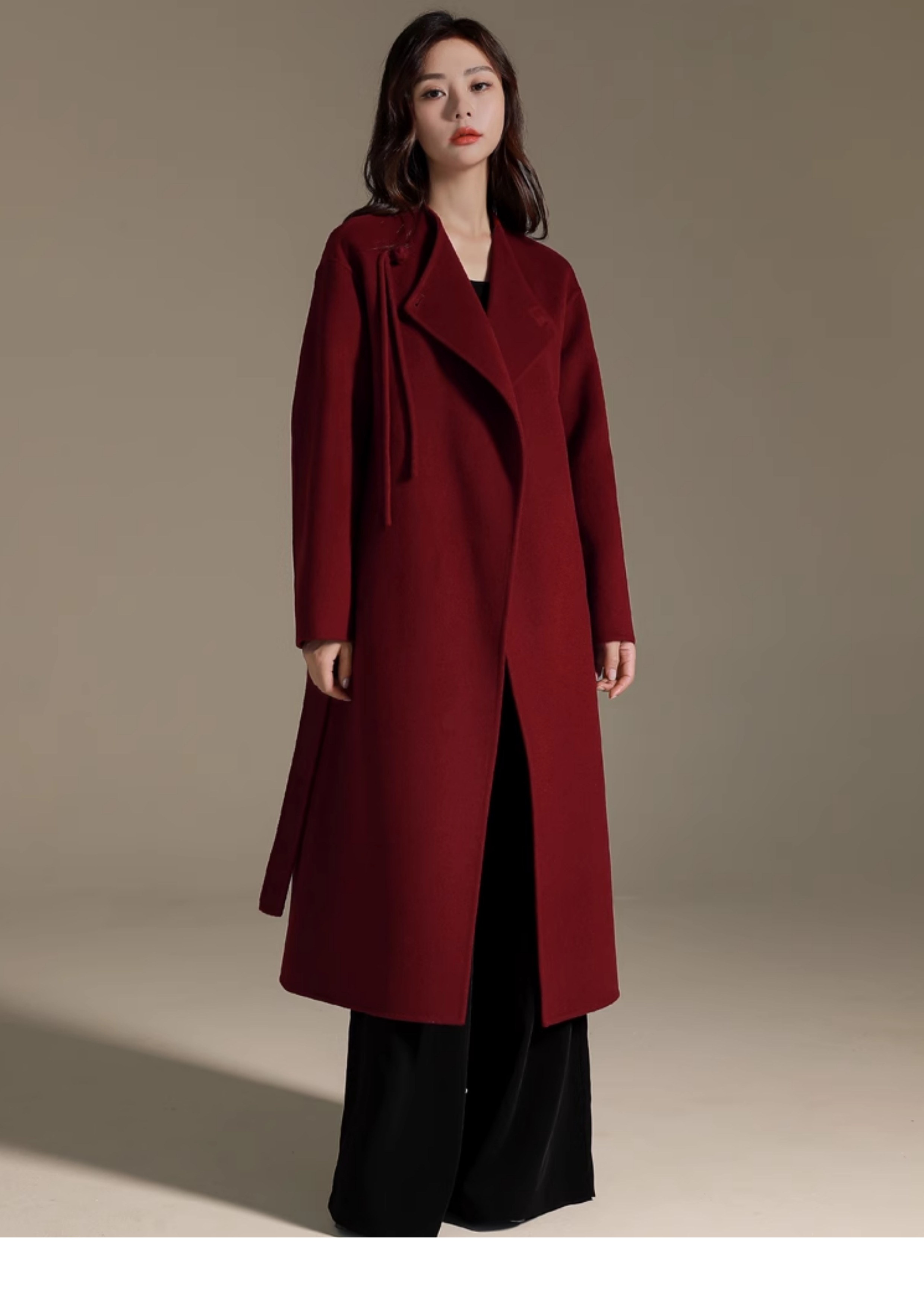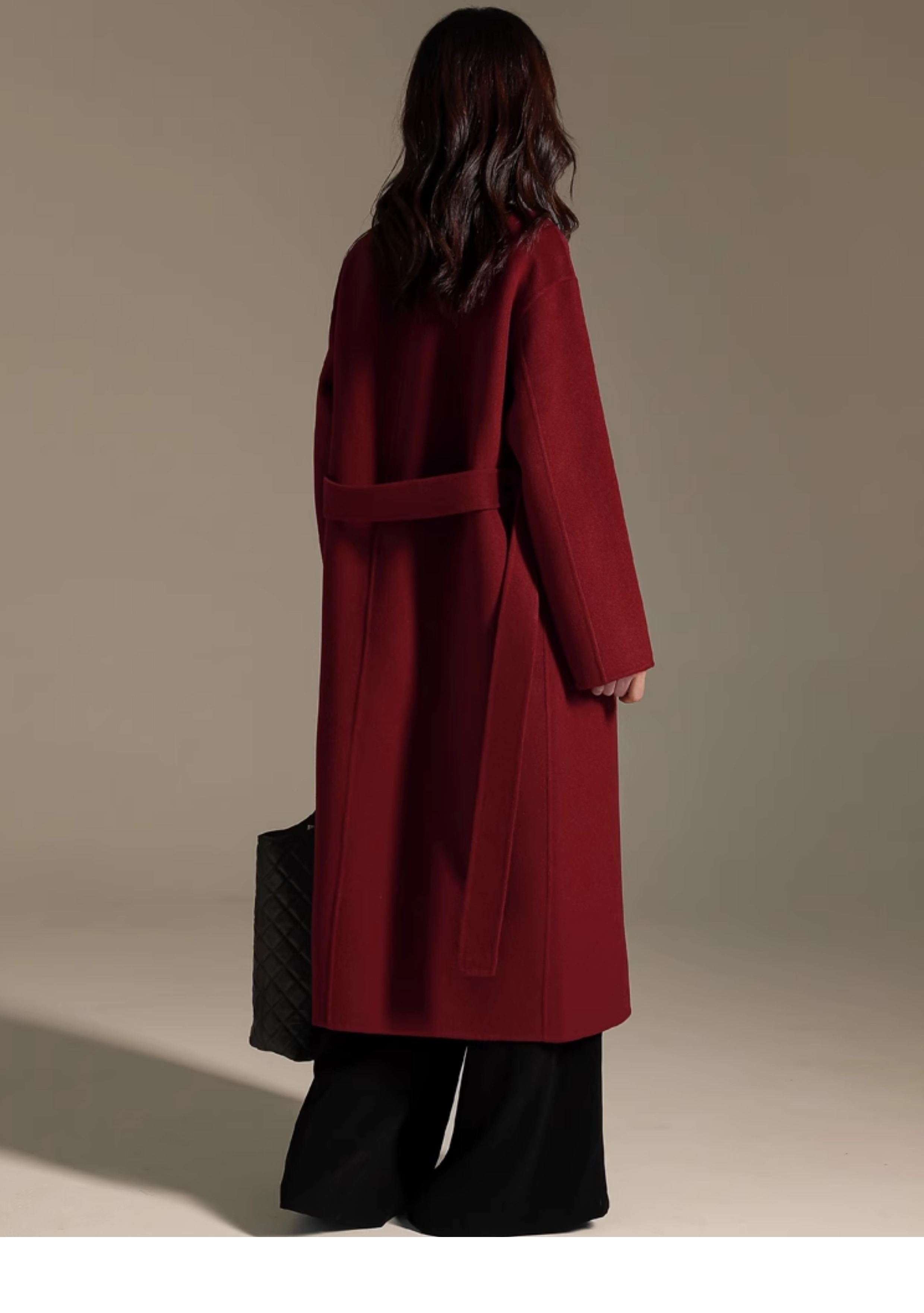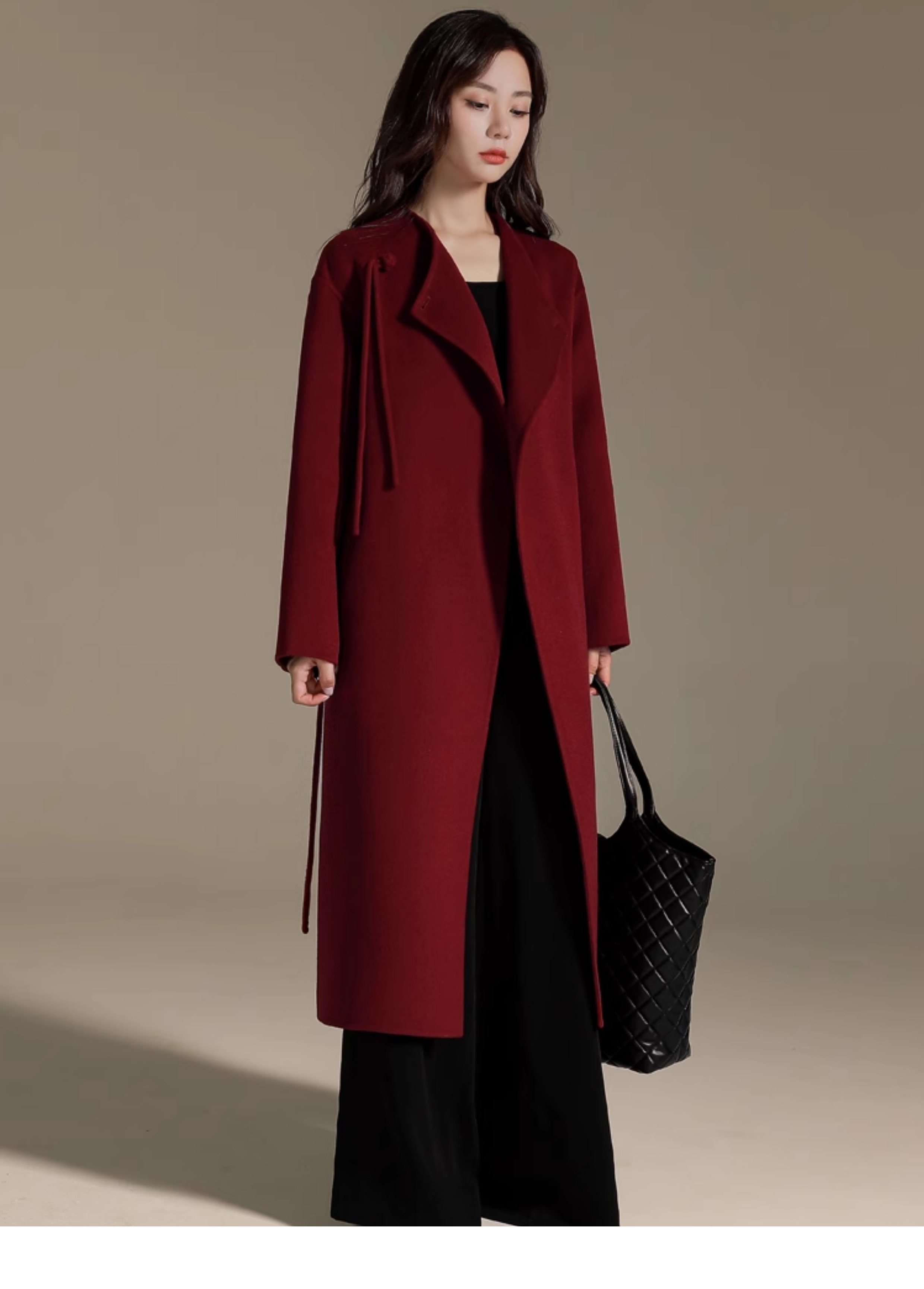 New Chinese style Ancora red cashmere coat jacket 2024 autumn and winter new style plate buckle double-sided woolen high-end coat for women