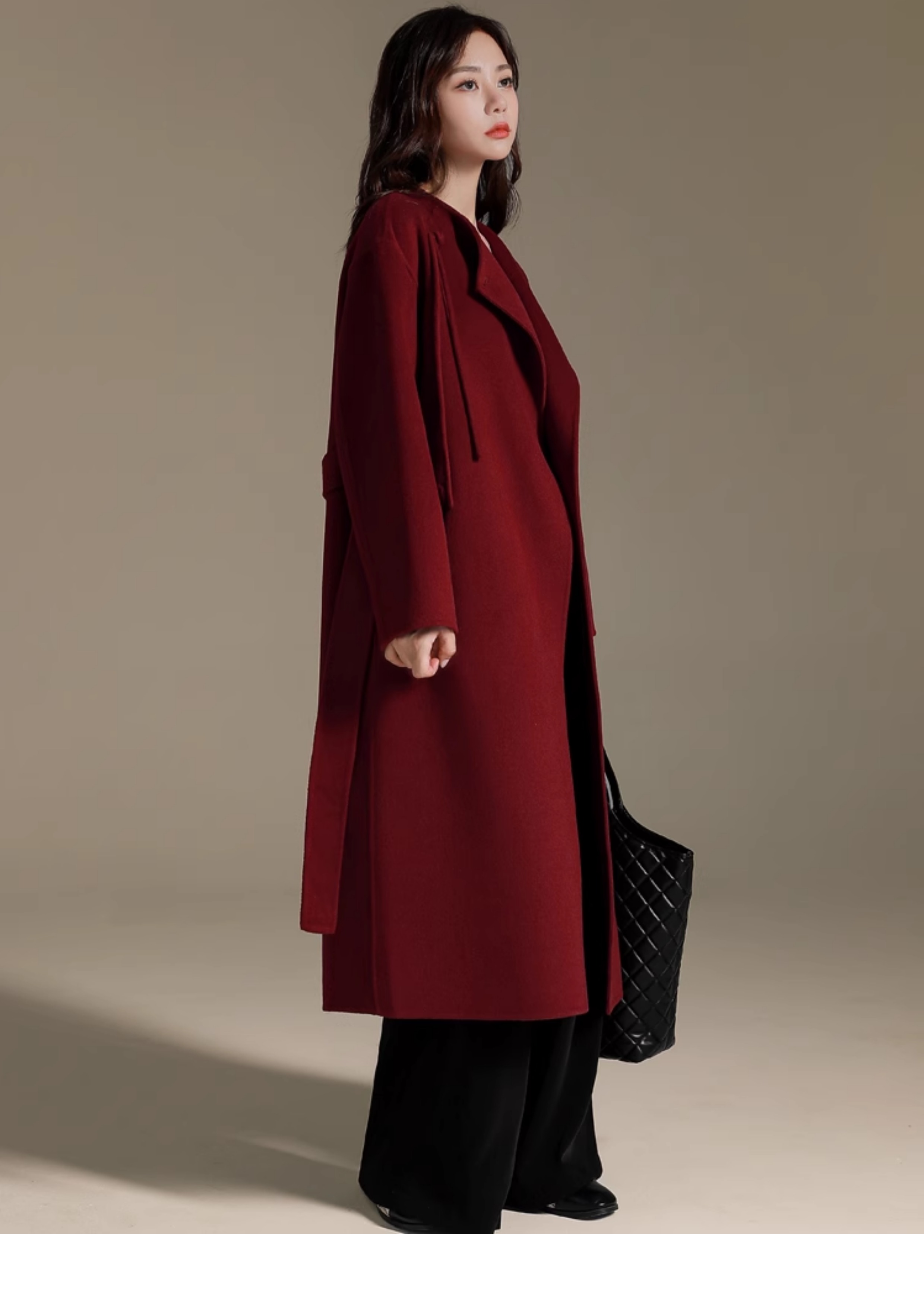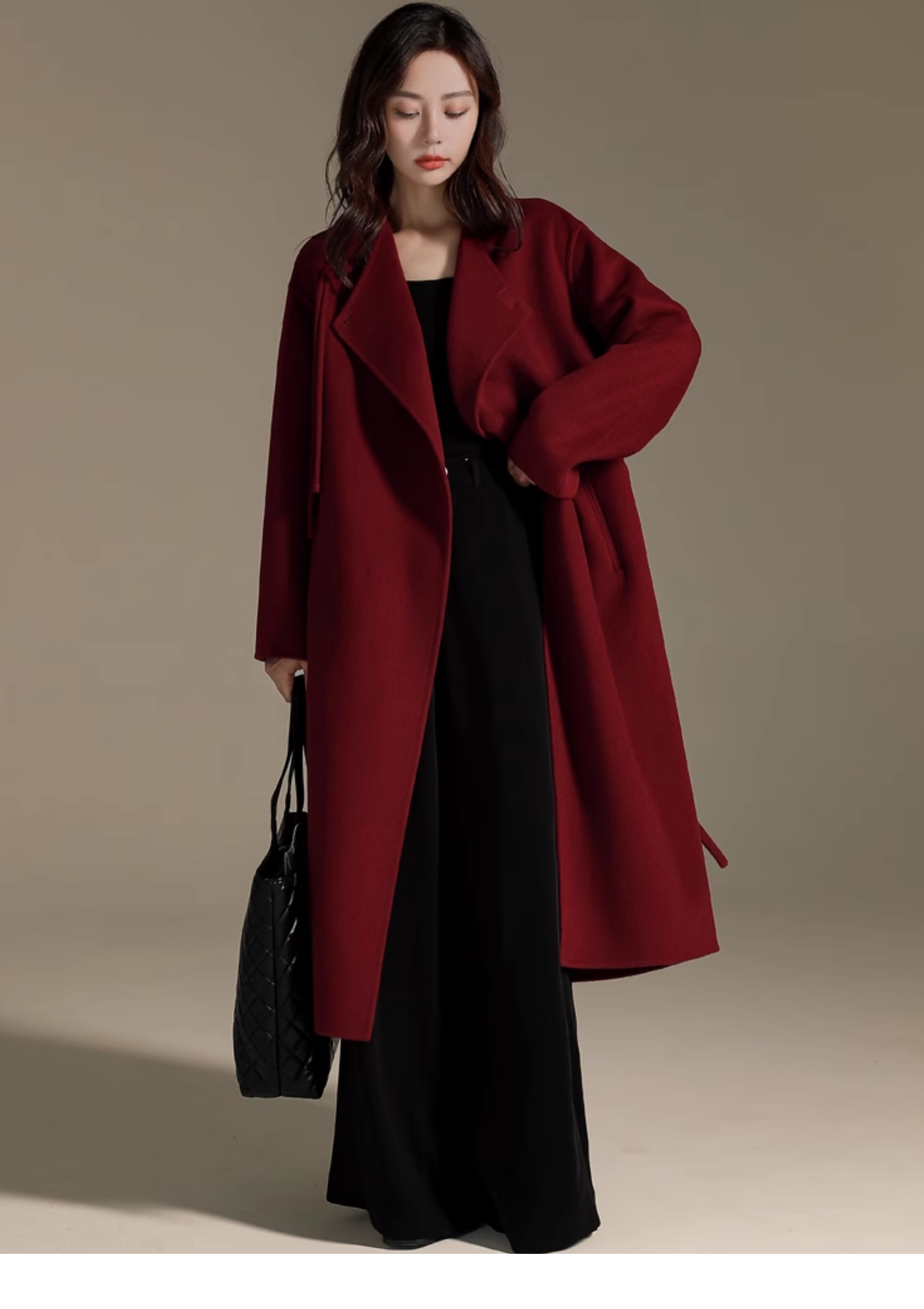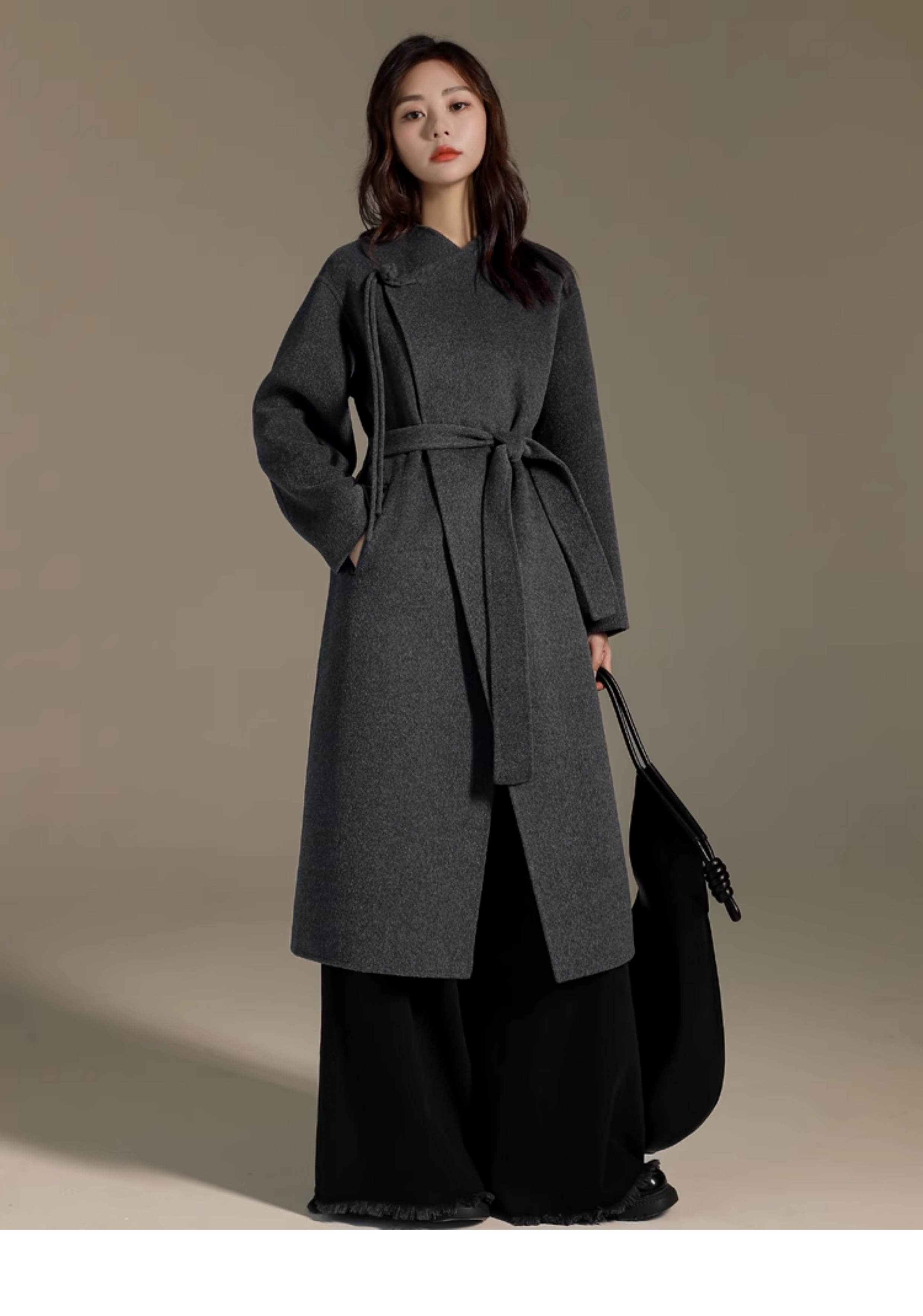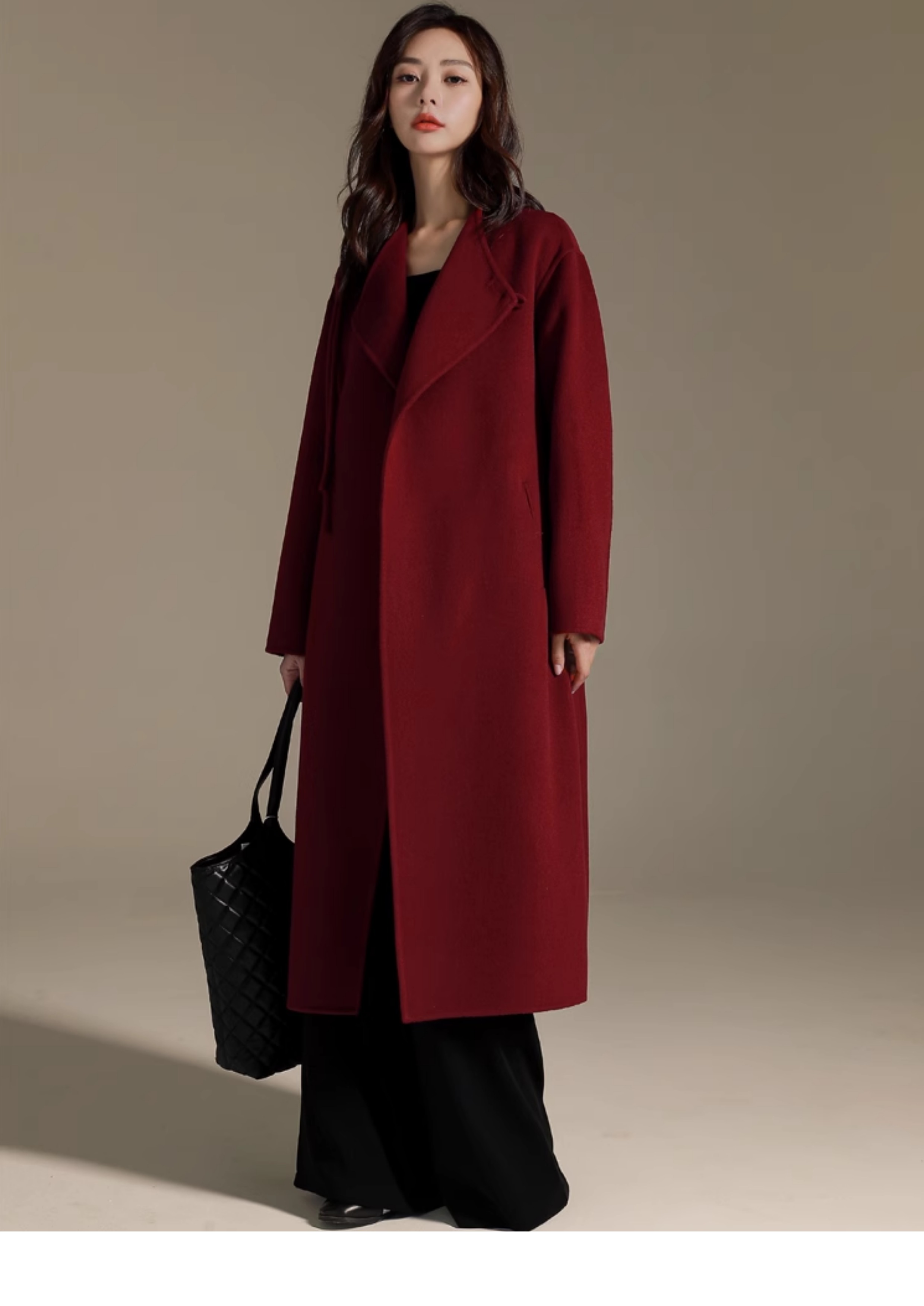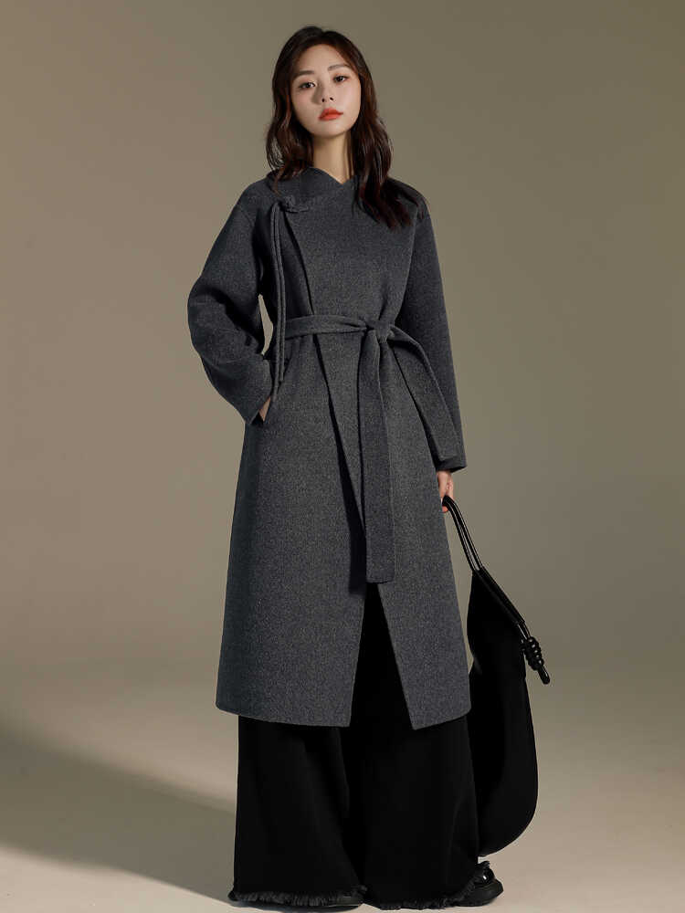 New Chinese style Ancora red cashmere coat jacket 2024 autumn and winter new style plate buckle double-sided woolen high-end coat for women
