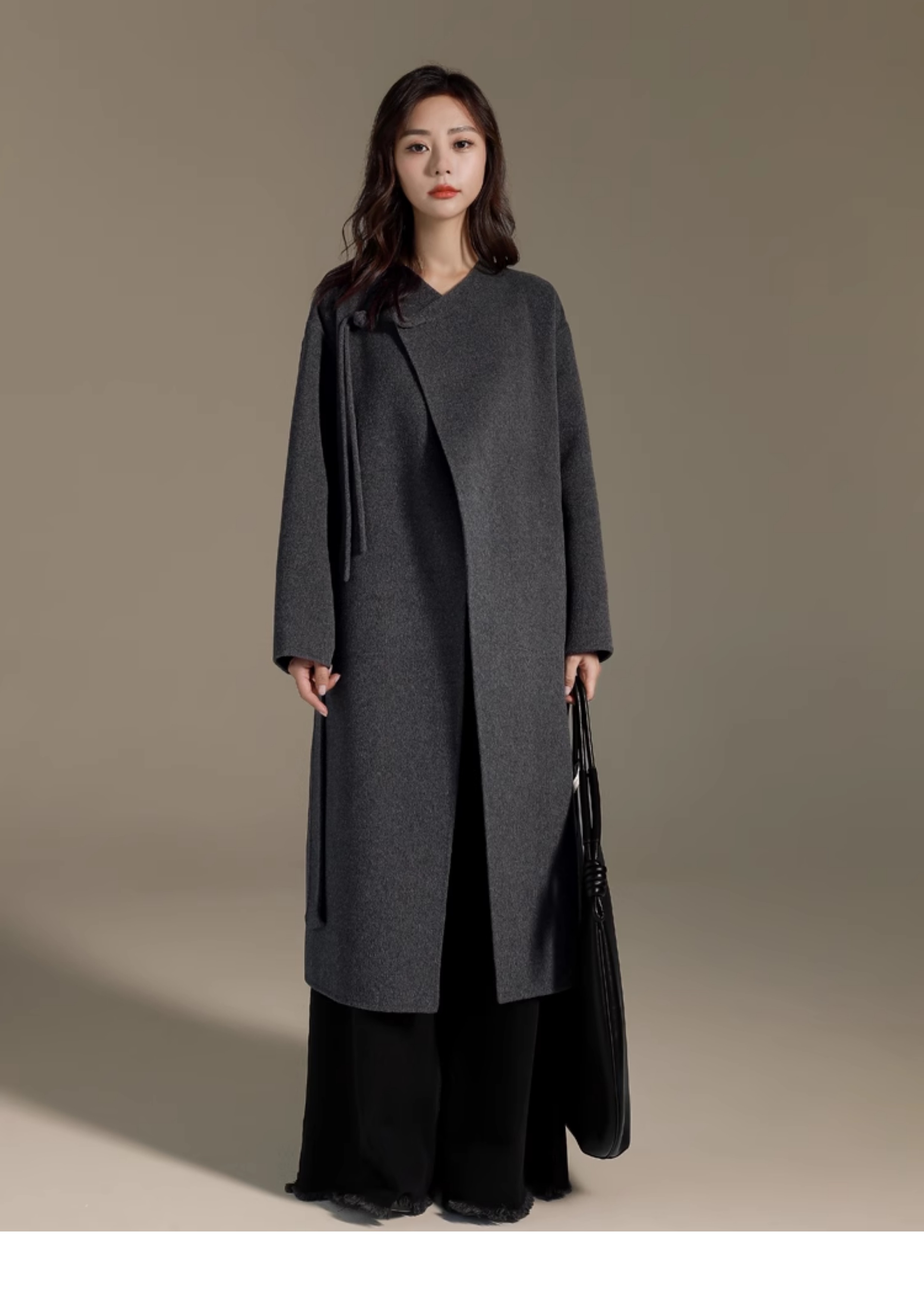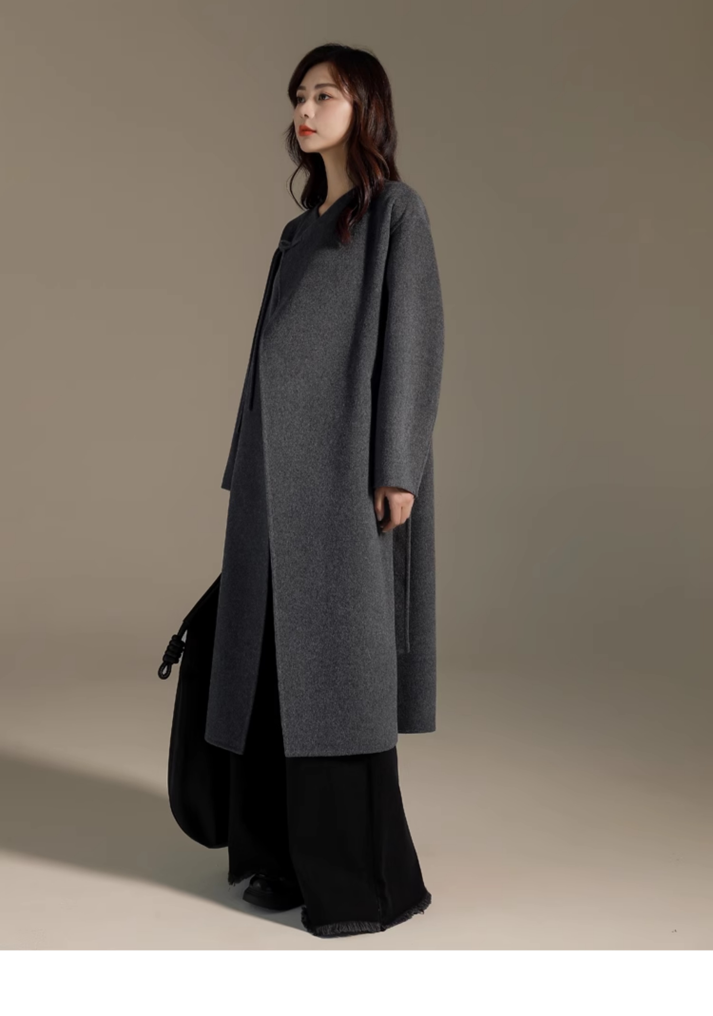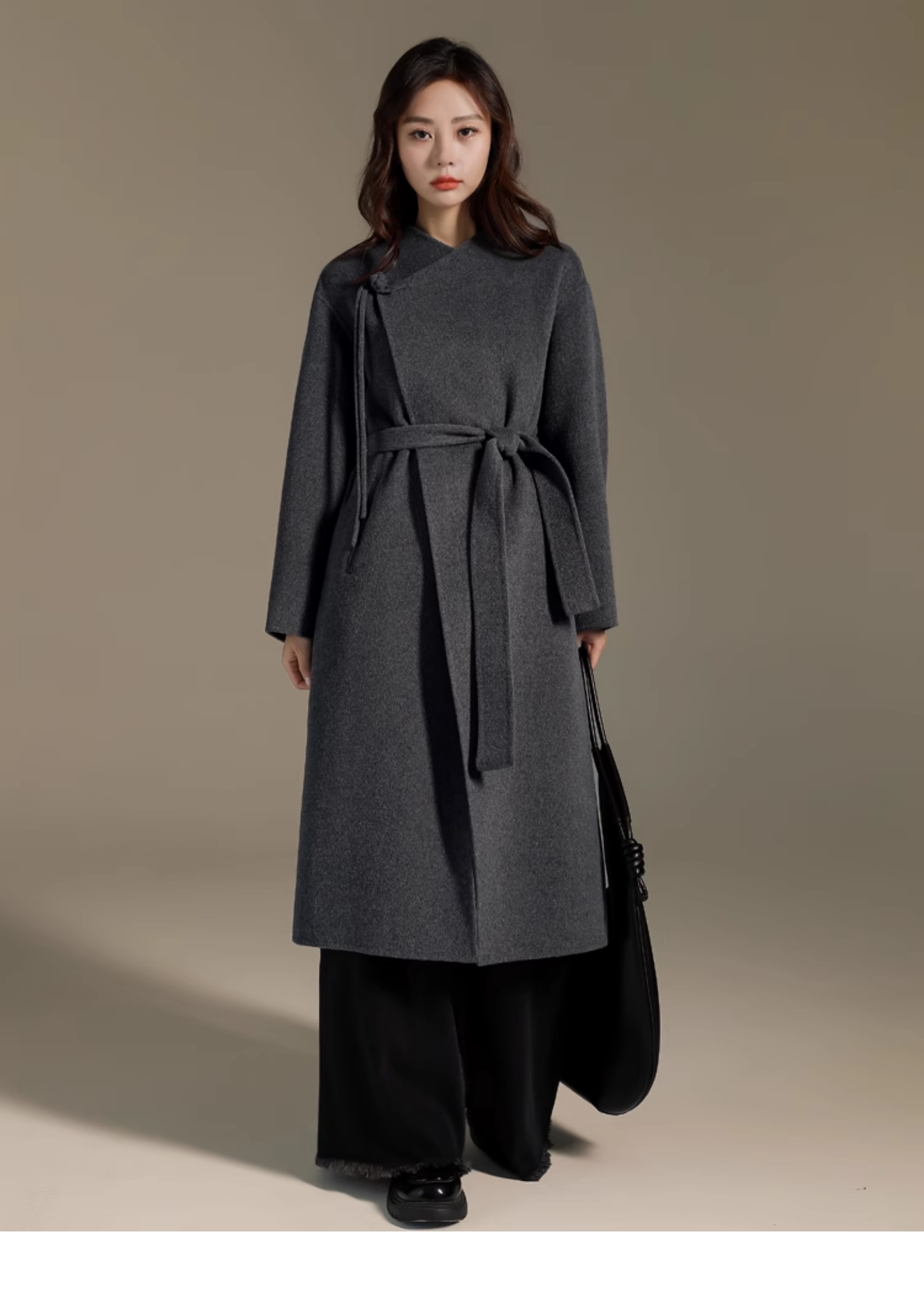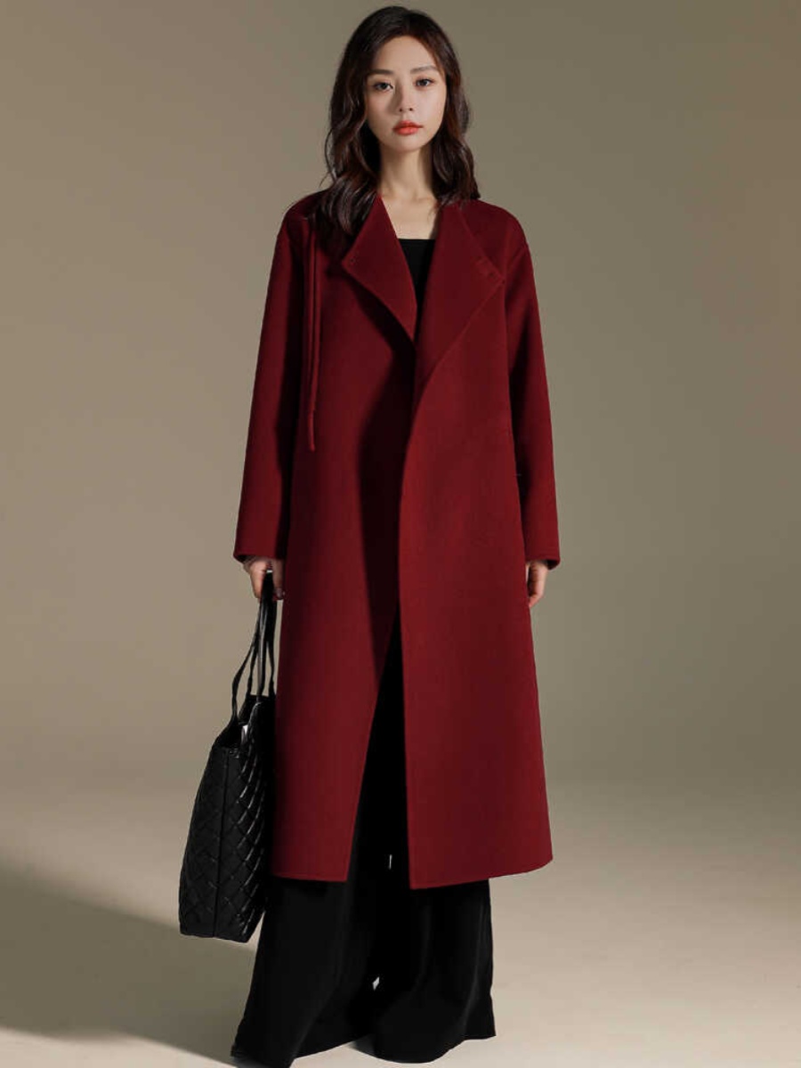New Chinese style Ancora red cashmere coat jacket 2024 autumn and winter new style plate buckle double-sided woolen high-end coat for women