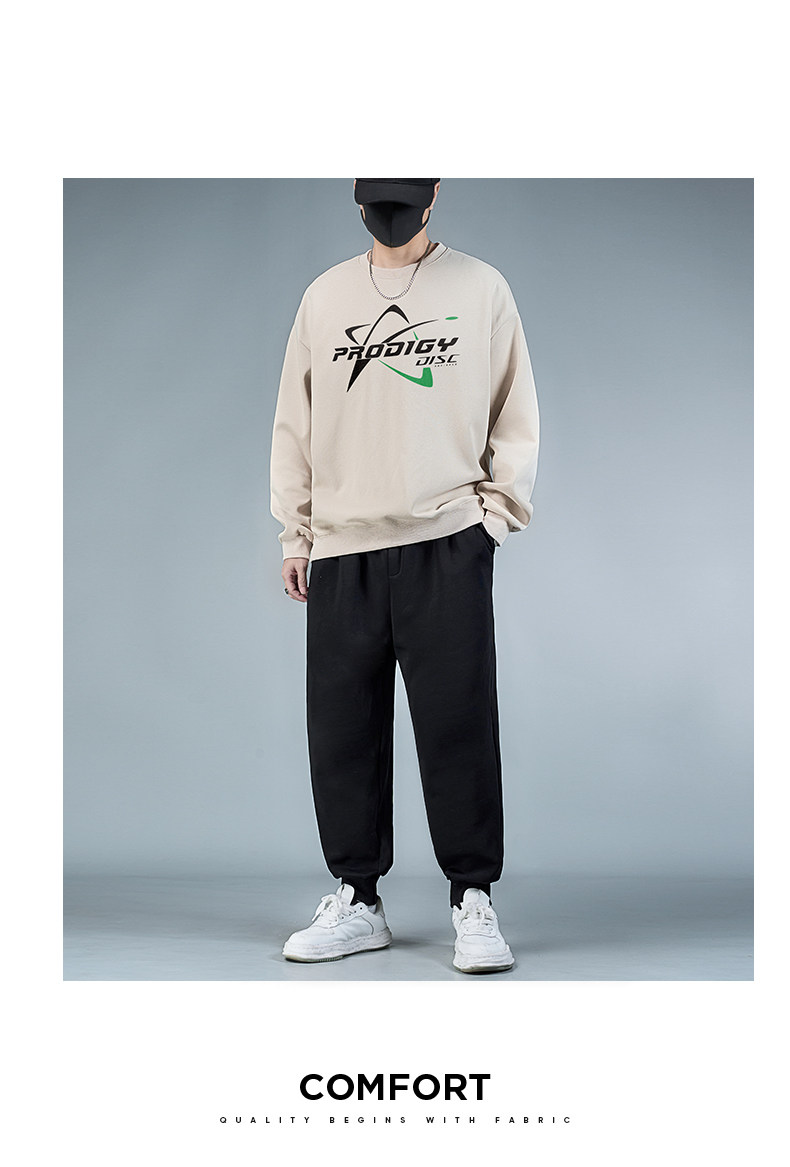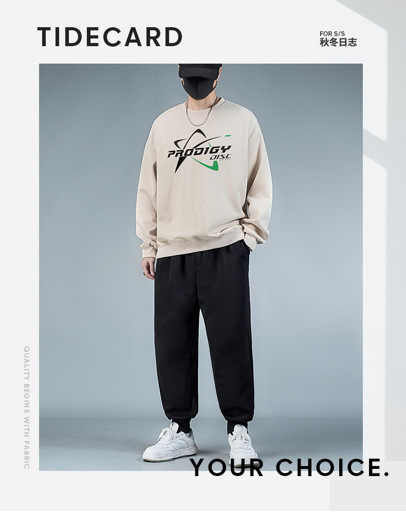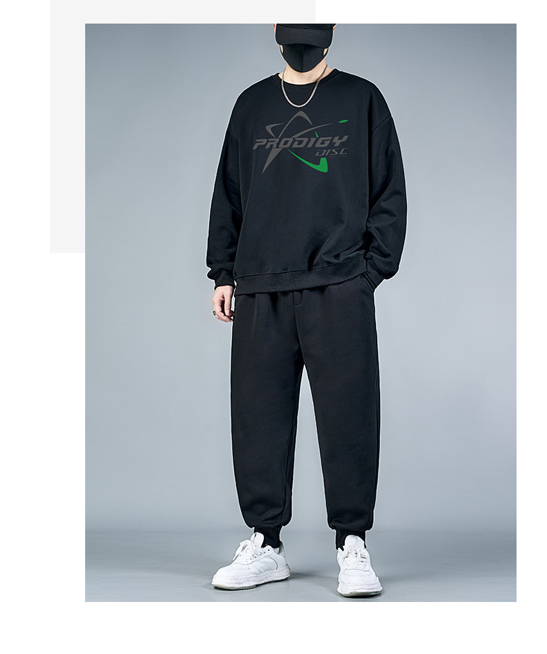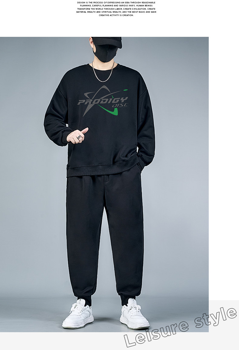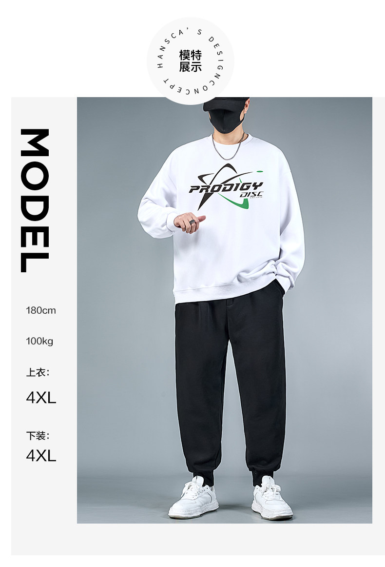 加绒加厚运动套装男款冬季肥佬休闲卫衣男生大码黑色束脚裤两件套