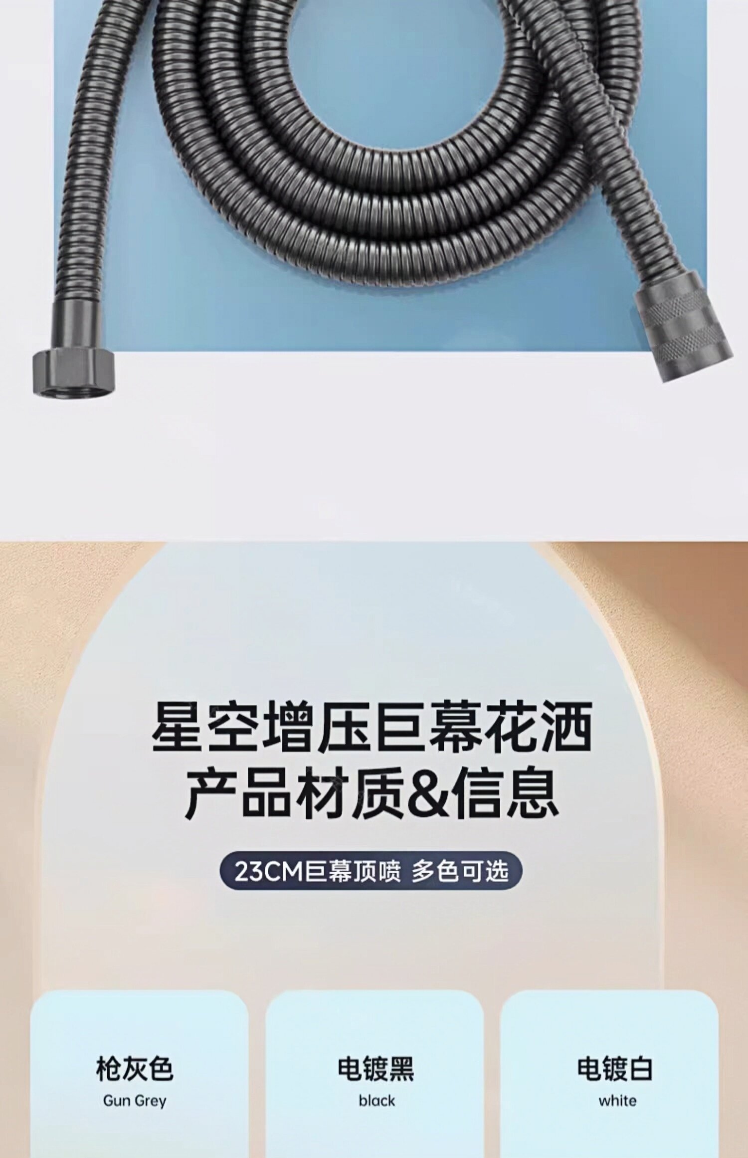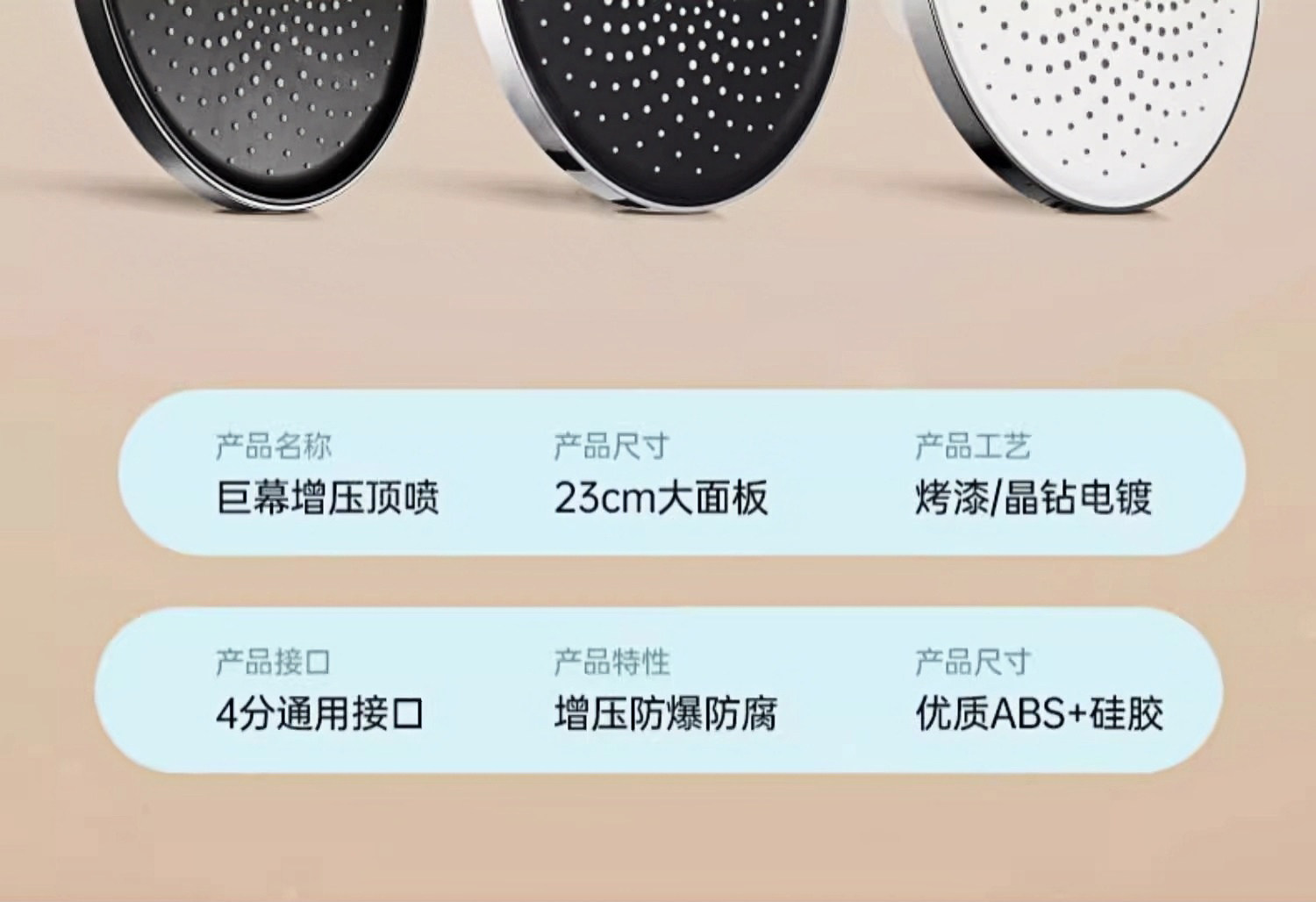 颜色分类 【圆形枪灰色】9英寸增压大出水顶喷●30年质保,【圆形亮银色】9英寸增压大出水顶喷●30年质保,【圆形雅黑色】9英寸增压大出水顶喷●30年质保,【圆形银黑色】9英寸增压大出水顶喷●30年质保,【方形枪灰色】13英寸增压大出水顶喷●30年质保,【方形亮银色】13英寸增压大出水顶喷●30年质保,【方形雅黑色】13英寸增压大出水顶喷●30年质保,【方形银黑色】13英寸增压大出水顶喷●30年质保,【圆形枪灰色套装1】9英寸顶喷+3档手持花洒,【圆形枪灰色套装2】9英寸顶喷+3档手持花洒+1.5米软管,【圆形亮银色套装1】9英寸顶喷+3档手持花洒,【圆形亮银色套装2】9英寸顶喷+3档手持花洒+1.5米软管,【圆形雅黑色套装1】9英寸顶喷+3档手持花洒,【圆形雅黑色套装2】9英寸顶喷+3档手持花洒+1.5米软管,【圆形银黑色套装1】9英寸顶喷+3档手持花洒,【圆形银黑色套装2】9英寸顶喷+3档手持花洒+1.5米软管,【方形枪灰色套装1】13英寸顶喷+3档手持花洒,【方形枪灰色套装2】13英寸顶喷+3档手持花洒+1.5米软管,【方形亮银色套装1】13英寸顶喷+3档手持花洒,【方形亮银色套装2】13英寸顶喷+3档手持花洒+1.5米软管,【方形雅黑色套装1】13英寸顶喷+3档手持花洒,【方形雅黑色套装2】13英寸顶喷+3档手持花洒+1.5米软管,【方形银黑色套装1】13英寸顶喷+3档手持花洒,【方形银黑色套装2】13英寸顶喷+3档手持花洒+1.5米软管