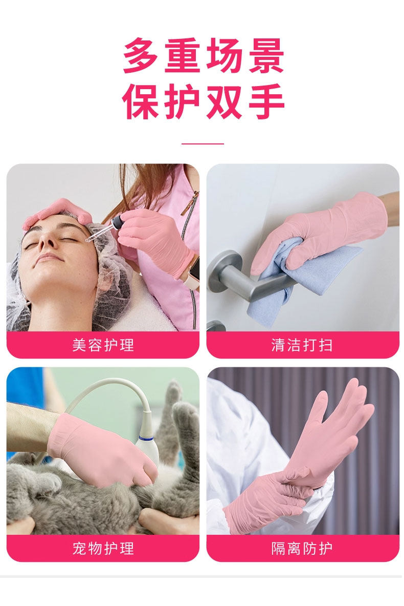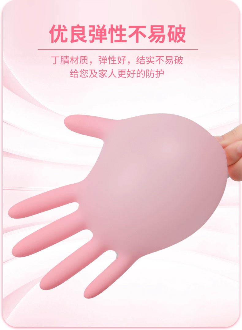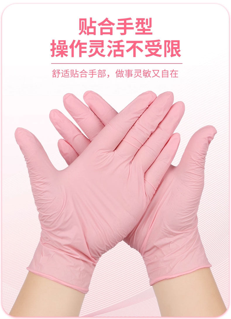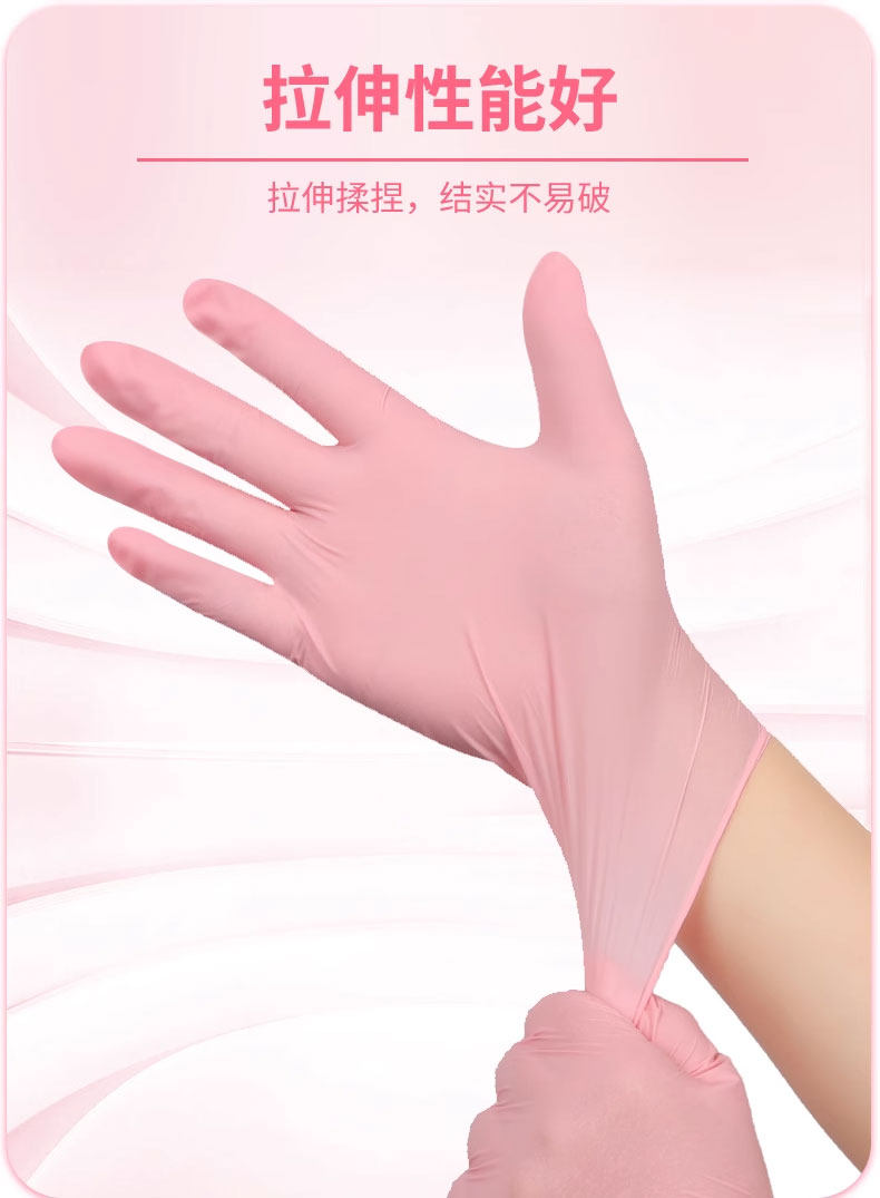 英科一次性手套粉色丁腈乳胶餐橡胶饮厨房食品级医用加厚耐用防油