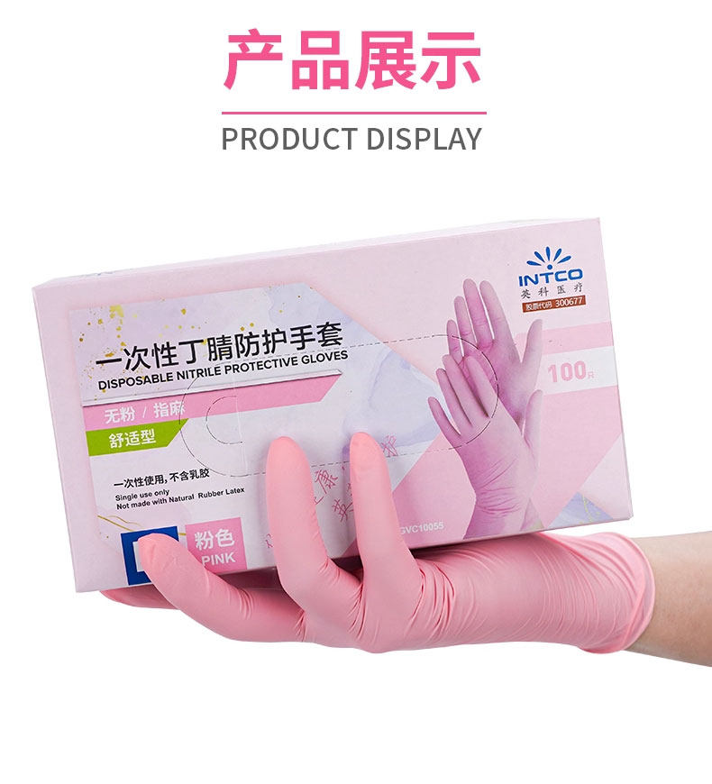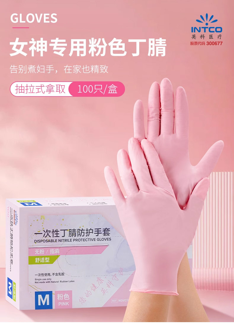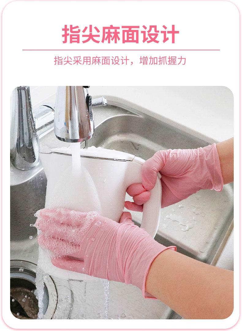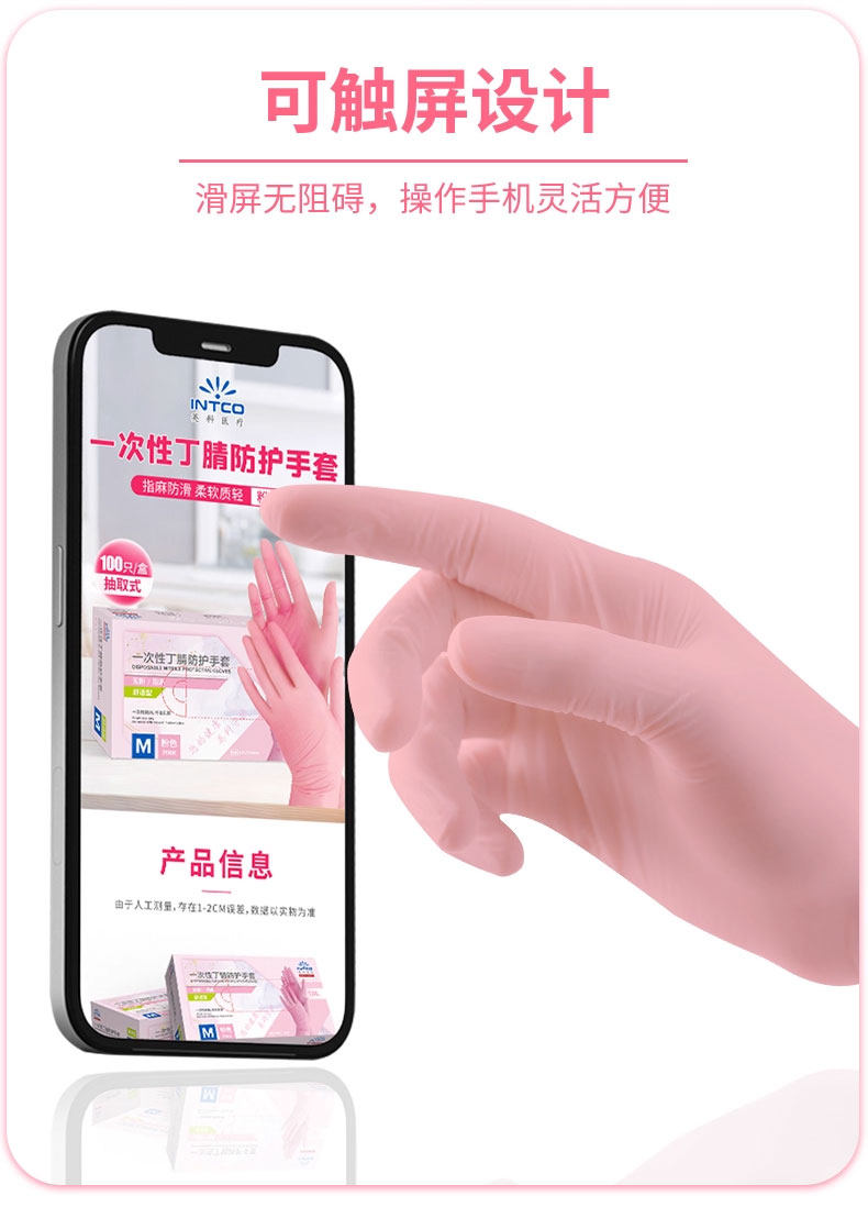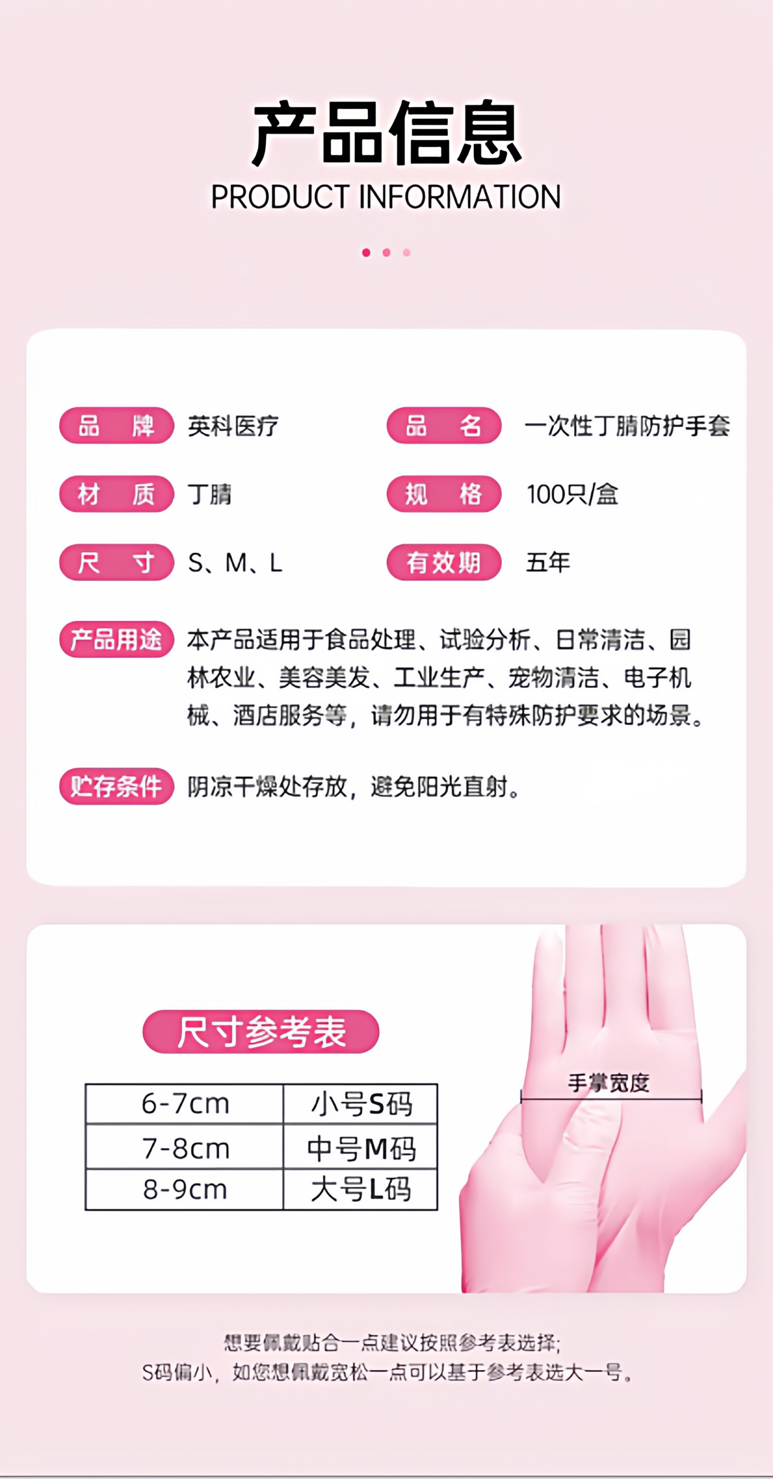 英科一次性手套粉色丁腈乳胶餐橡胶饮厨房食品级医用加厚耐用防油