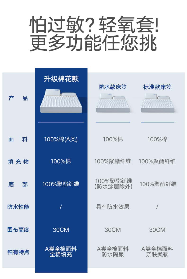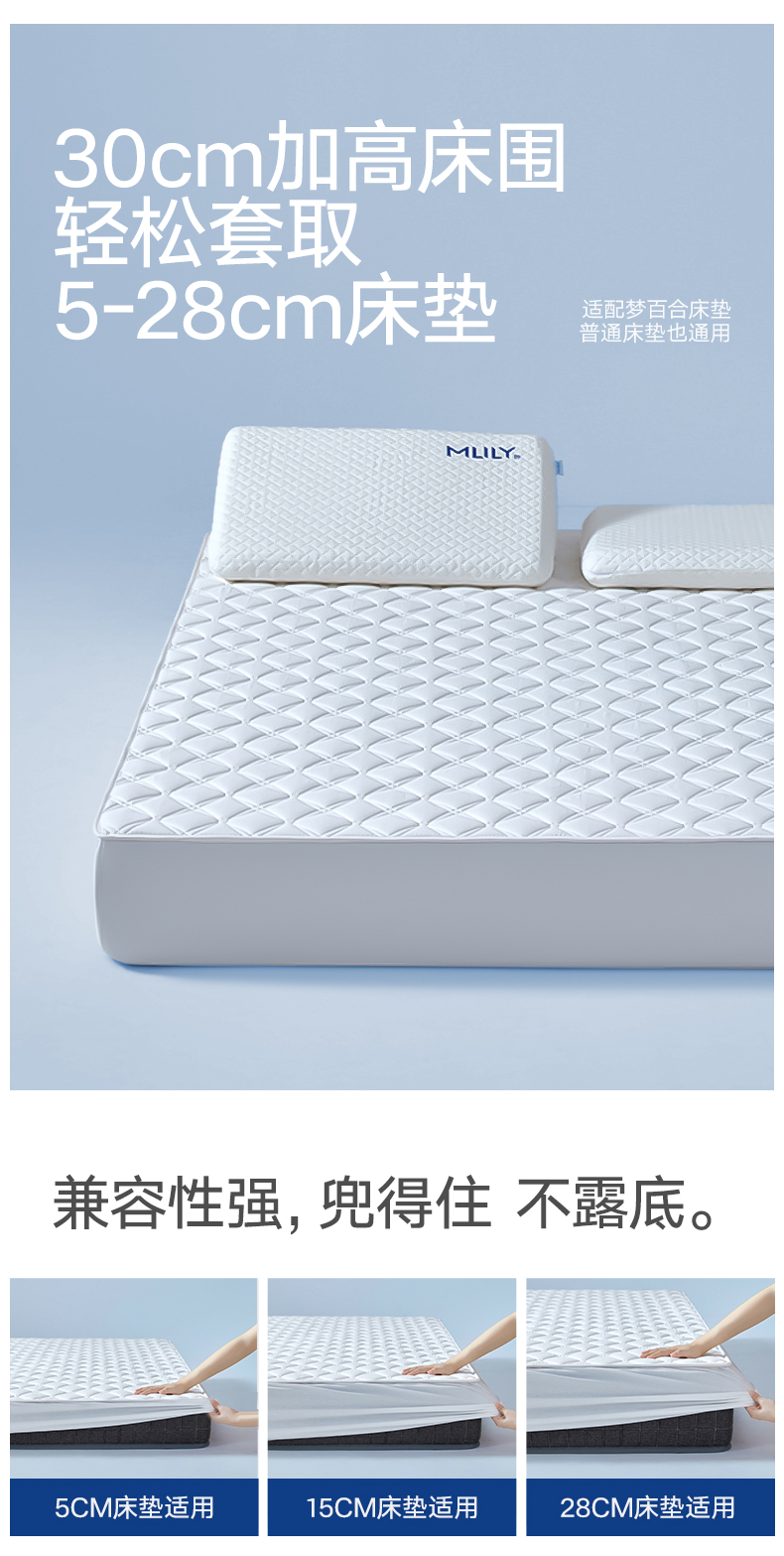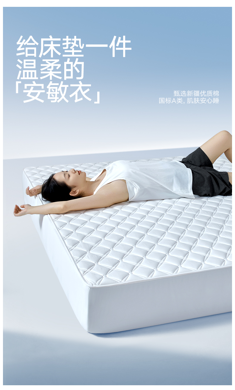 梦百合A类纯棉床笠罩单件夹棉防水床罩抗菌床护垫防尘保护罩床笠