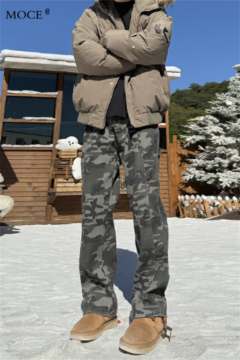American-Style Camouflage Work Pants for Men, Autumn and Winter Cleanfit Lumberjack Curved Knife Pants, Vibe High Street Fleece-Lined Jeans