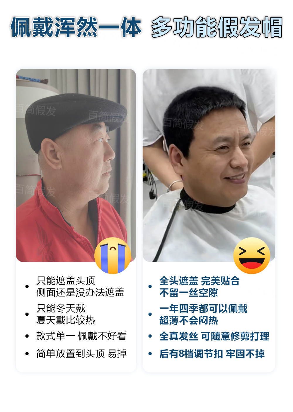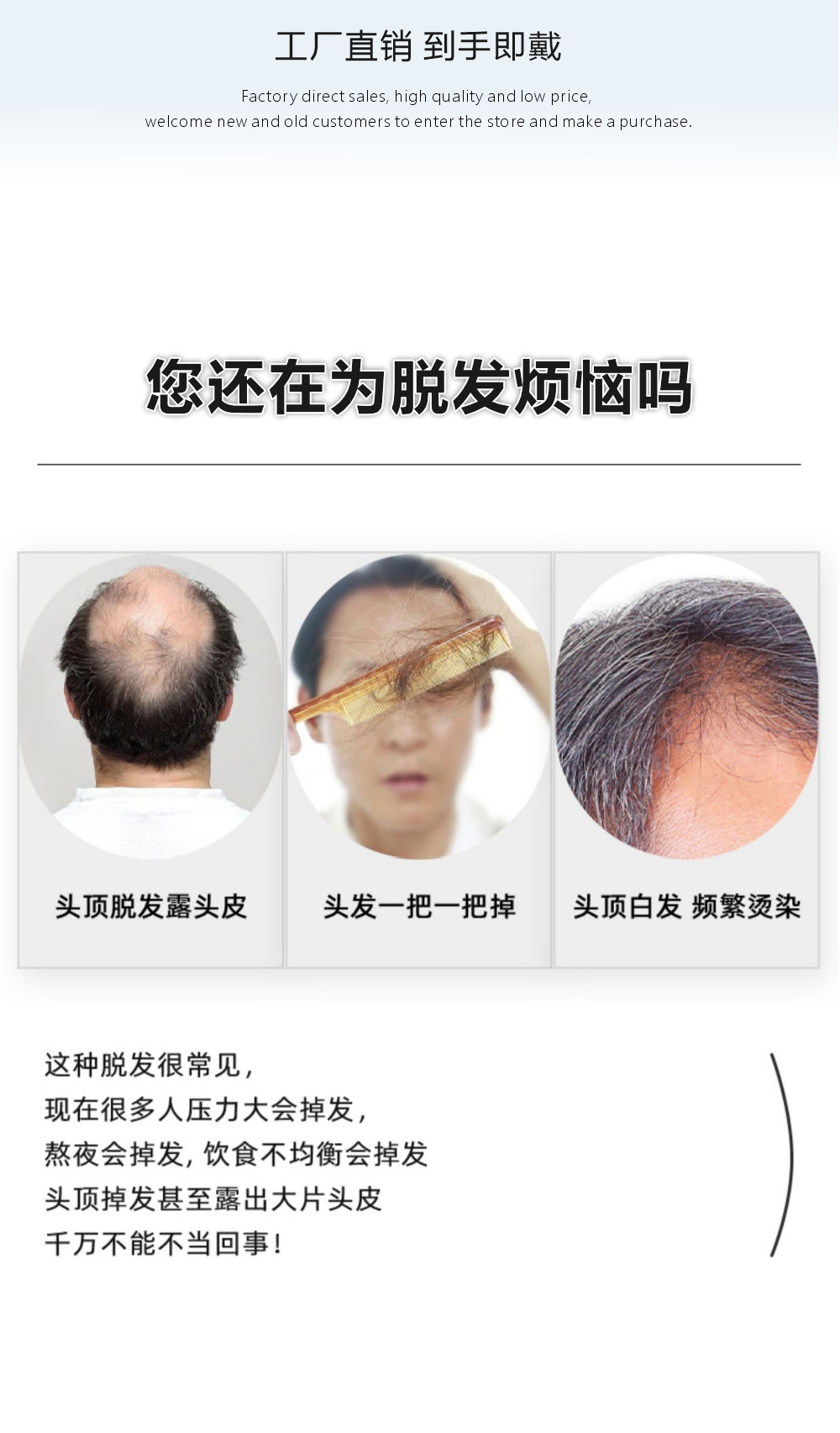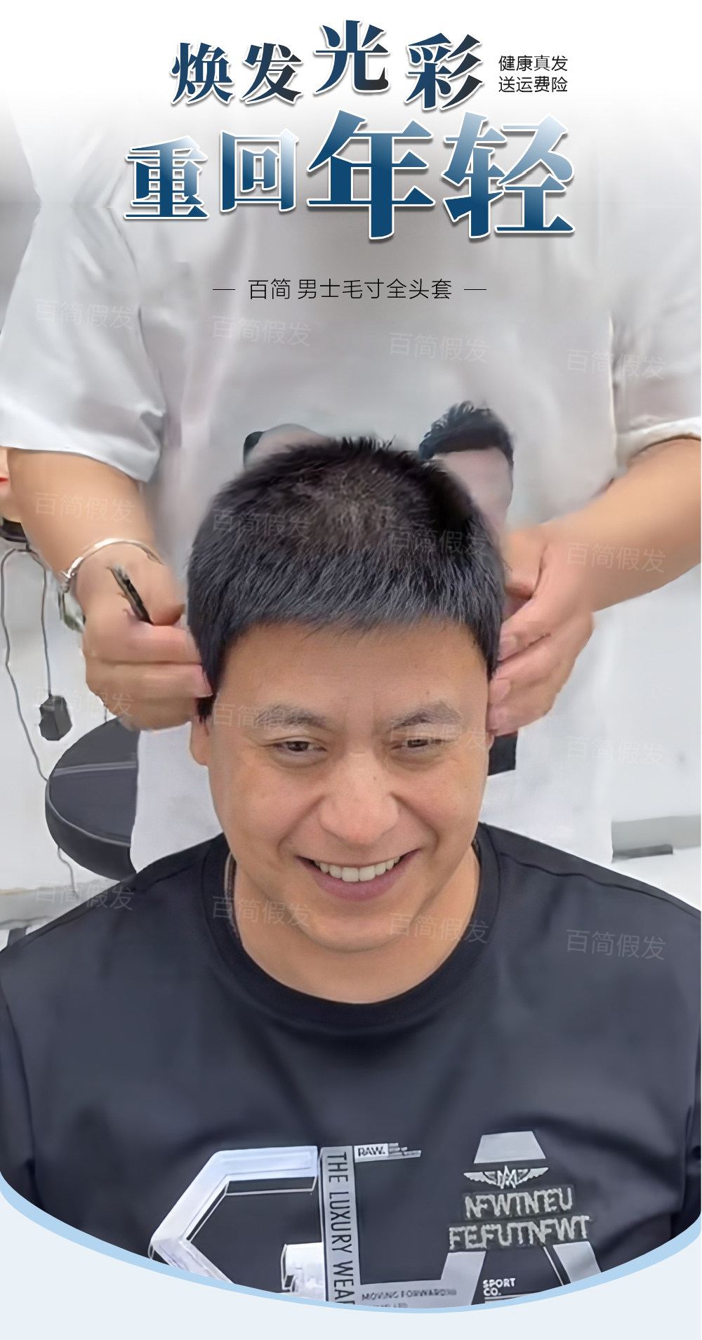 Men's full head wig for middle-aged and elderly people with short hair, covering white and shining hair, full human hair, natural and breathable men's wig