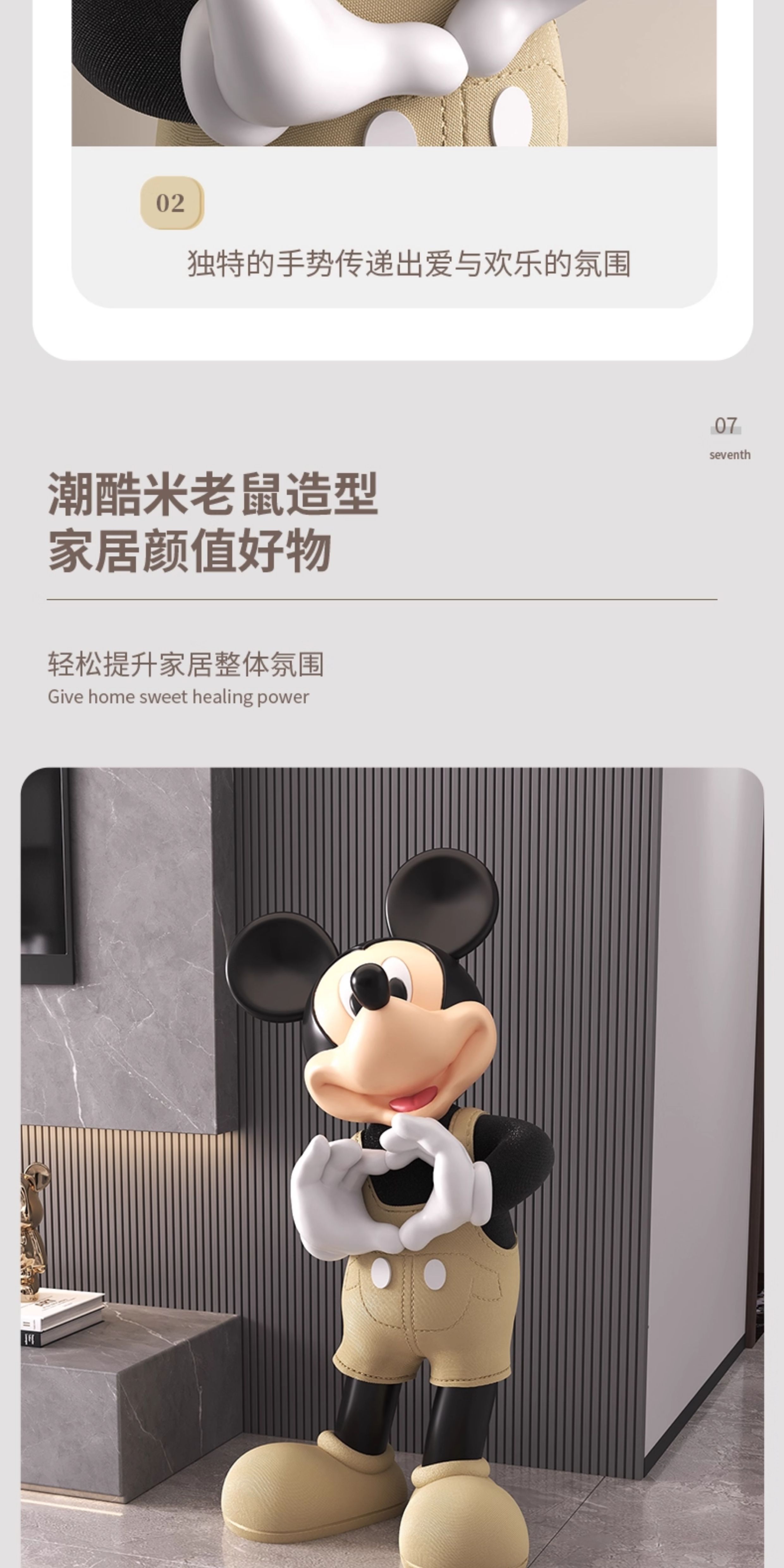 轻奢潮玩米奇大型落地摆件入户玄关客厅电视柜旁家居装饰乔迁礼品