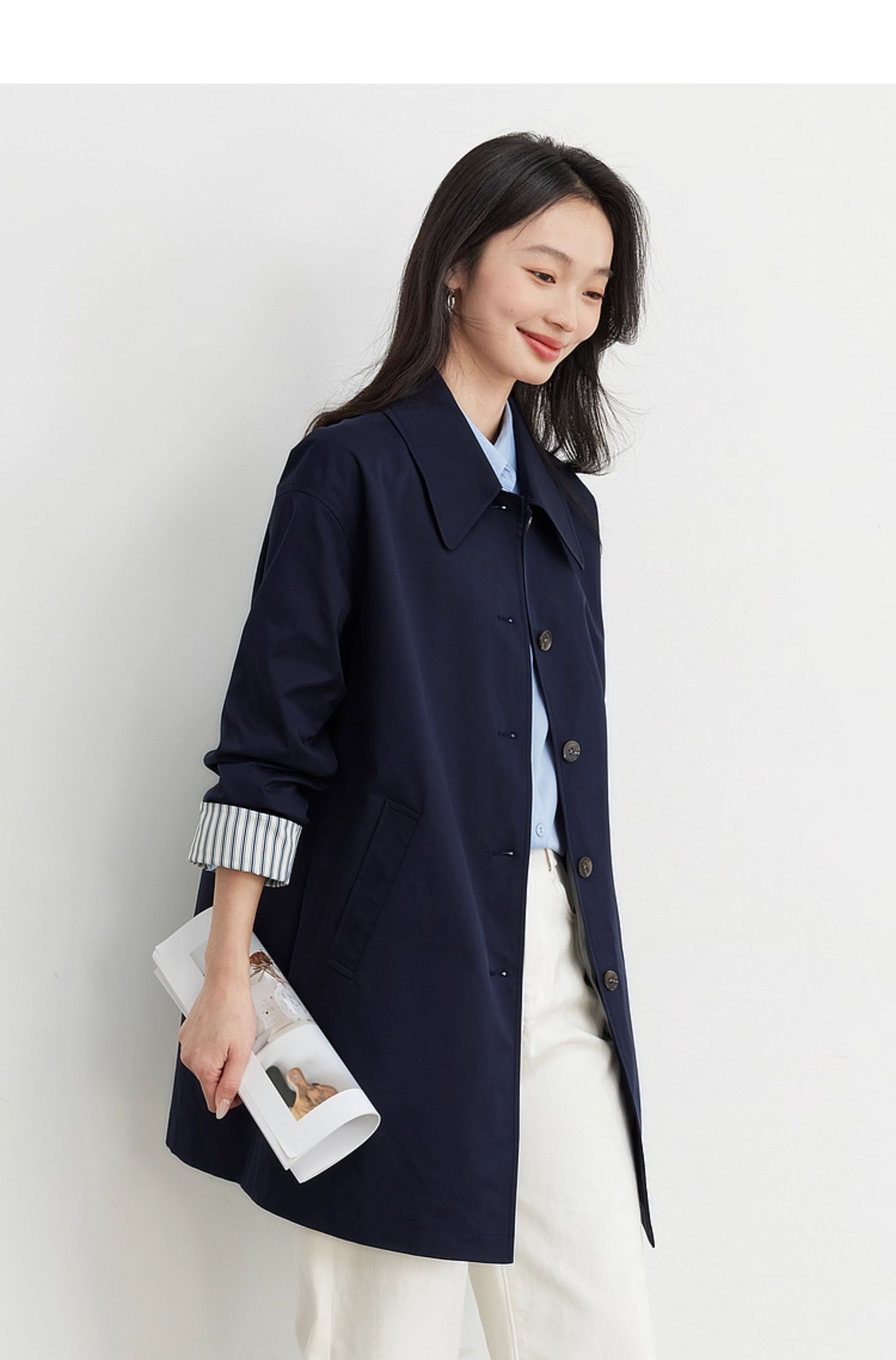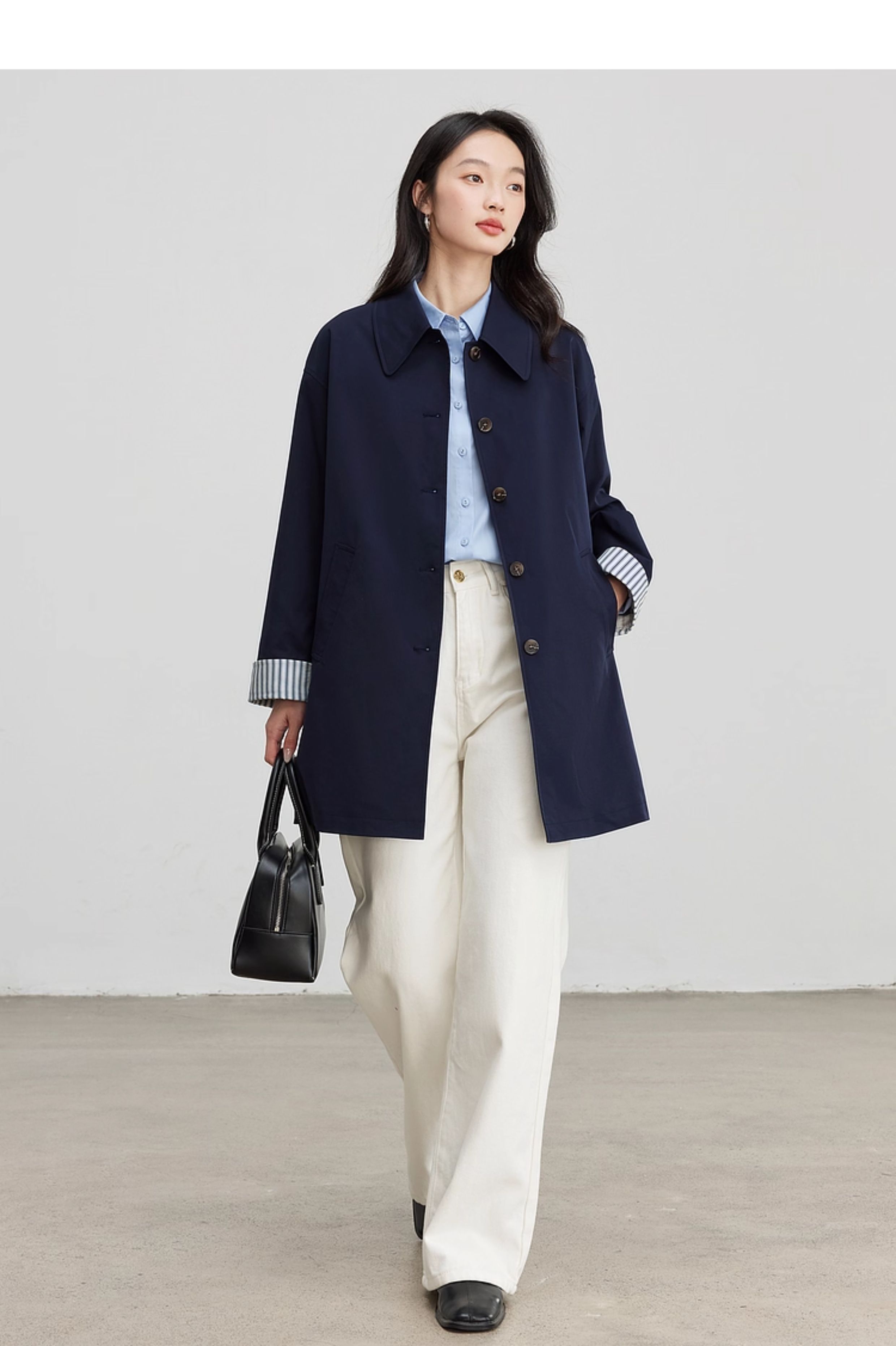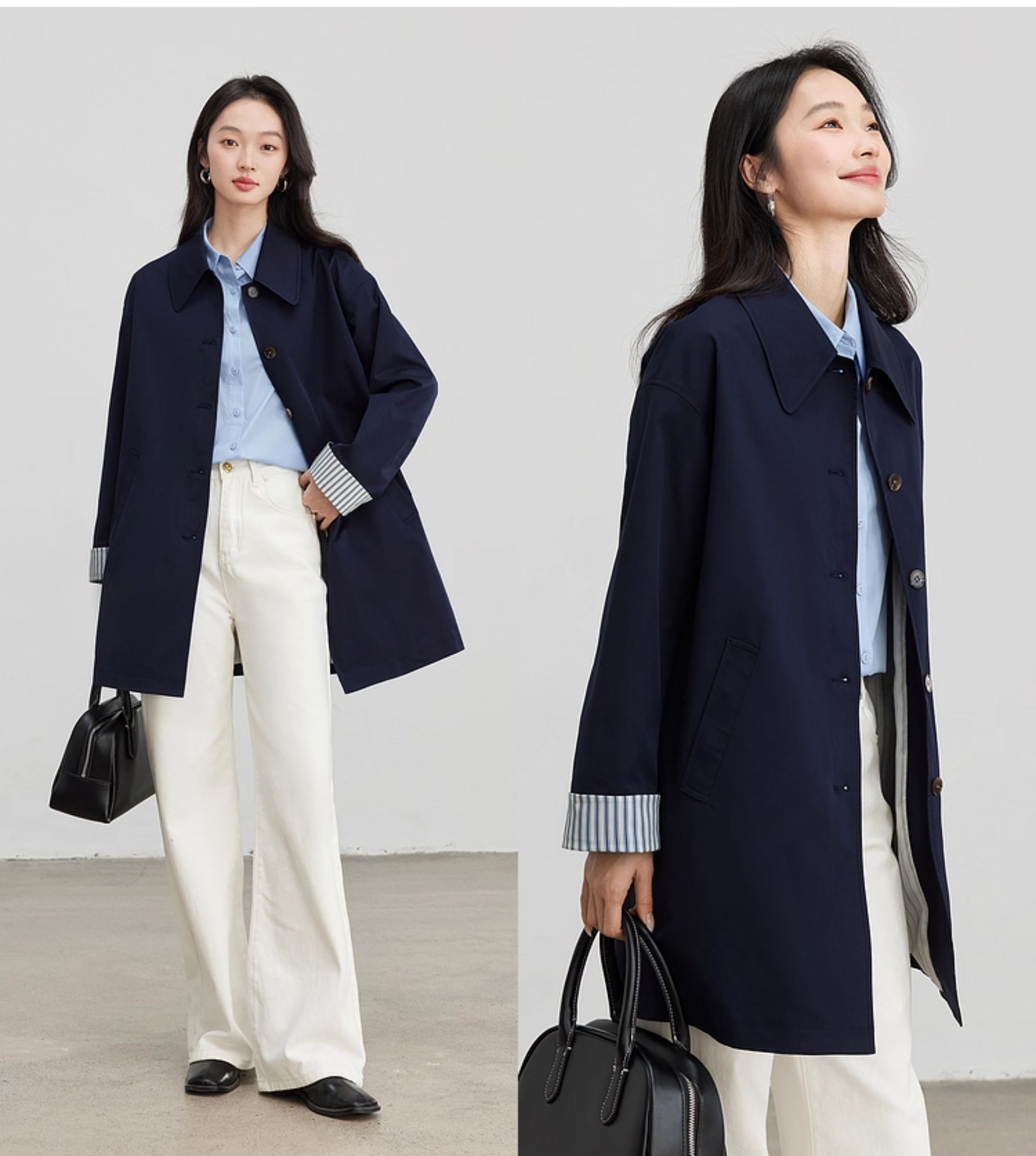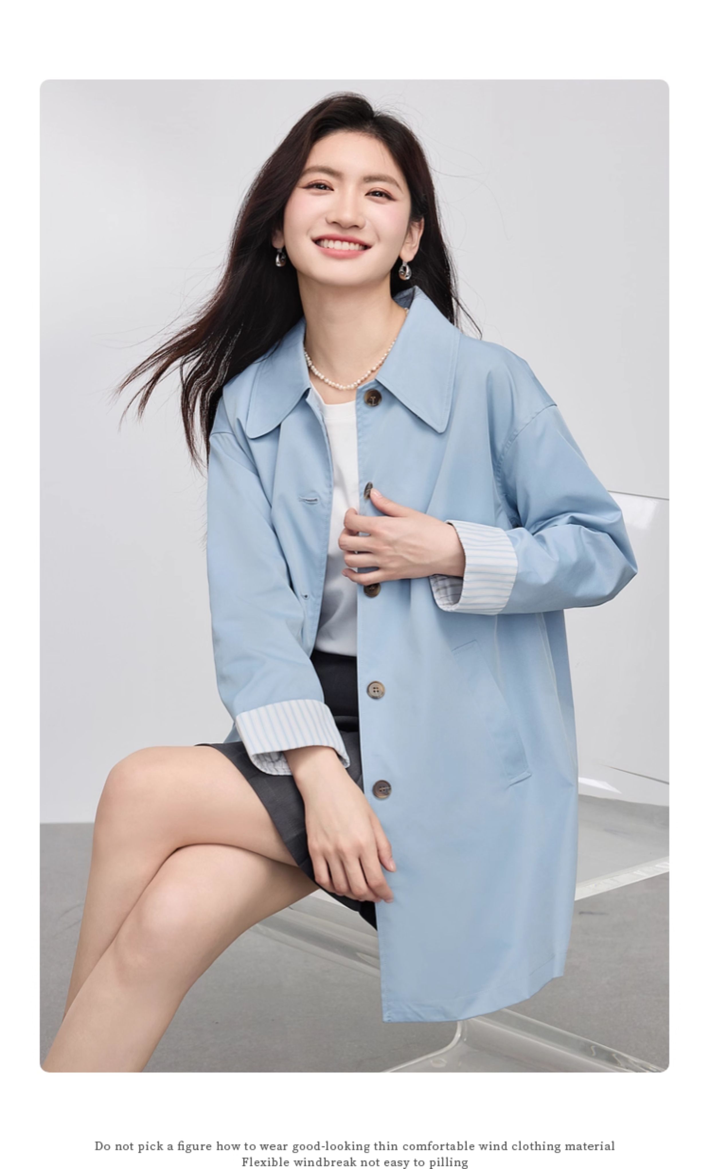 熙世界风衣外套女中长款2025年新款秋装宽松休闲小个子英伦风大衣