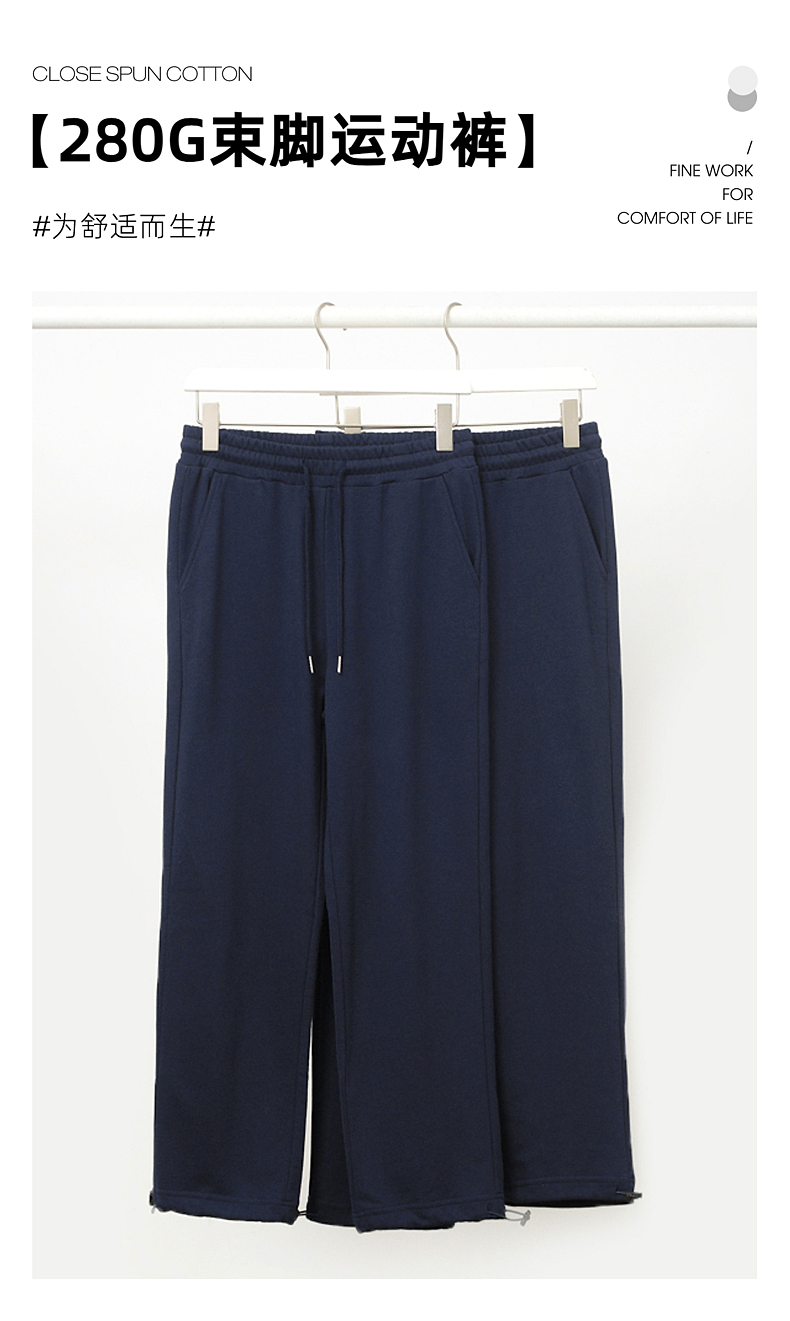 Navy Blue 280g Heavyweight Straight-Leg Sweatpants for Men, Dark Blue Loose Drawstring Sports Pants for Women, Casual Pants, Spring 2025