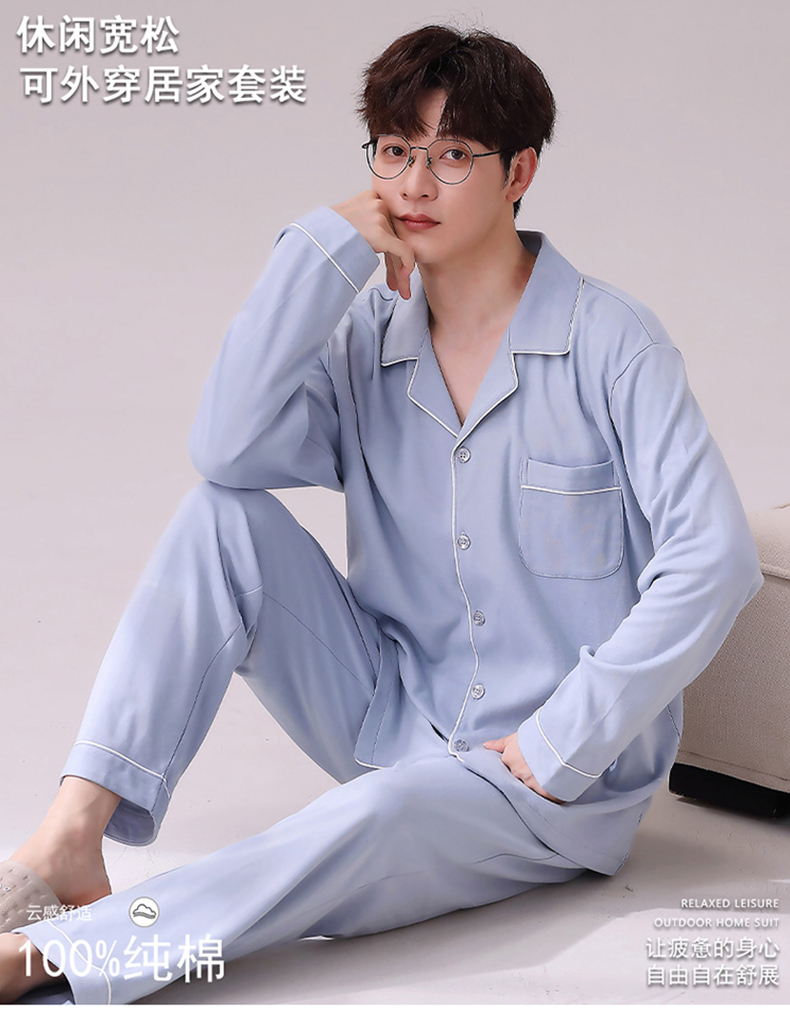 Мужские пижамы, мужской стиль для весны, осени и зимы, новая модель 2025 года, можно носить на выход, минималистичные, подходят для всех сезонов, домашняя одежда из чистого хлопка, с длинными рукавами.