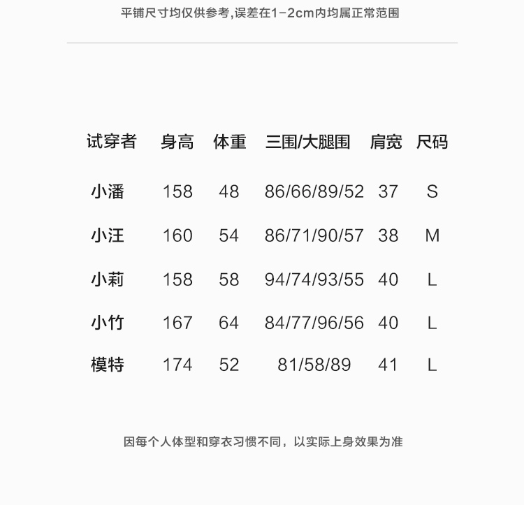 China (cm) 160-165/84-86 165-170 / 88-90 167-172 / 92-96 168-173 / 98-102 170-176 / 106-110
