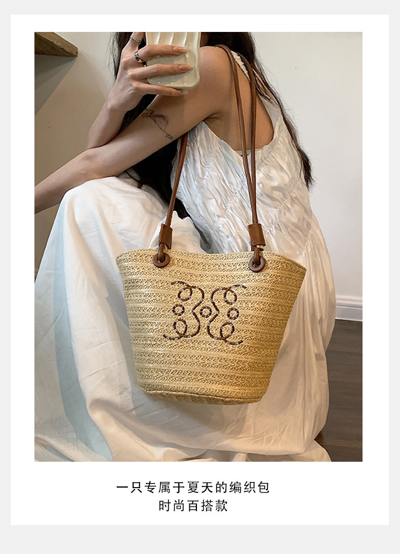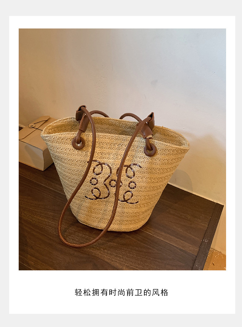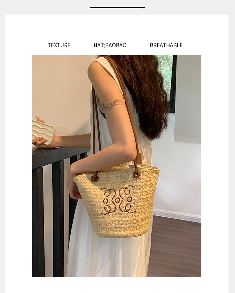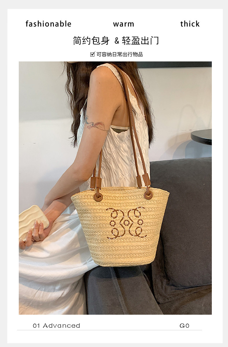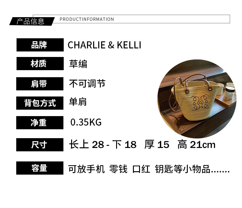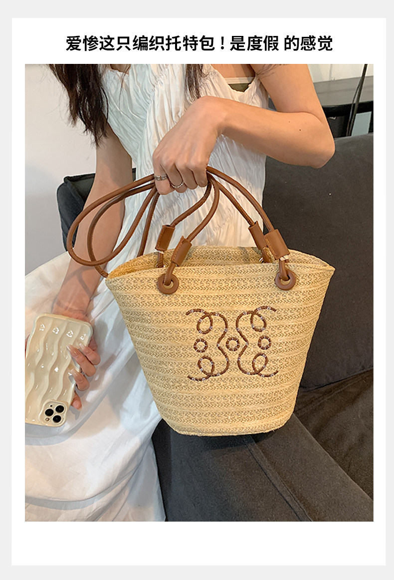 CHARLIE&KELLI women's bag summer new portable large tote bag woven bag seaside vacation straw bag ins