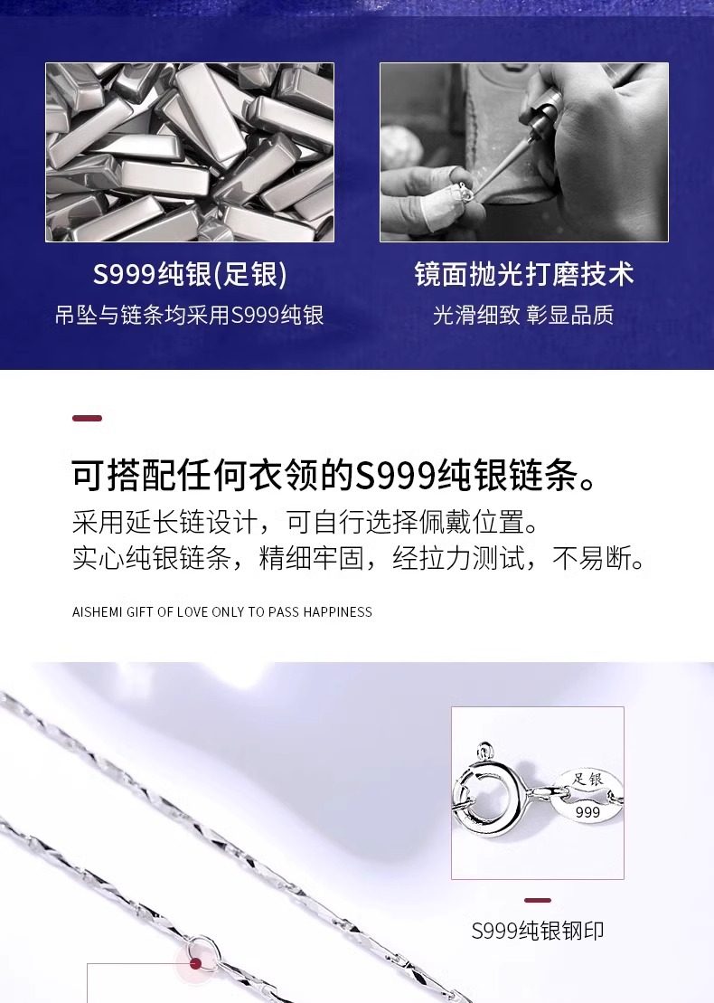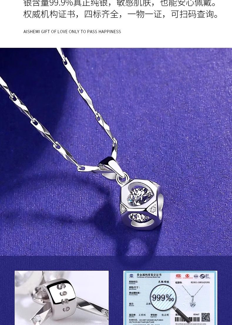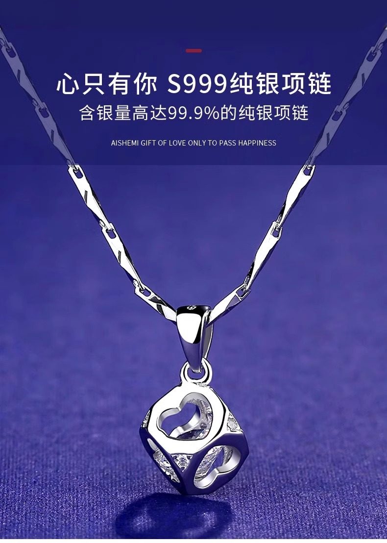 999纯银项链女爆款轻奢2024年新款小众银饰七夕情人节礼物送女友