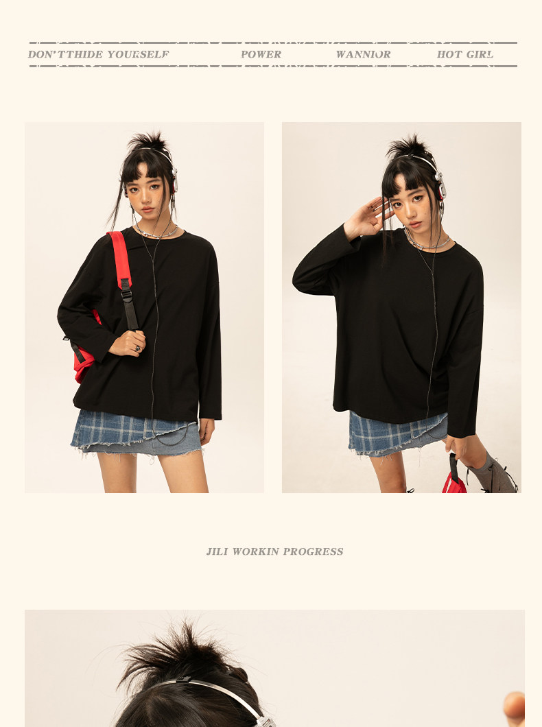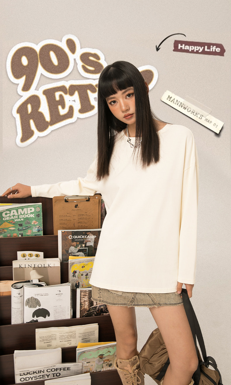 Pull back long-sleeved T-shirt for women 2025 new autumn shoulder inner top student casual large size loose bottoming shirt J