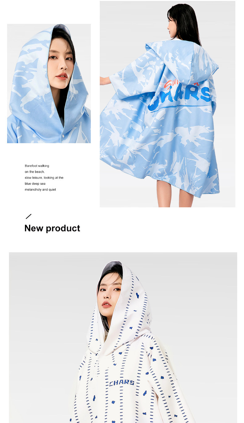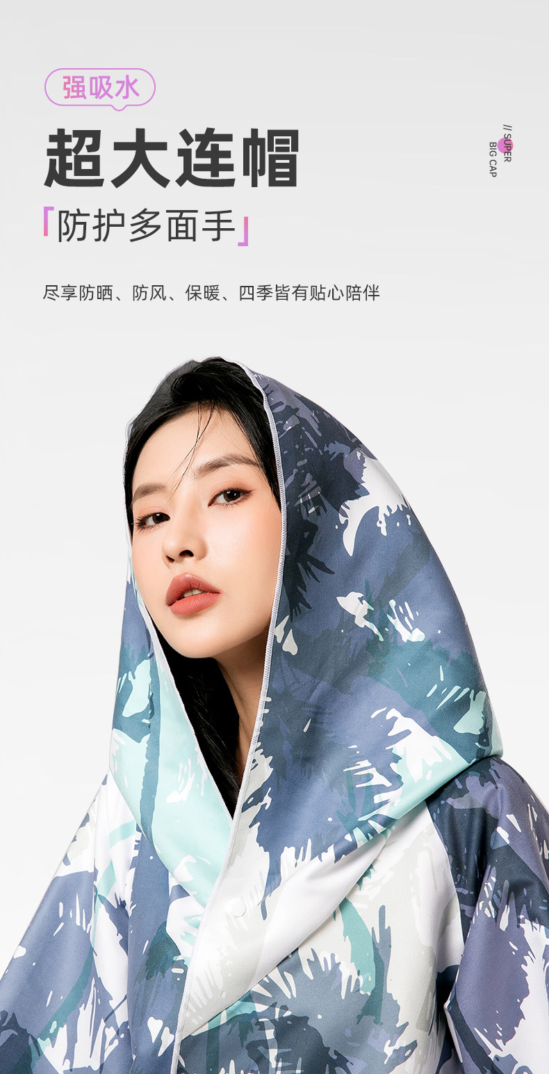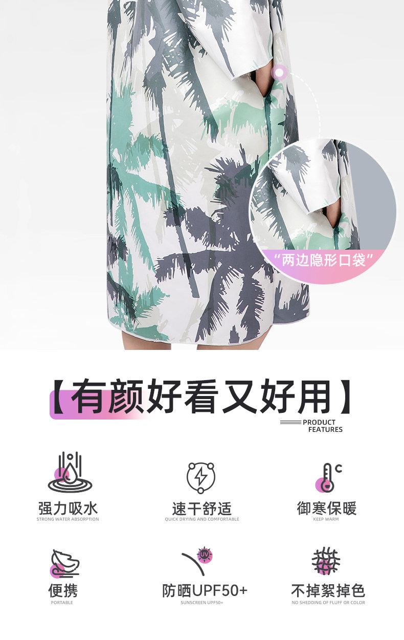 Chars Bathrobe Quick-Drying Swimming Sports Towel Open-Front Cape Can Be Worn and Wrapped for Adults Diving Sports Sun Protection