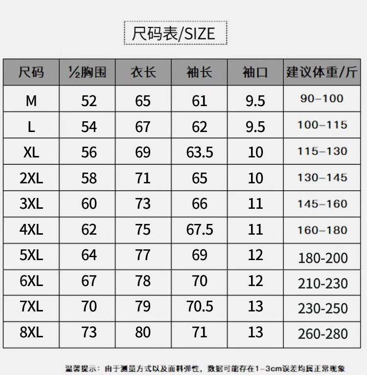 尺码 3XL,2XL,M,L,XL,4XL,5XL,6XL,7XL,8XL