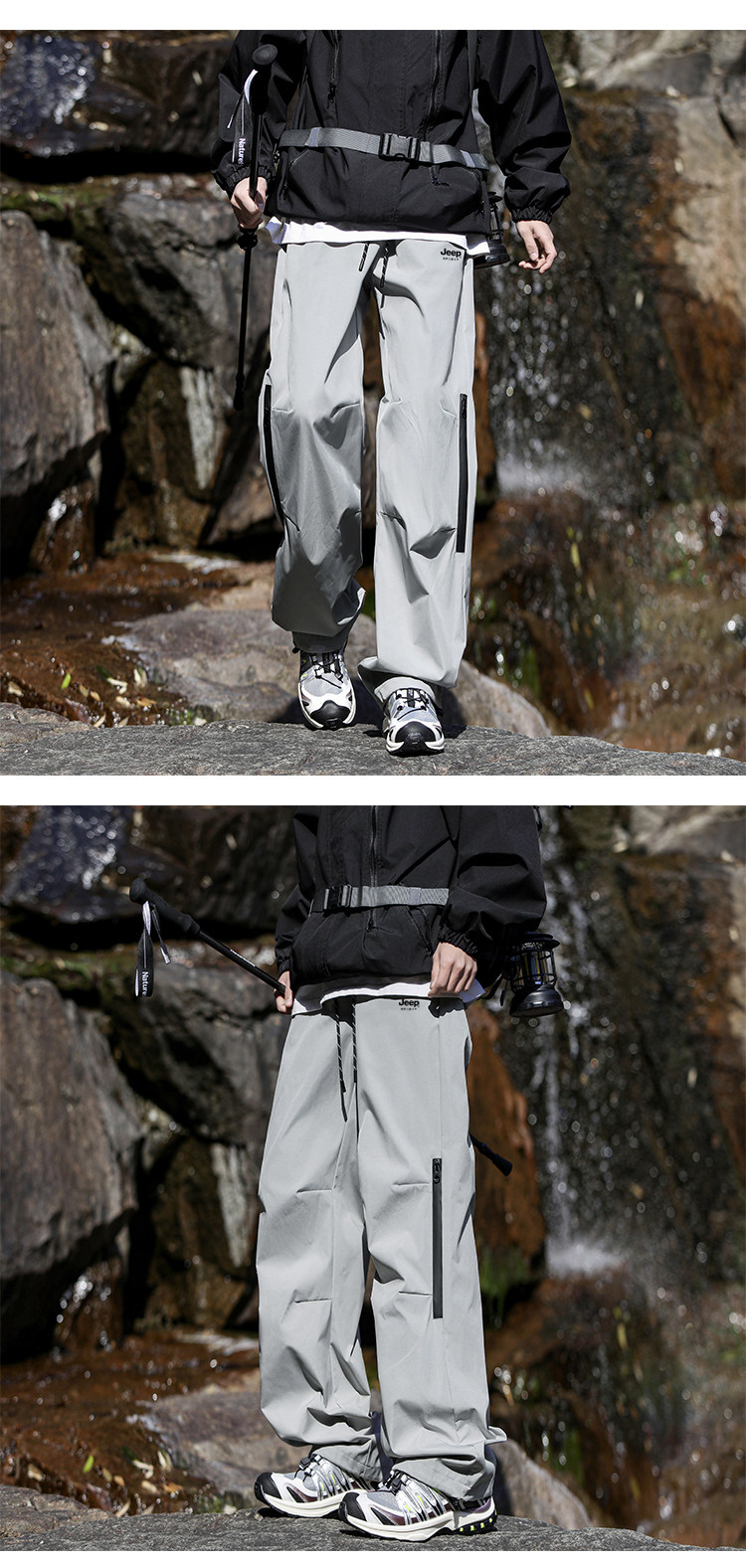 jeep spirit户外美式男休闲冲锋裤秋冬新款登山运动直筒工装裤女