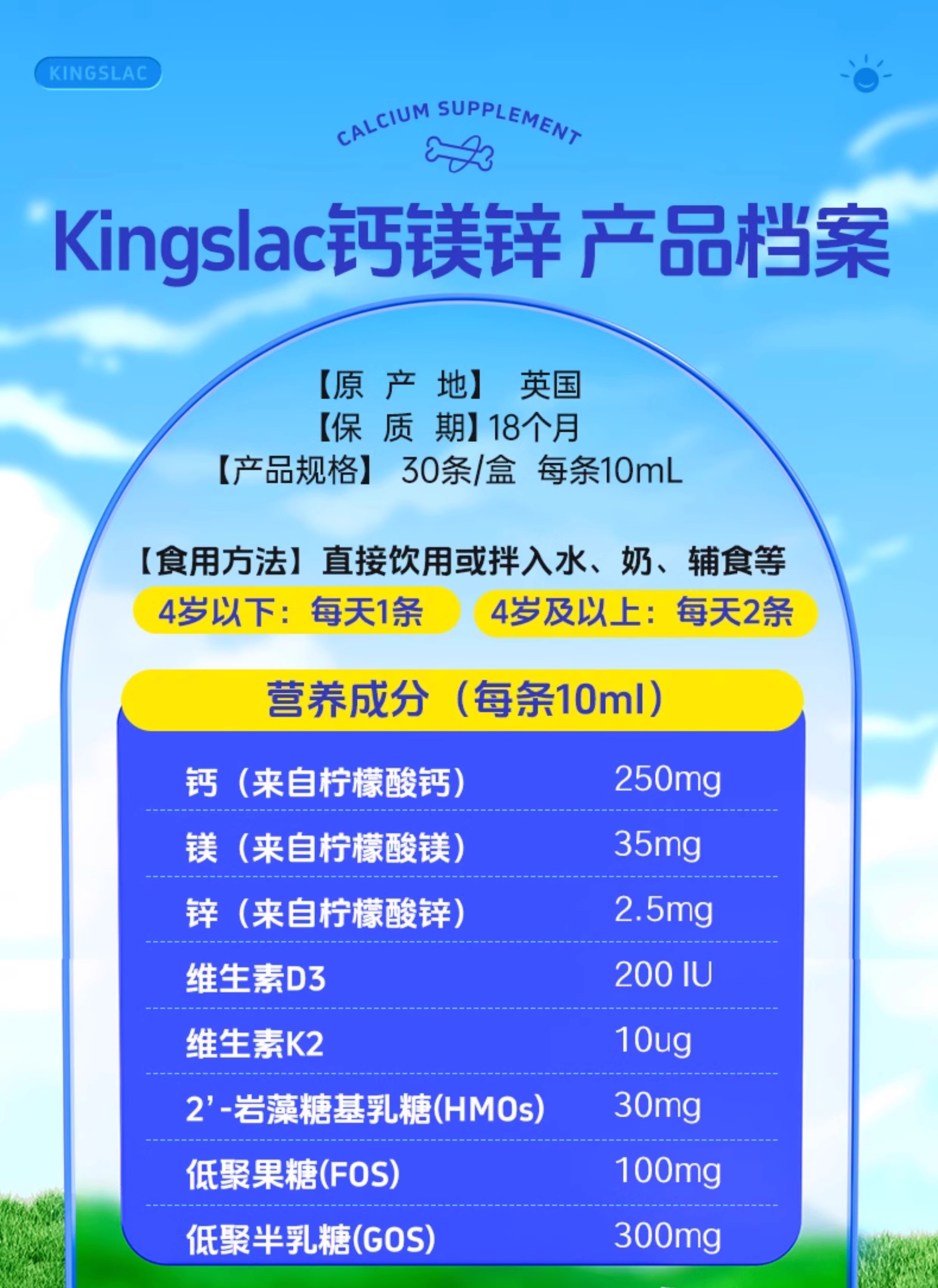 kingslac可维思全能钙镁锌儿童补钙补锌液体钙海藻乳钙婴儿宝宝钙