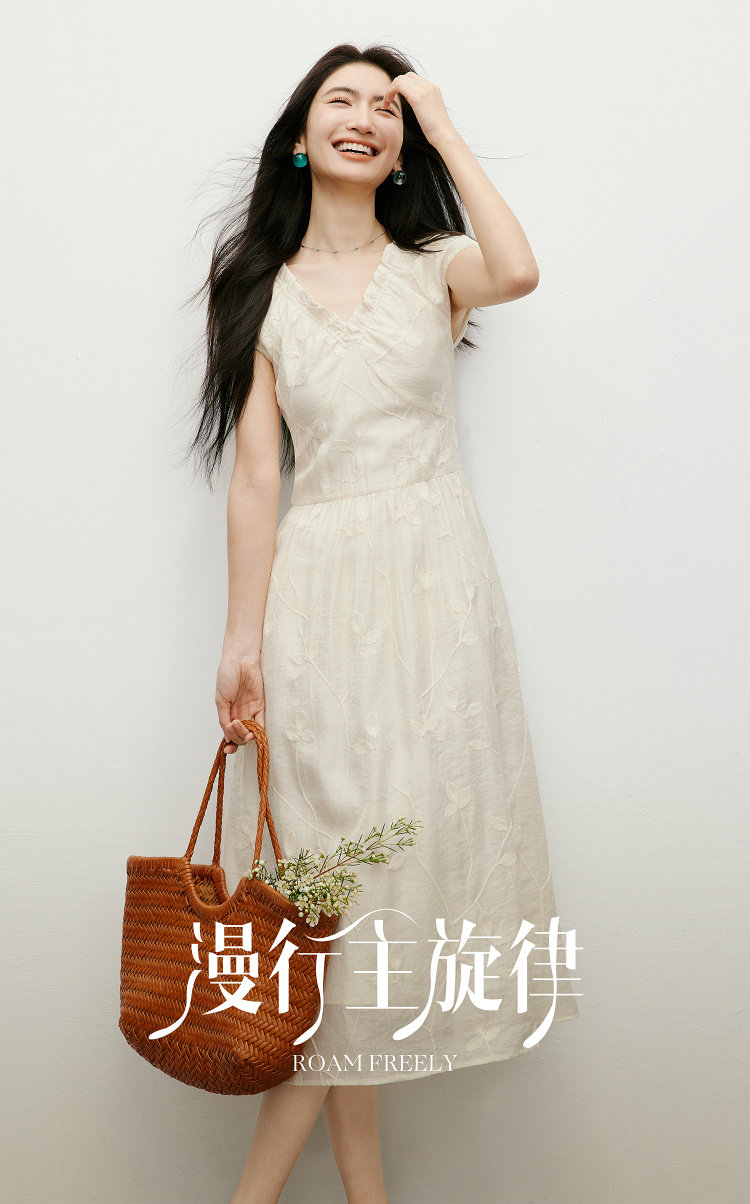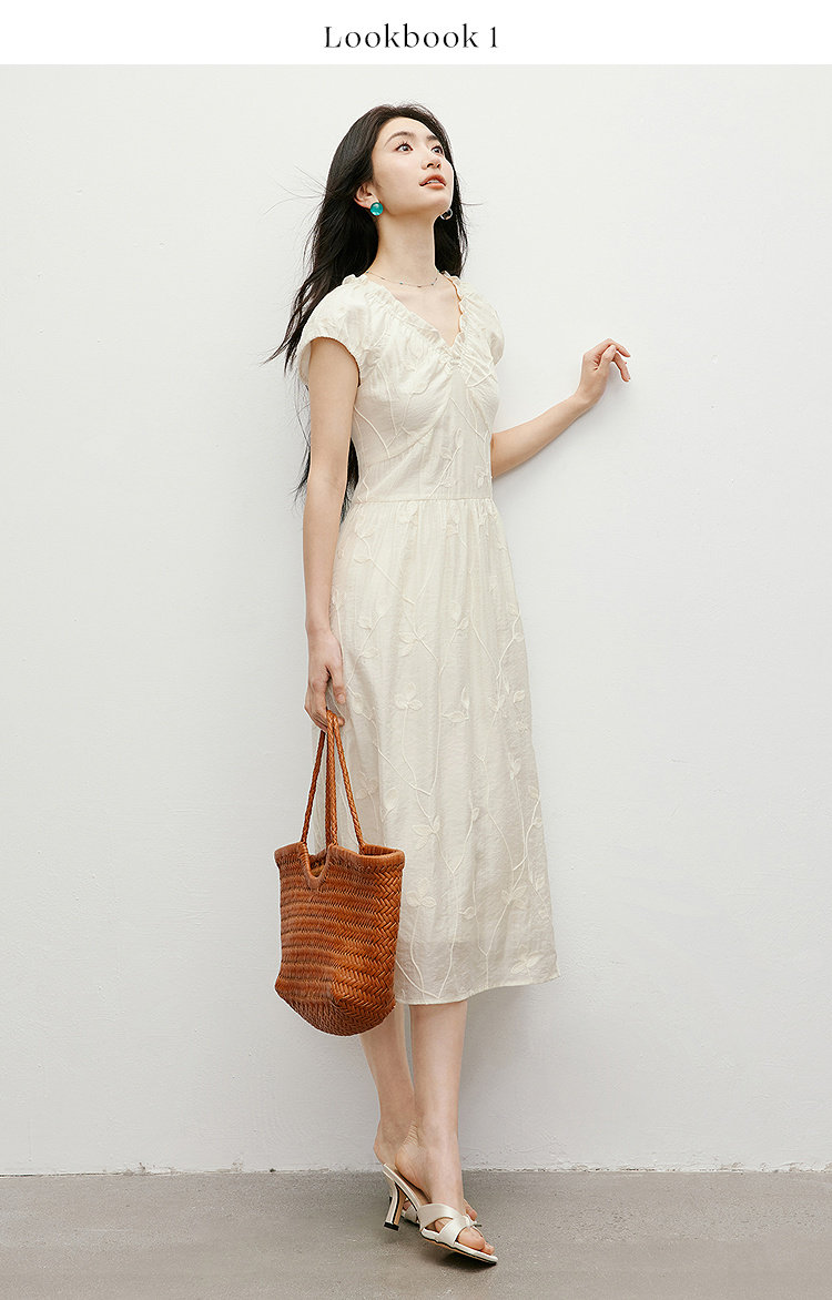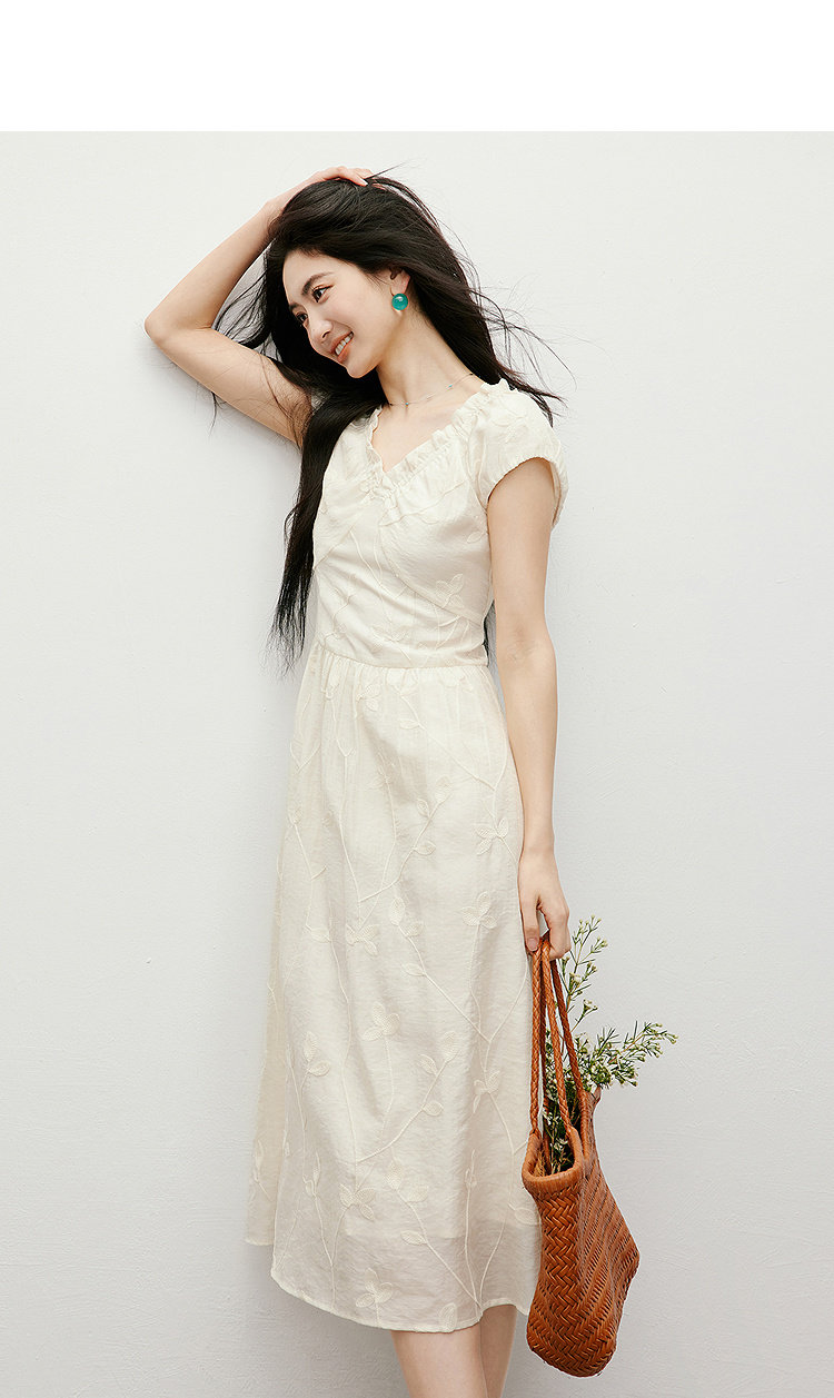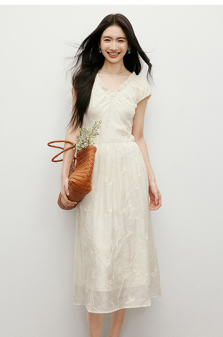 Red Sleeve Sweet Dress 2025 New Women's Heavy Embroidery Lace V-Neck Drapey Summer Stunning Mini Dress