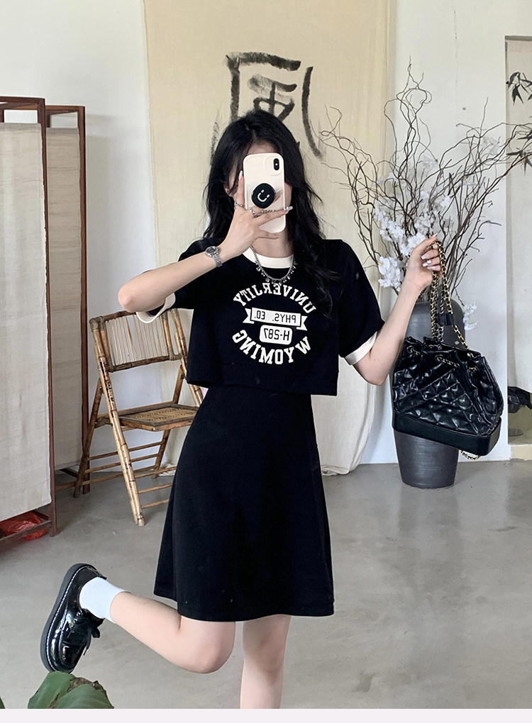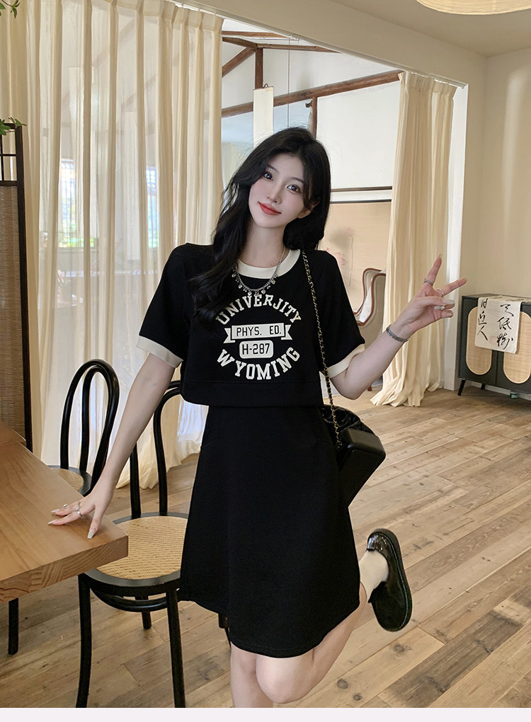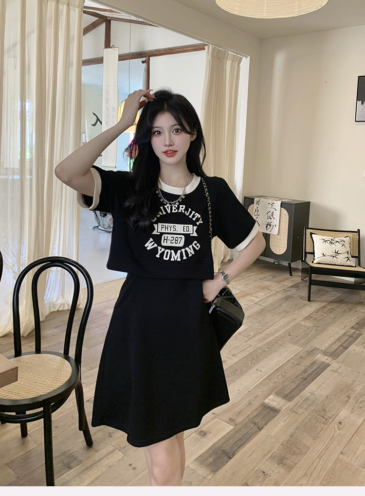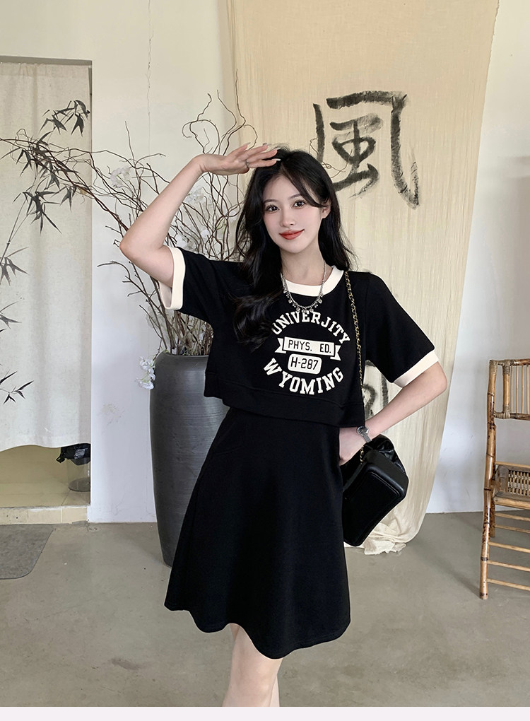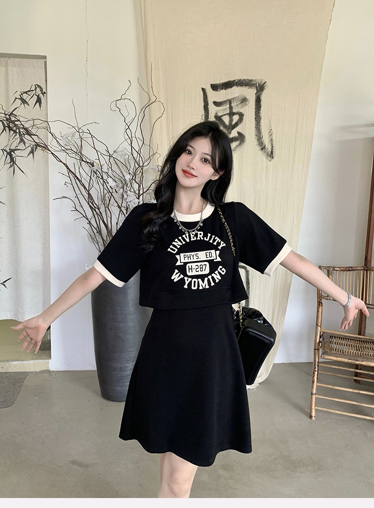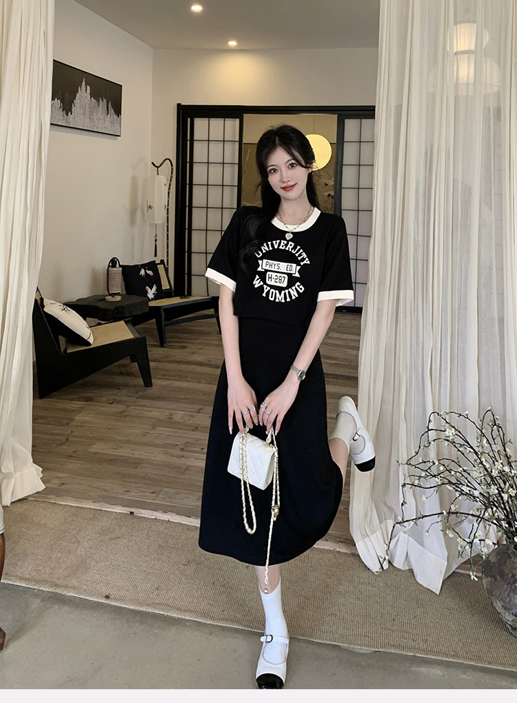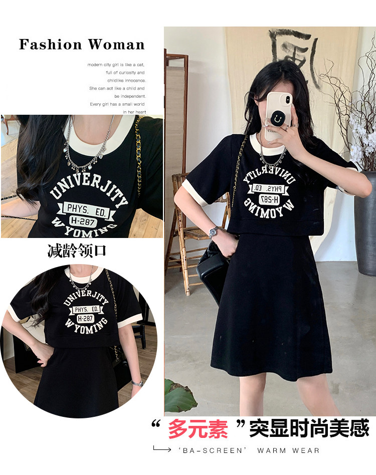 ww维维家大码女装2025夏装休闲收腰假两件显瘦闺蜜款长短款连衣裙