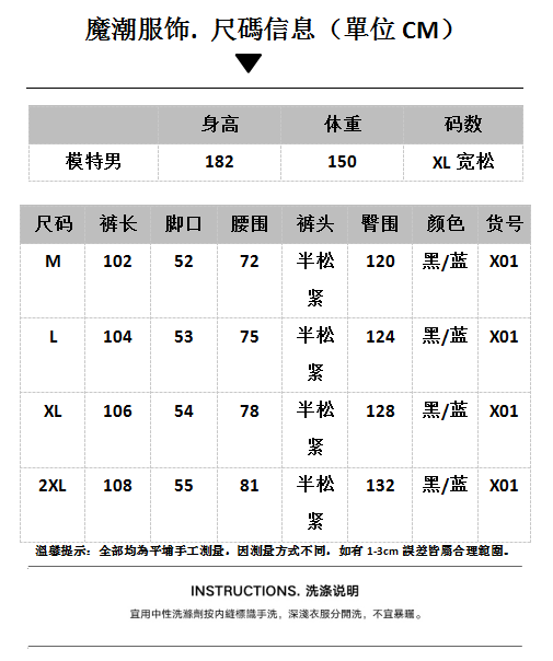 Outseam (cm) 99 cm 101.5 cm 104 cm 106.5 cm 109 cm