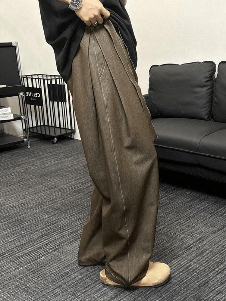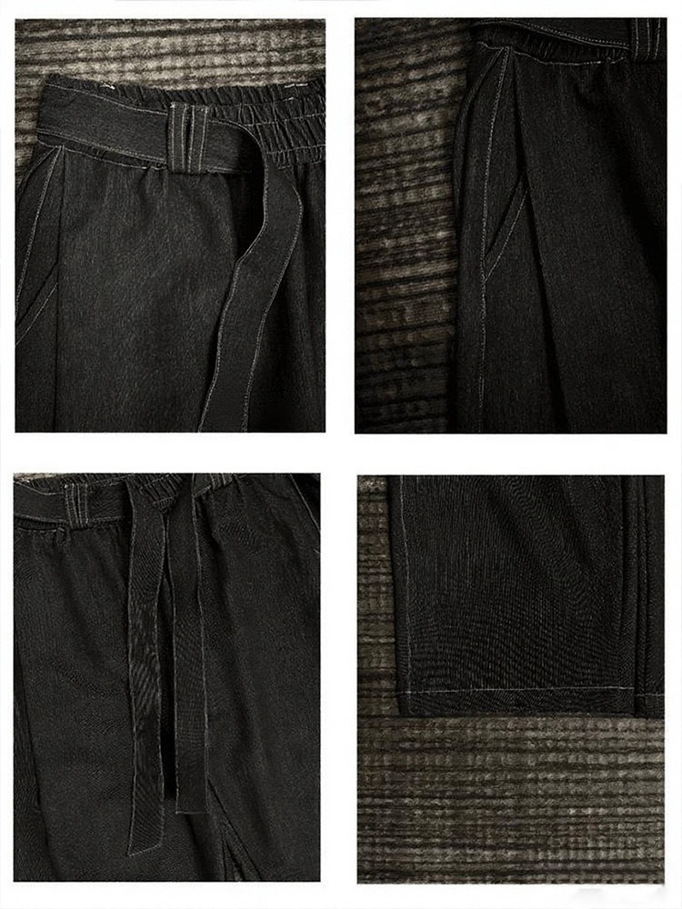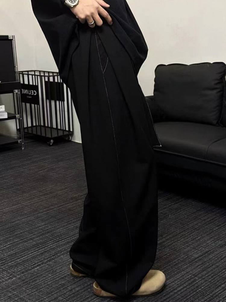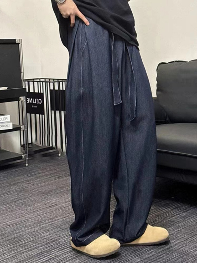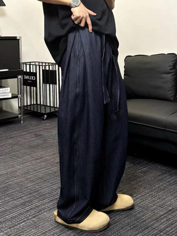 飘带设计感深蓝色仿牛仔裤男款夏季潮牌宽松阔腿裤垂感直筒弯刀裤