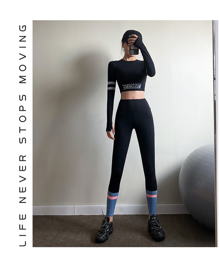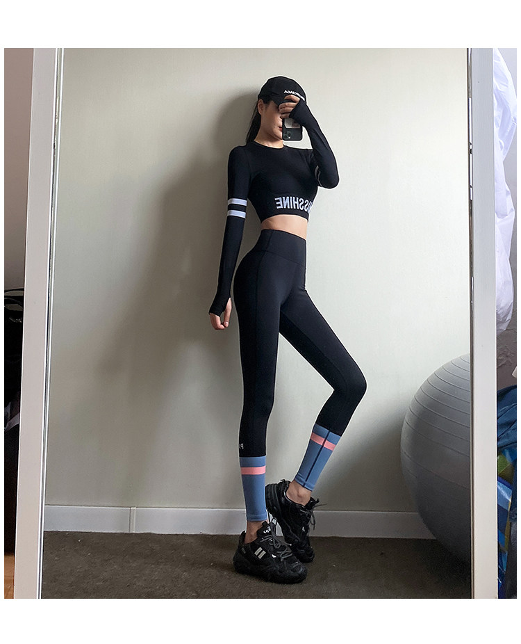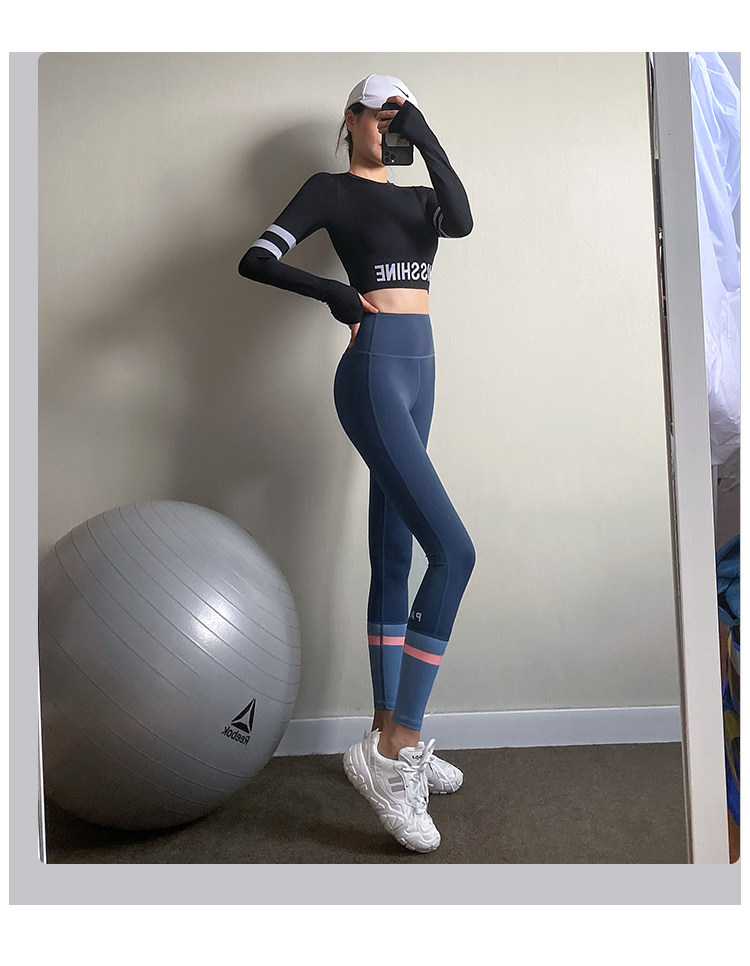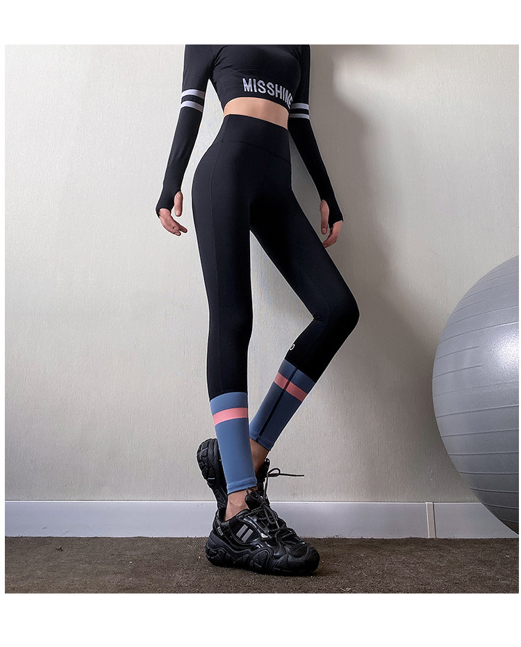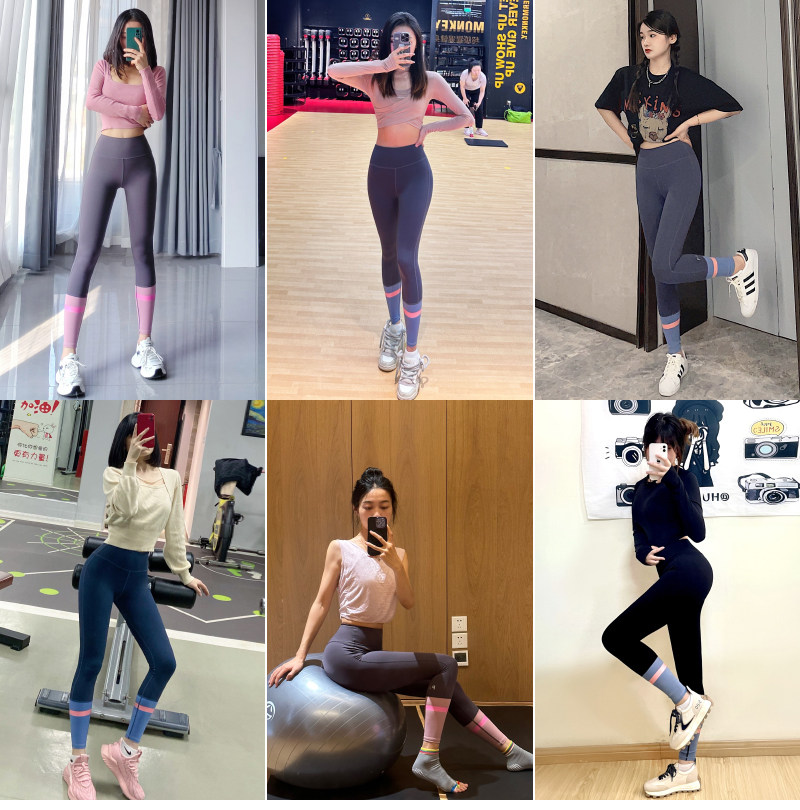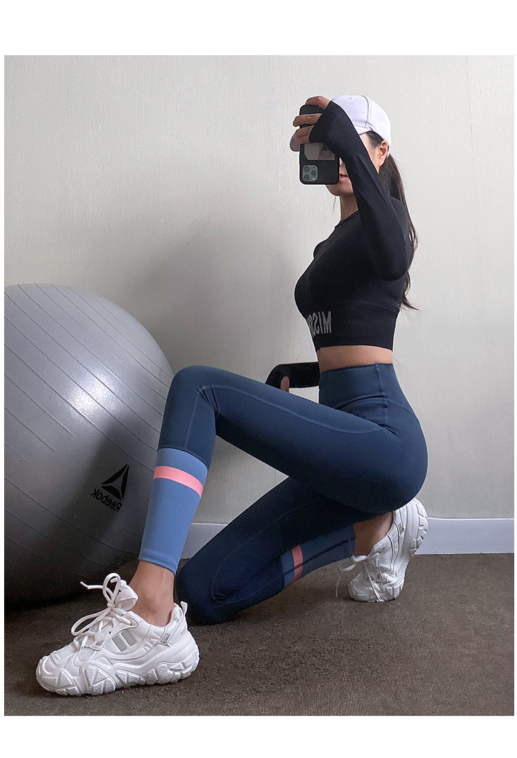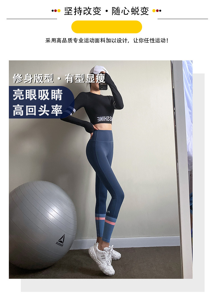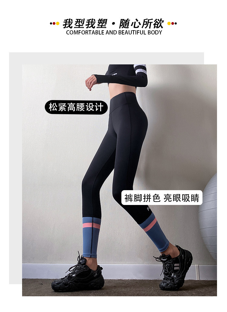 VIAR撞色蜜桃提臀健身女夏季跑步紧身运动训练普拉提瑜伽裤