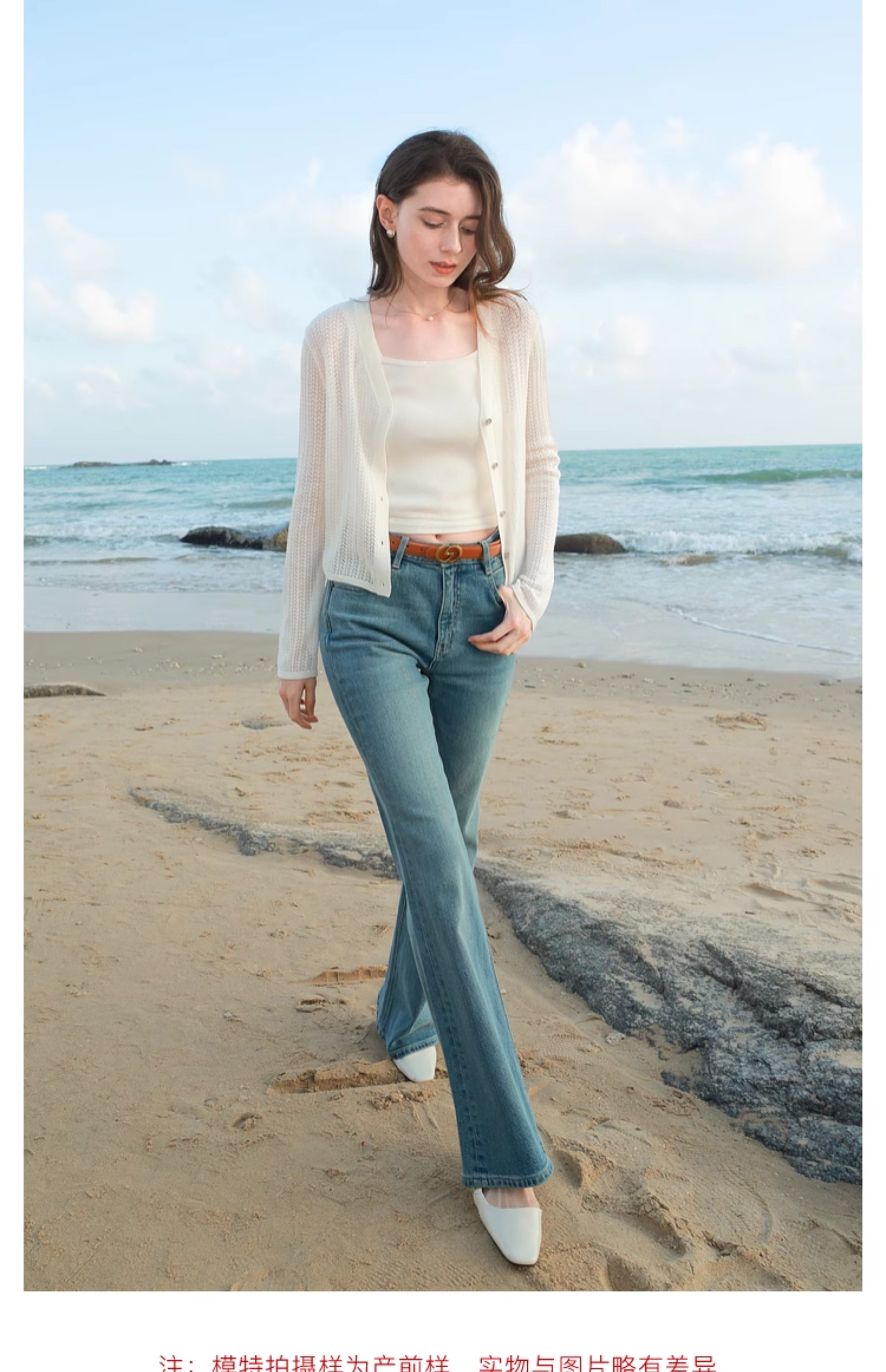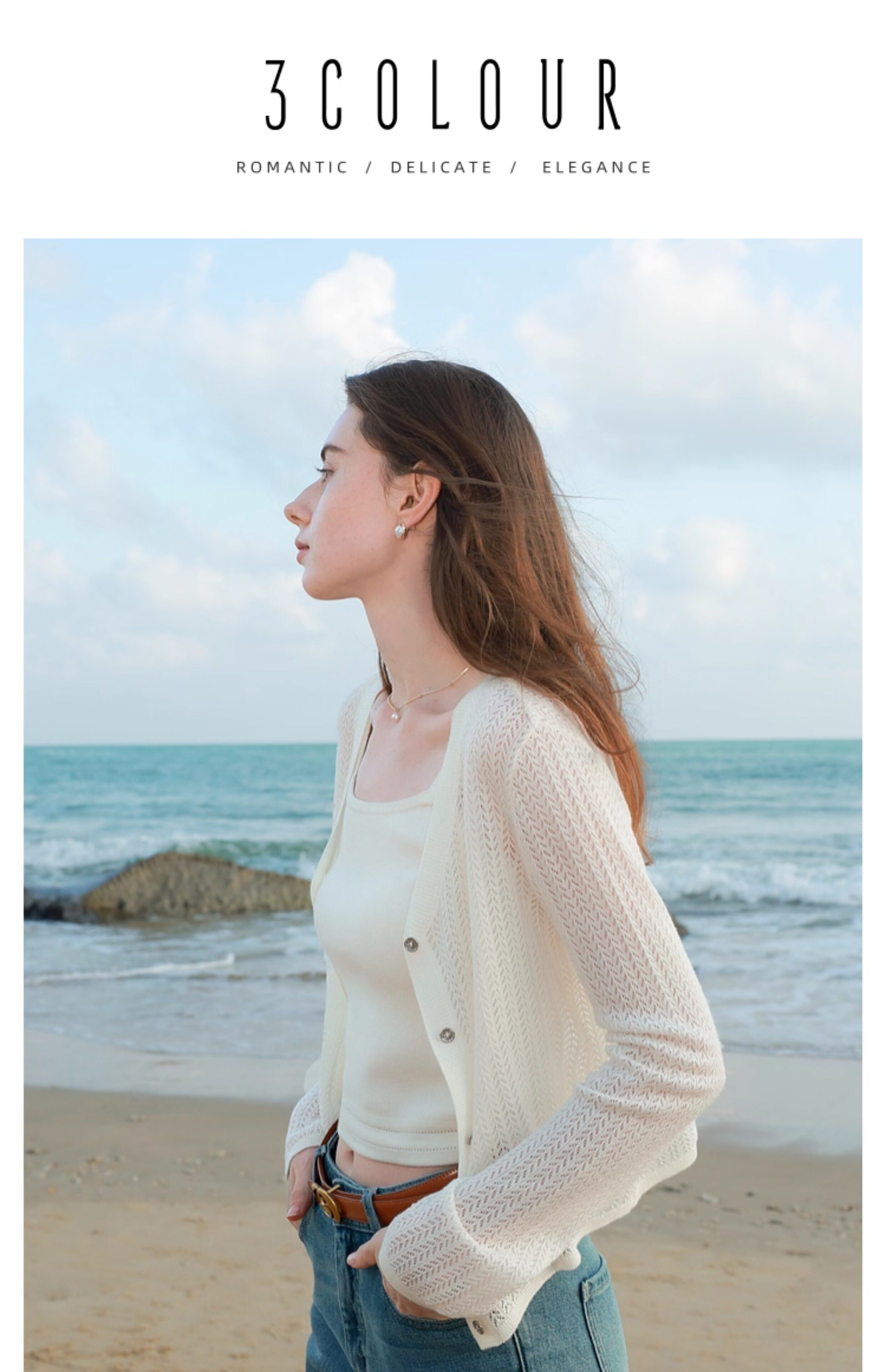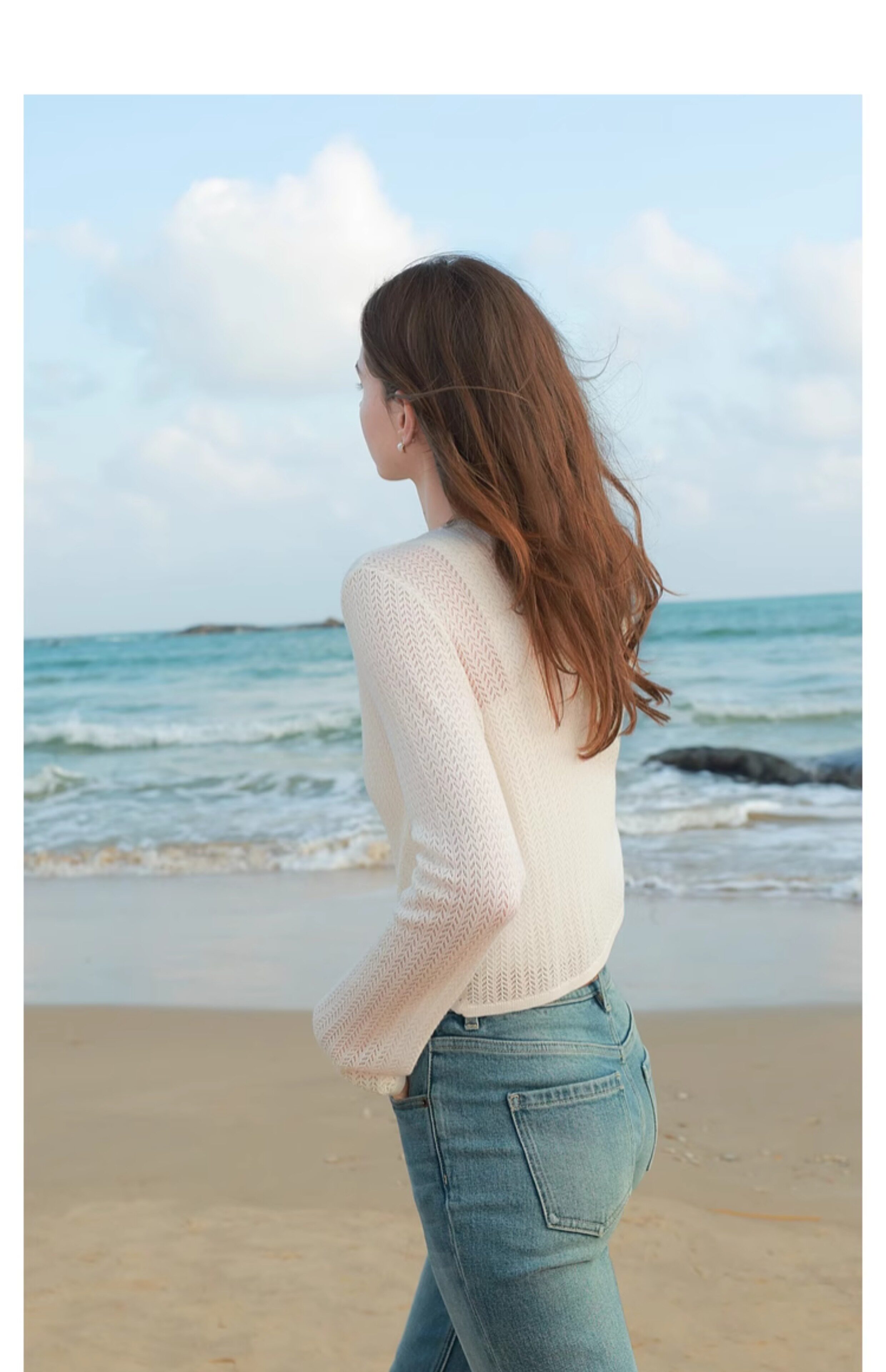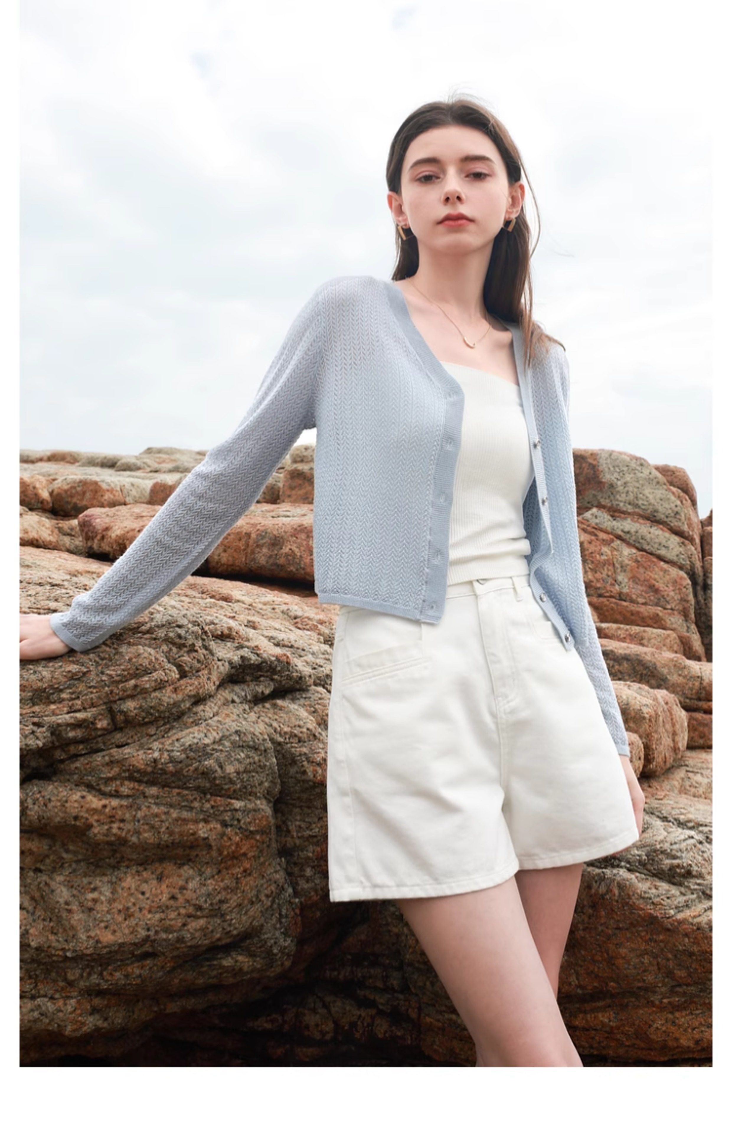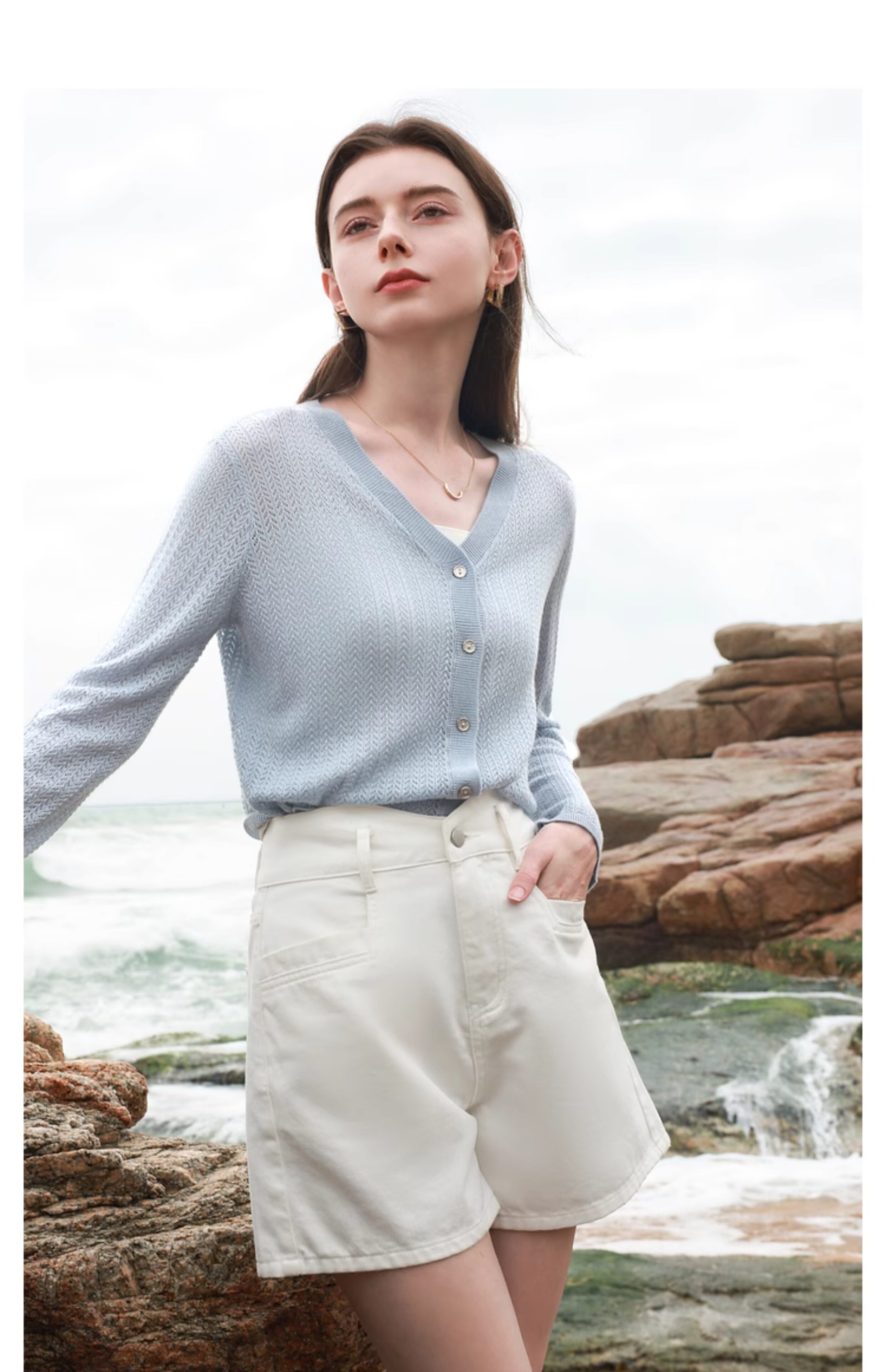 [Air-Conditioning Shirt] Lyocell + Mulberry Silk Three-Color 2025 Autumn Hollow-Out Jacket Knitted Cardigan Blouse for Women m