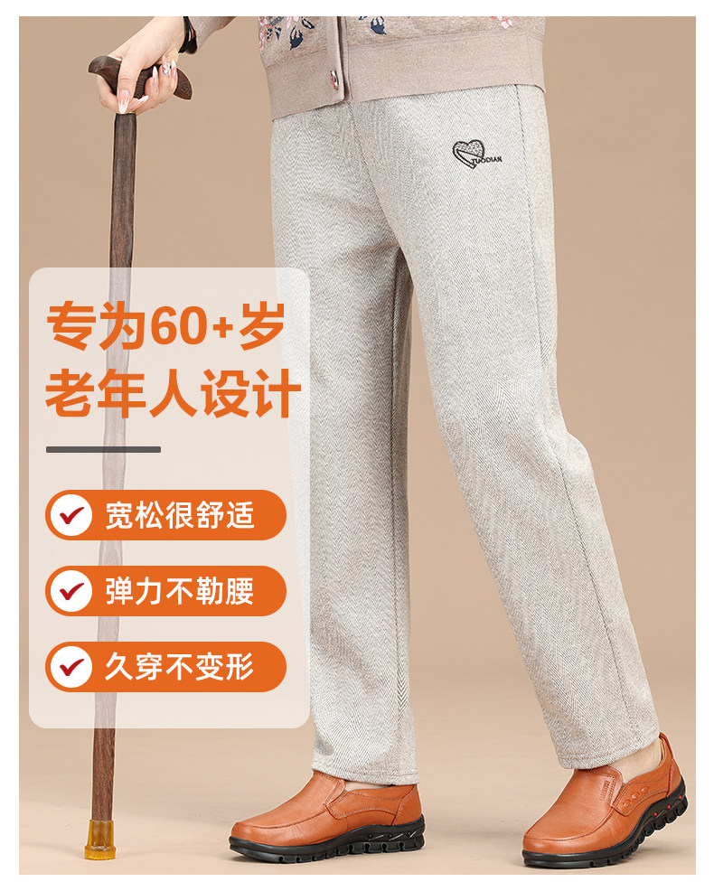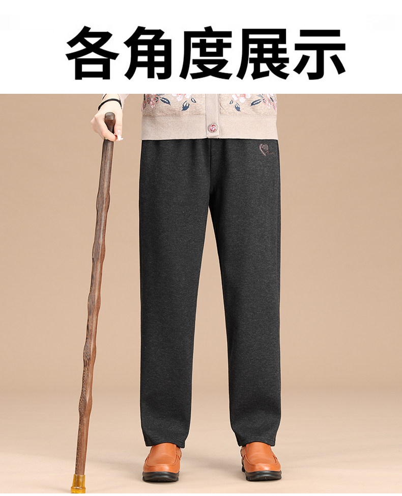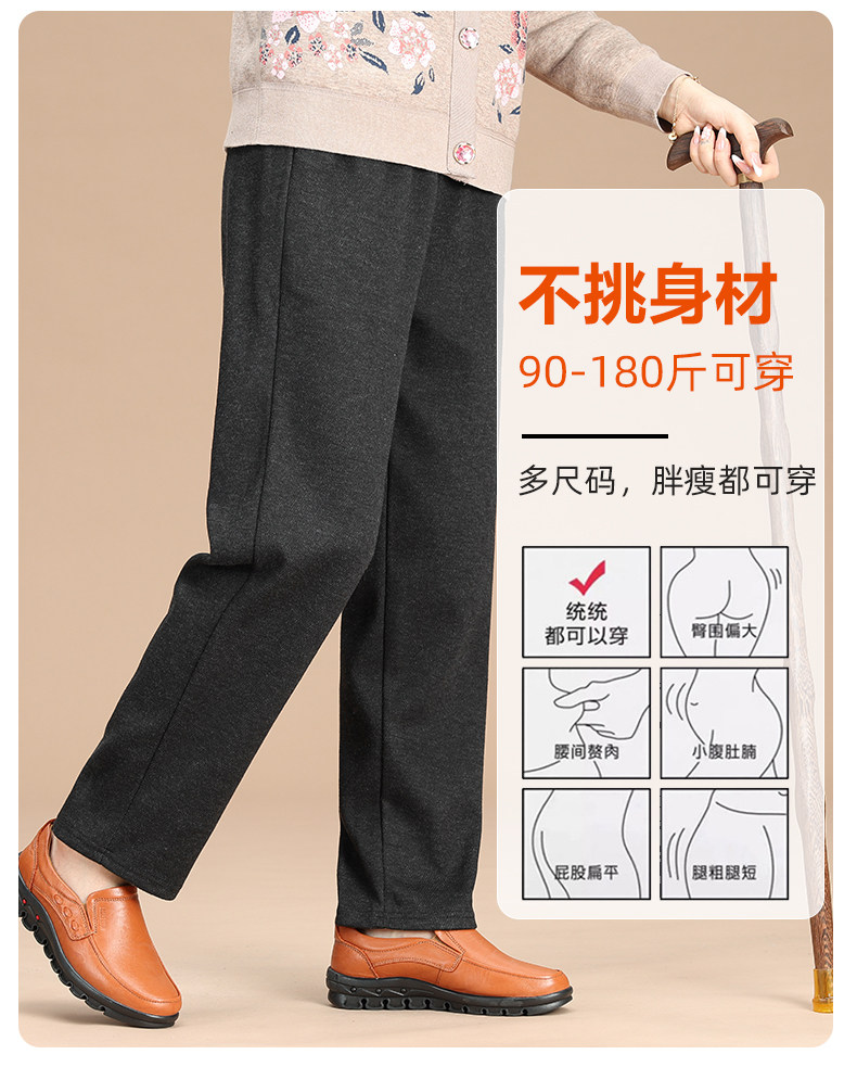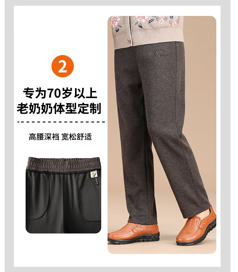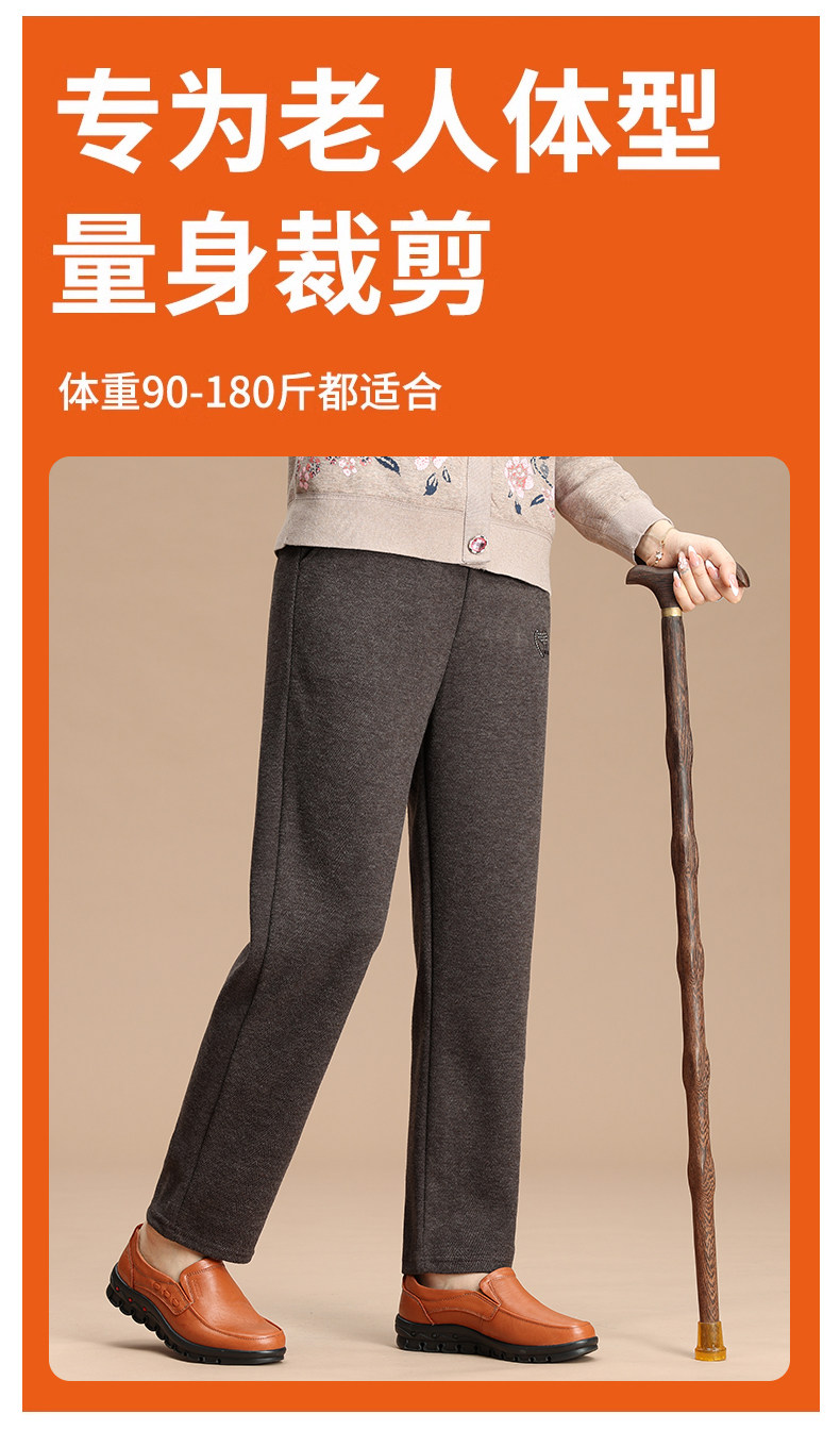 啄木鸟加绒老太太裤秋冬老年人宽松女裤毛呢直筒70岁老奶奶妈妈裤