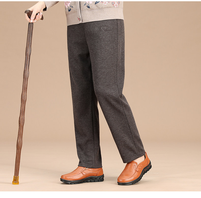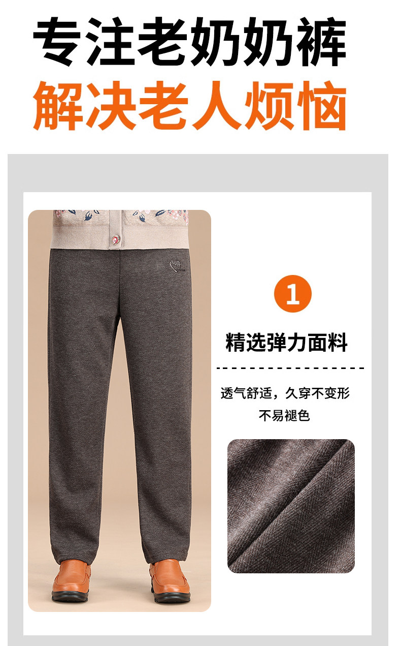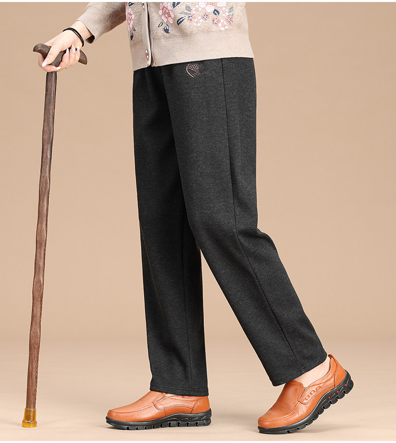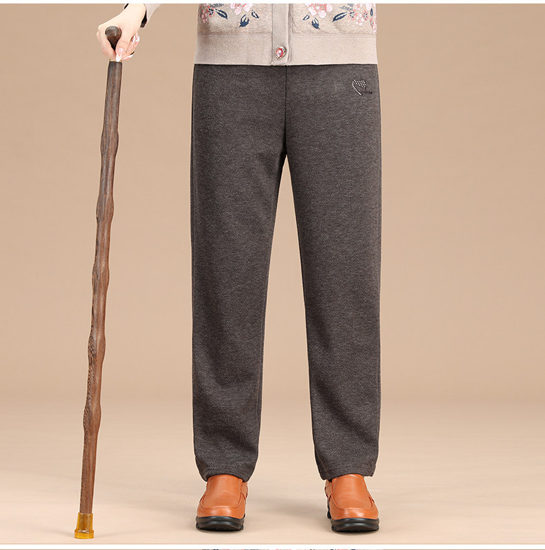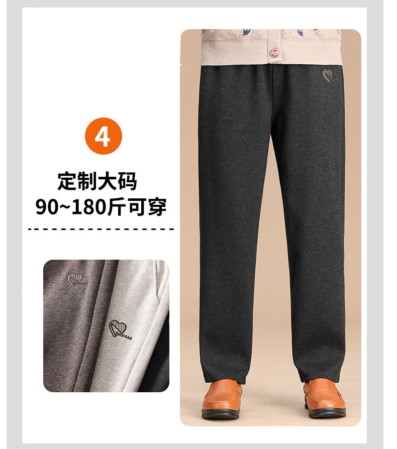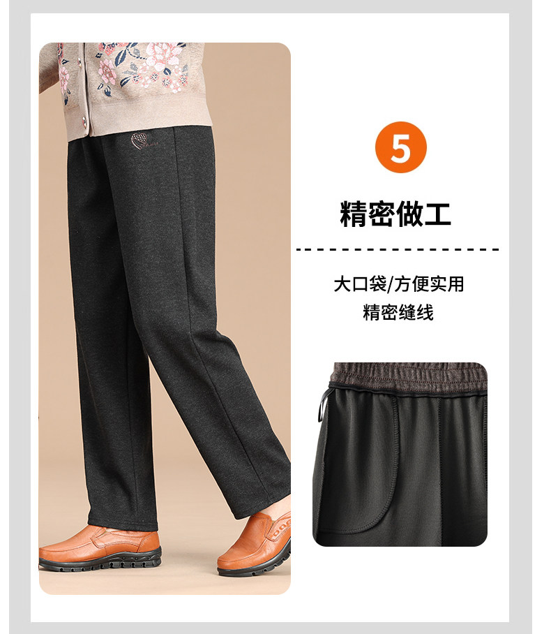 啄木鸟加绒老太太裤秋冬老年人宽松女裤毛呢直筒70岁老奶奶妈妈裤