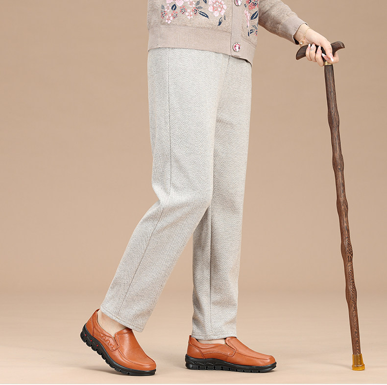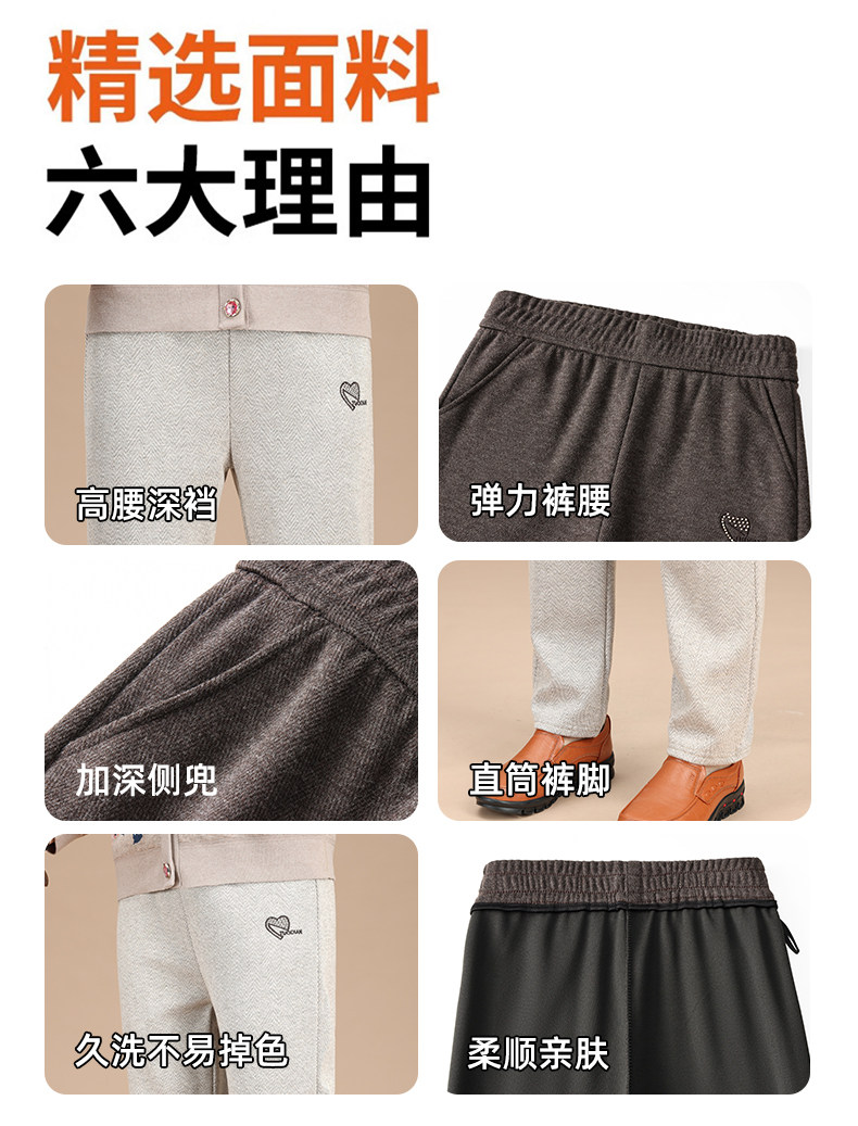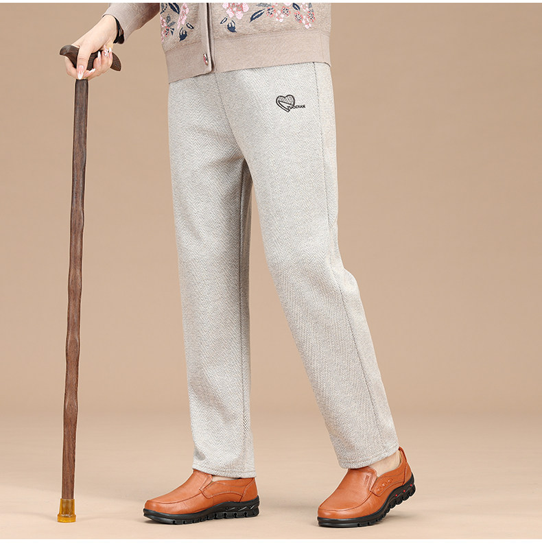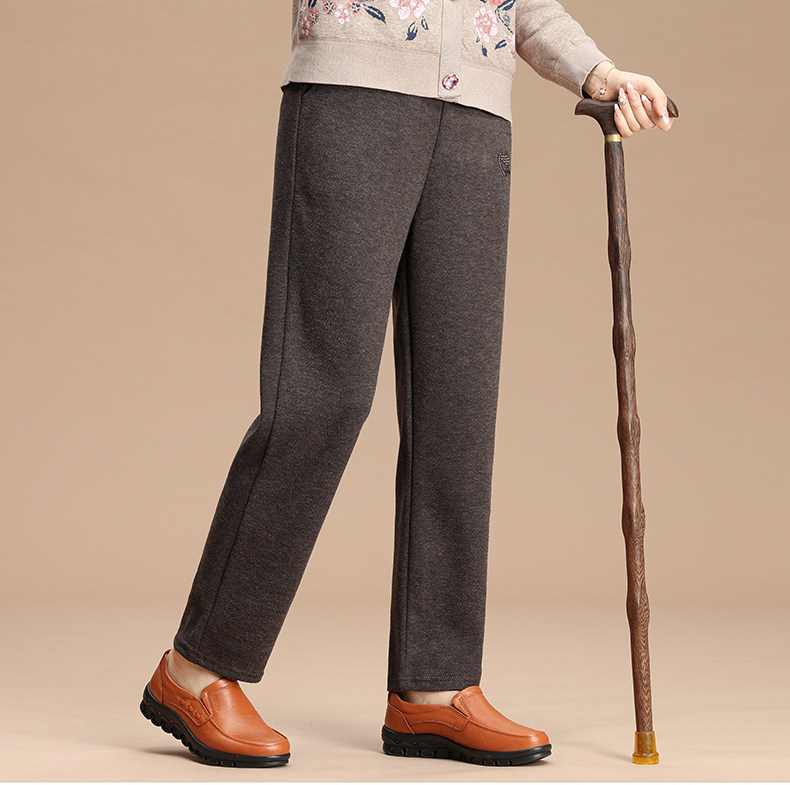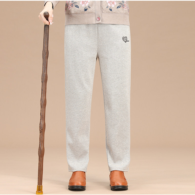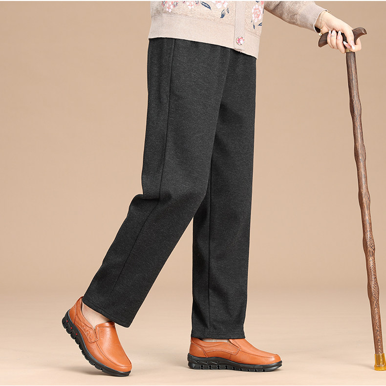 啄木鸟加绒老太太裤秋冬老年人宽松女裤毛呢直筒70岁老奶奶妈妈裤