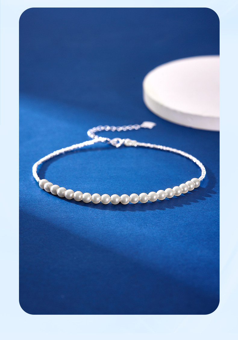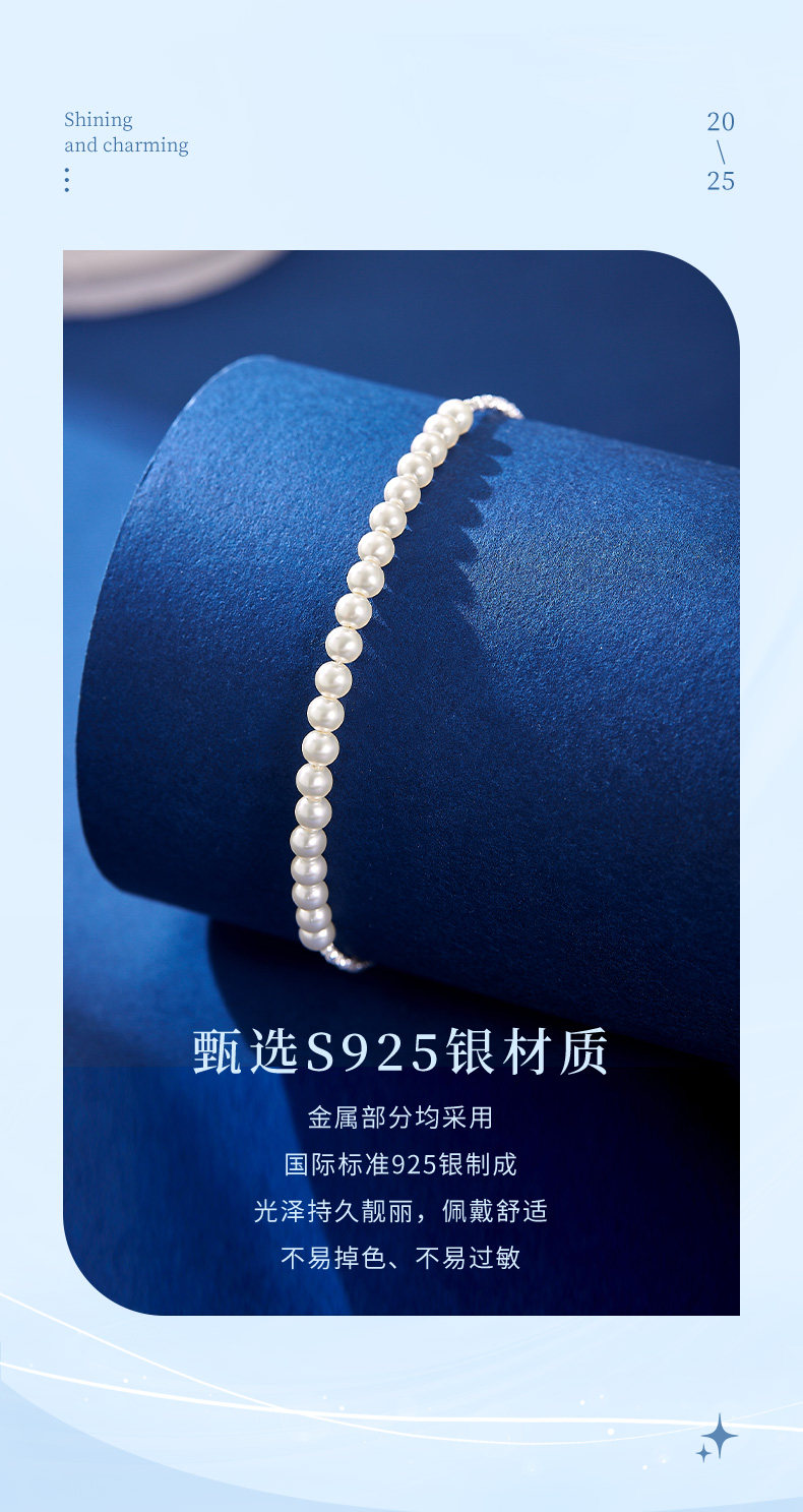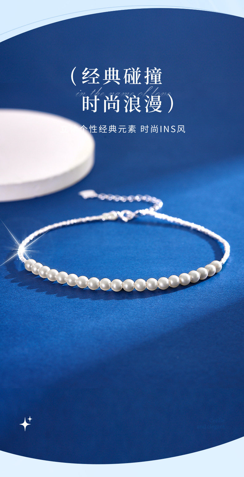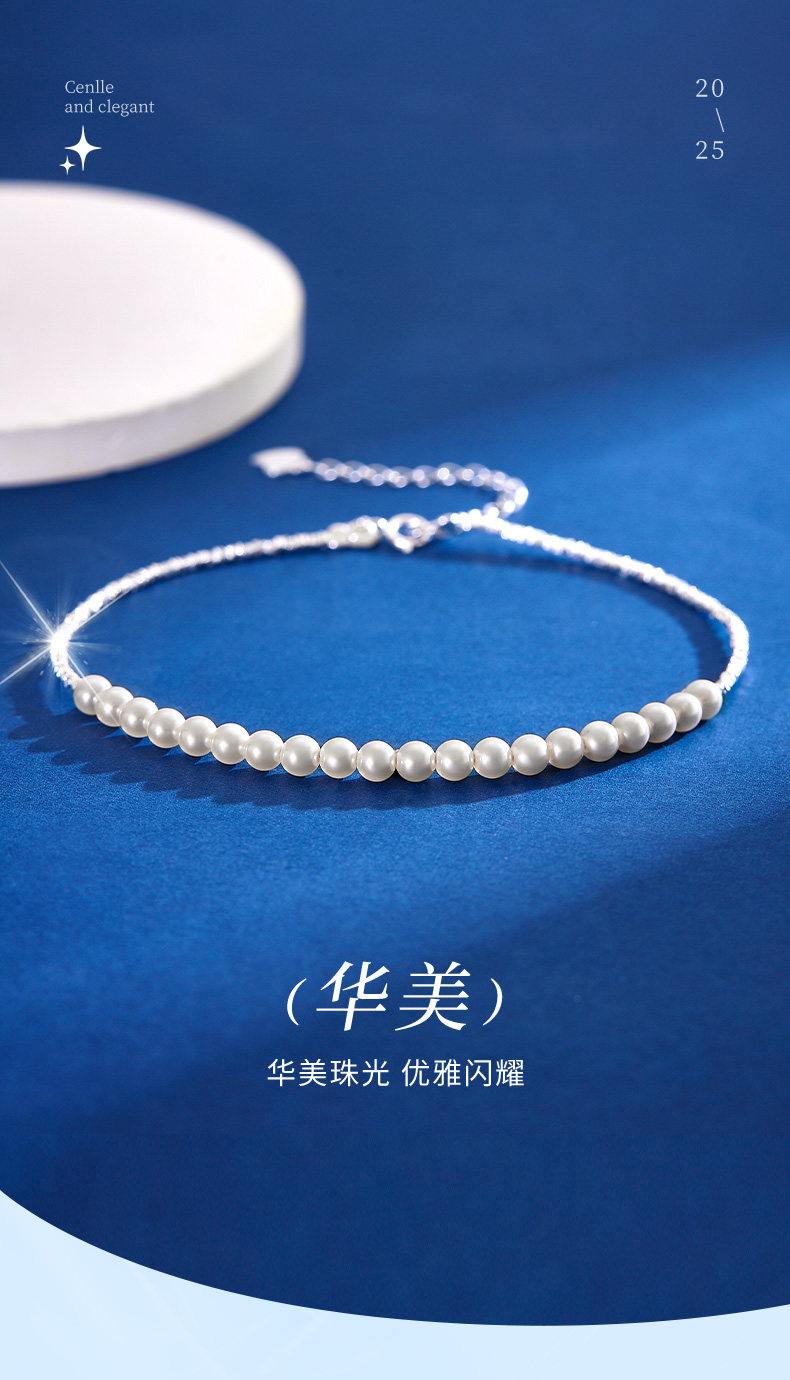 中国黄金925银天然珍珠脚链女2025新款碎银足链生日圣诞礼物女生