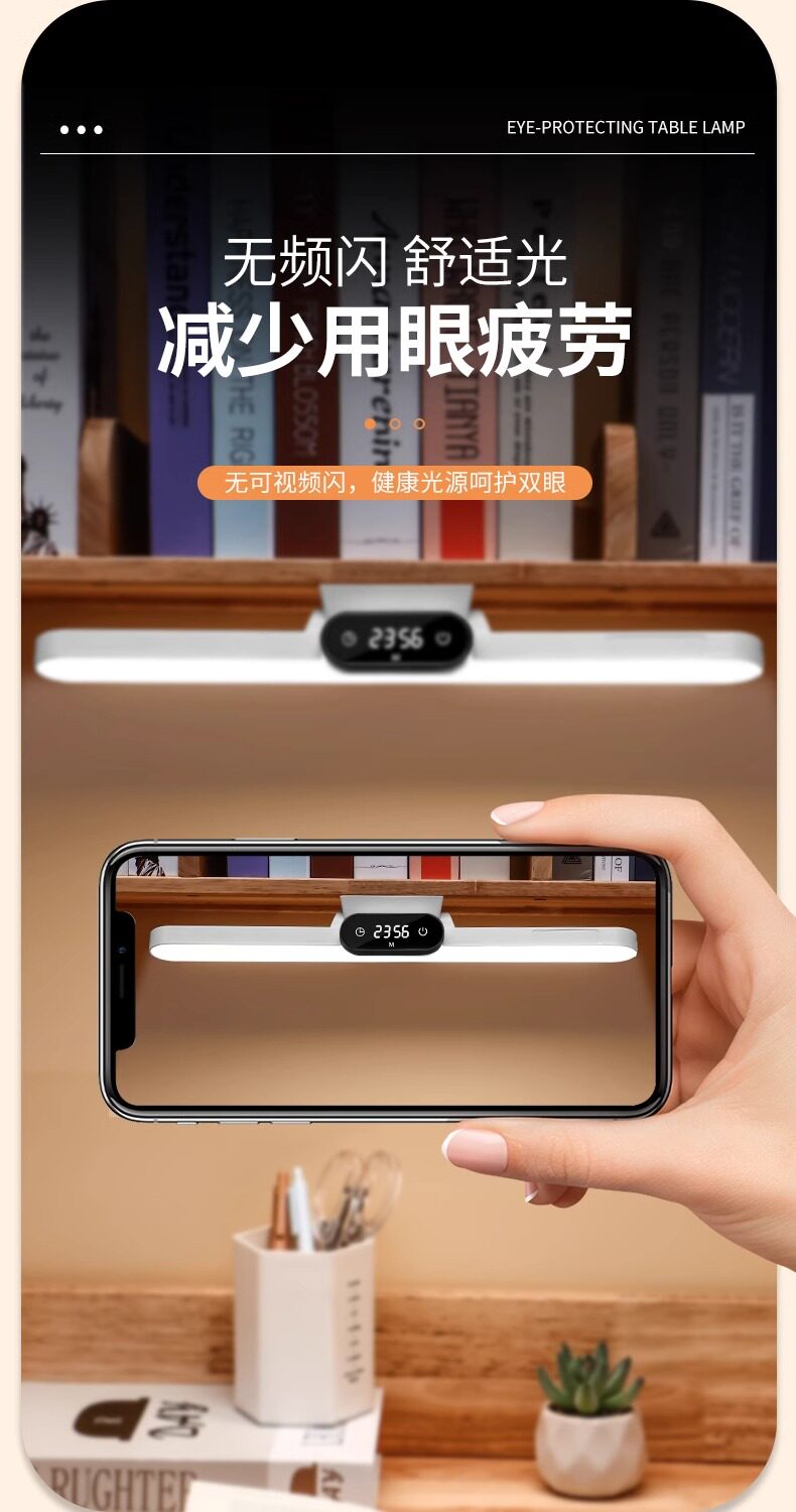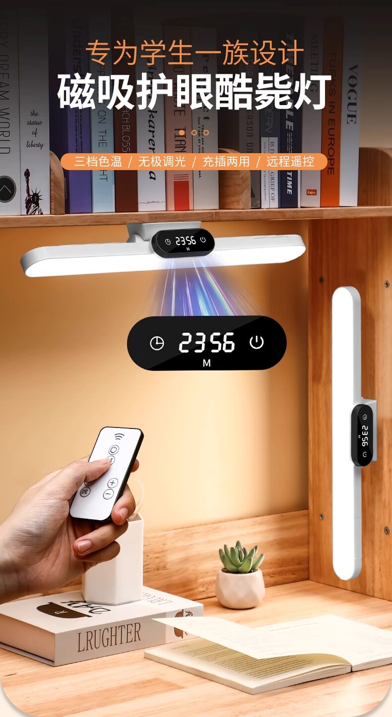 Desk Lamp for Studying, Dormitory Lamp for Students, Magnetic Cool Lamp, Desk Clock, Rechargeable Bedside Lamp, Eye Protection Device
