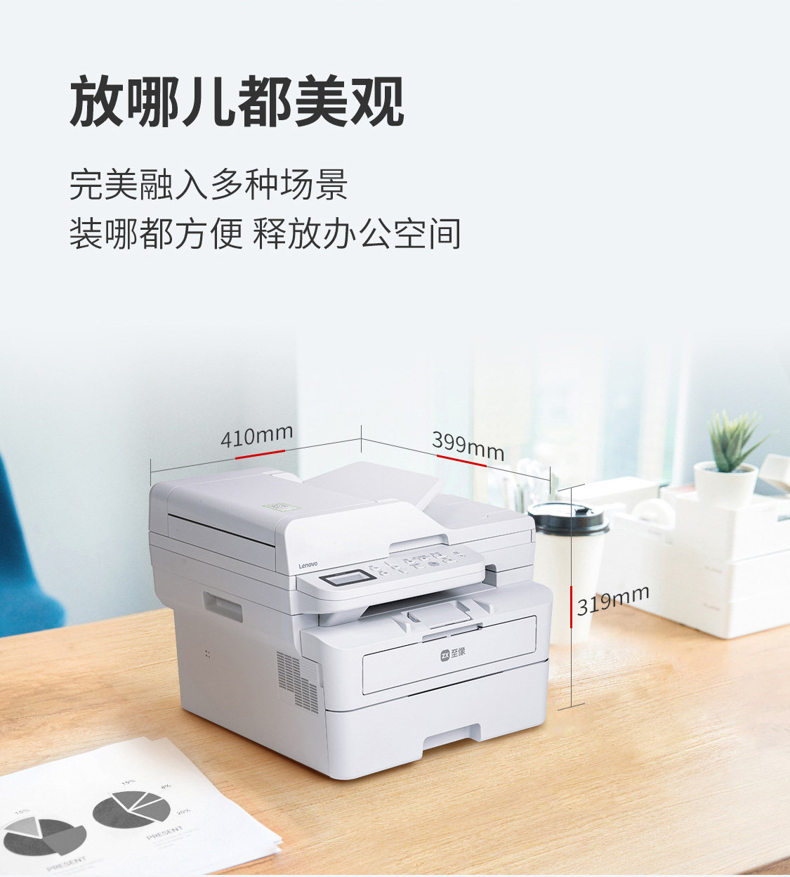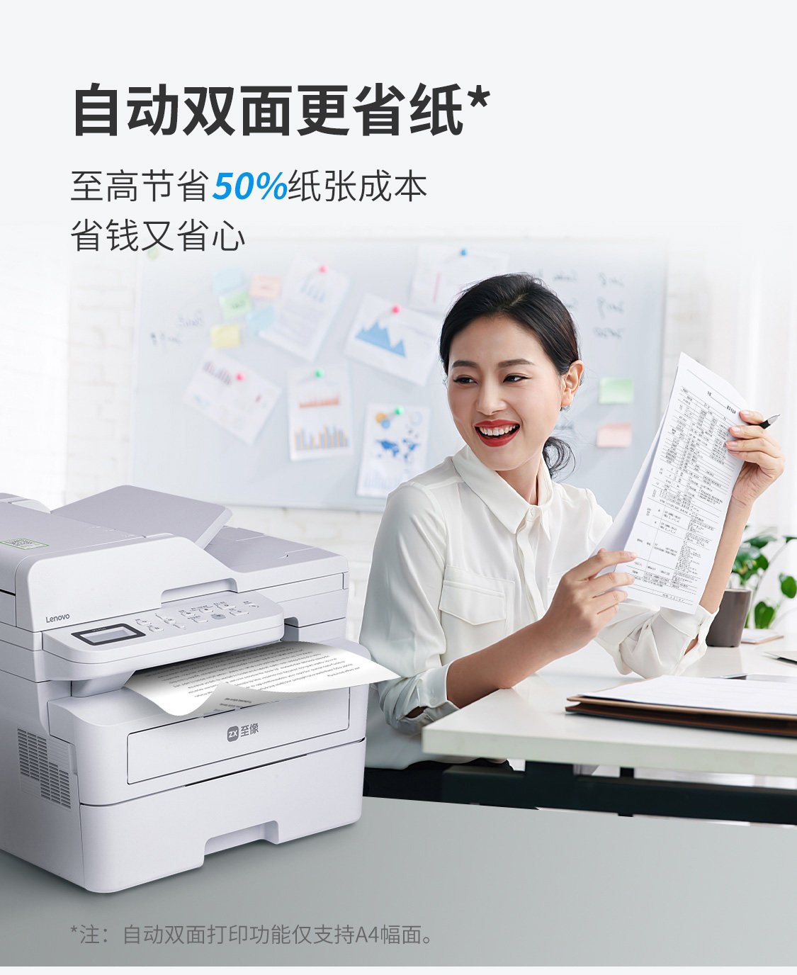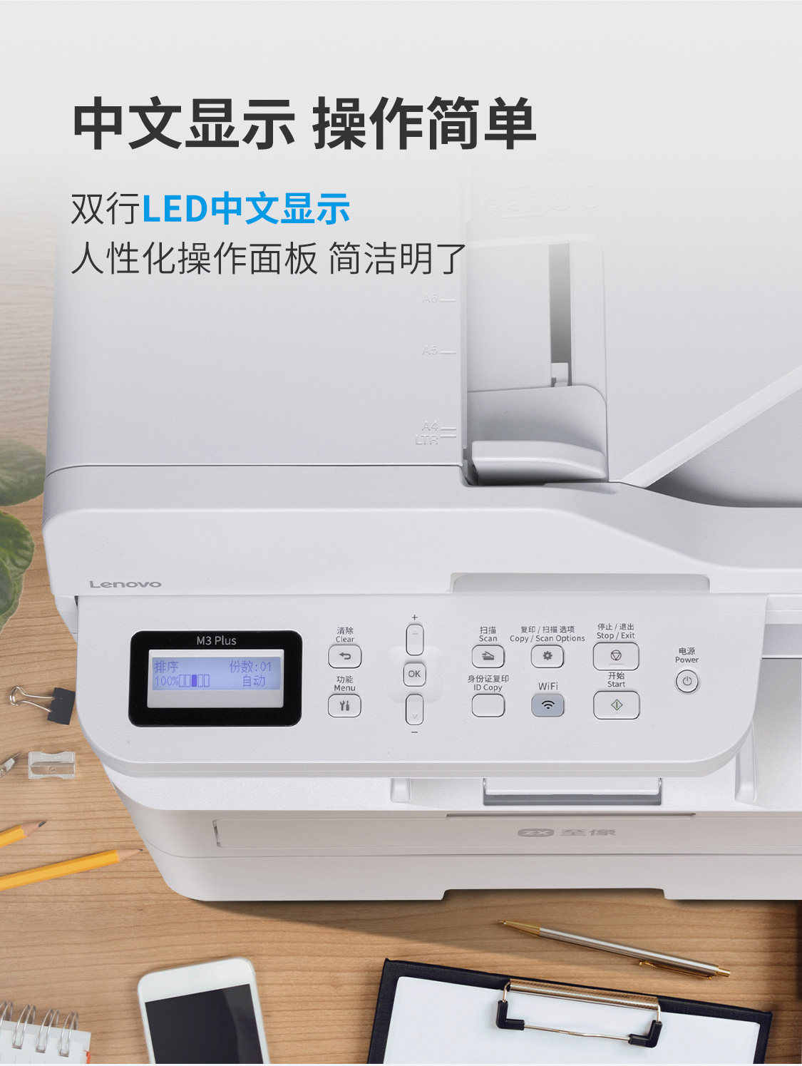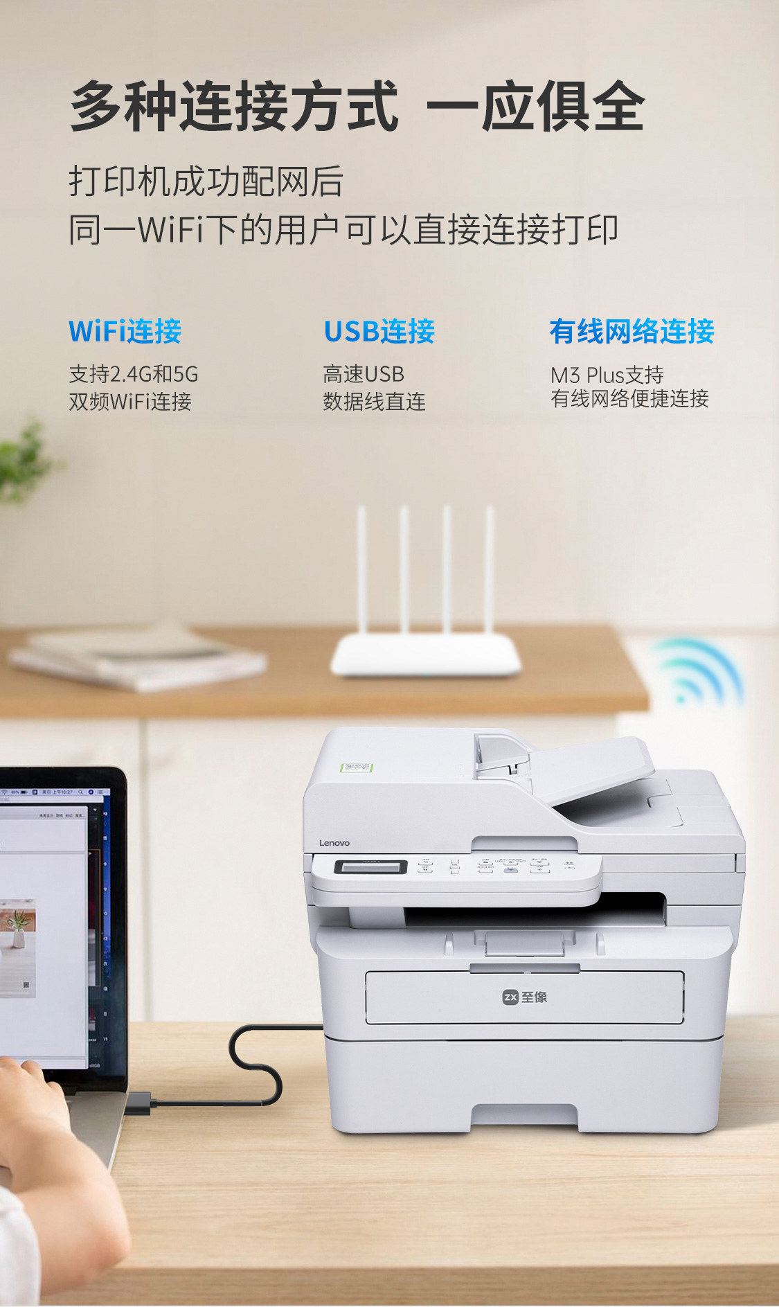Lenovo M3 Plus Black and White Laser Printer with Automatic Duplex Printing, 50-Sheet Document Feeder, Continuous Copying and Scanning All-In-One Machine, Business Office Dedicated, Home Use, Small Size, 5g Dual-Band Wifi, High-Speed Brother