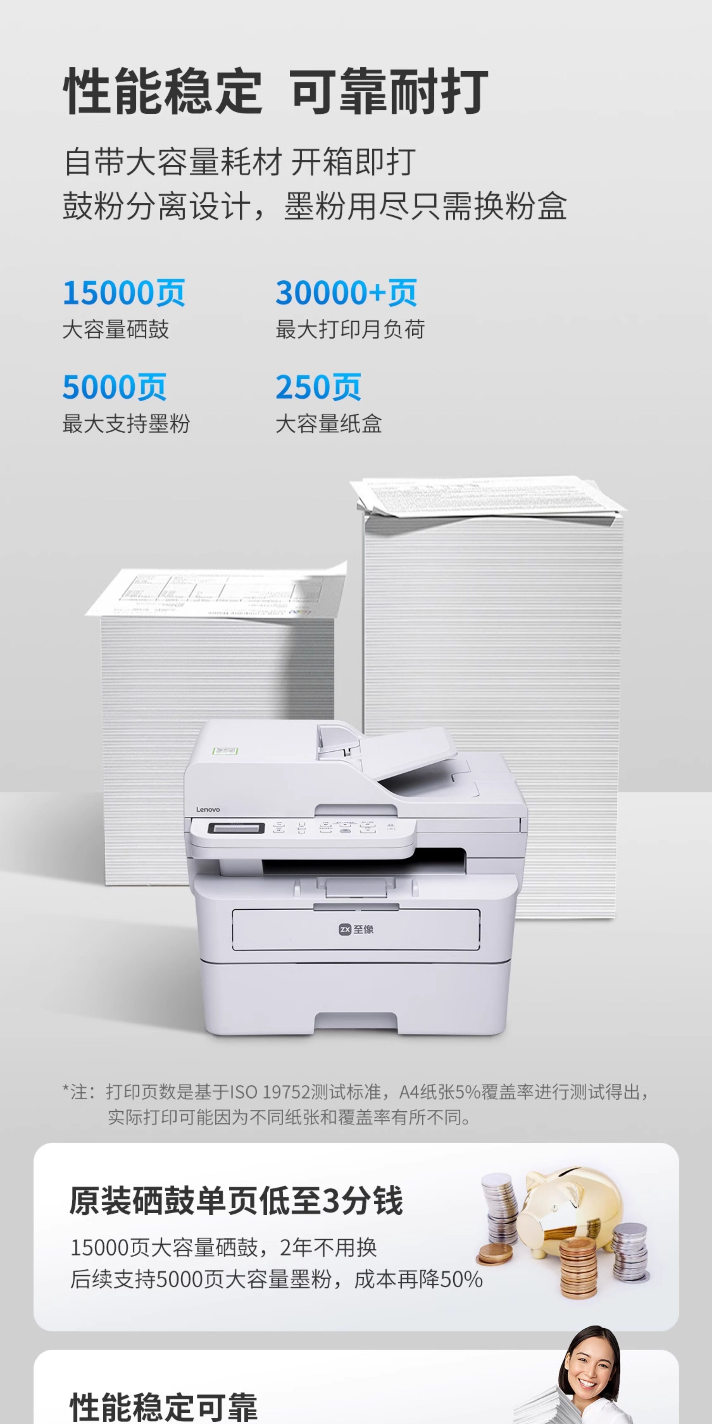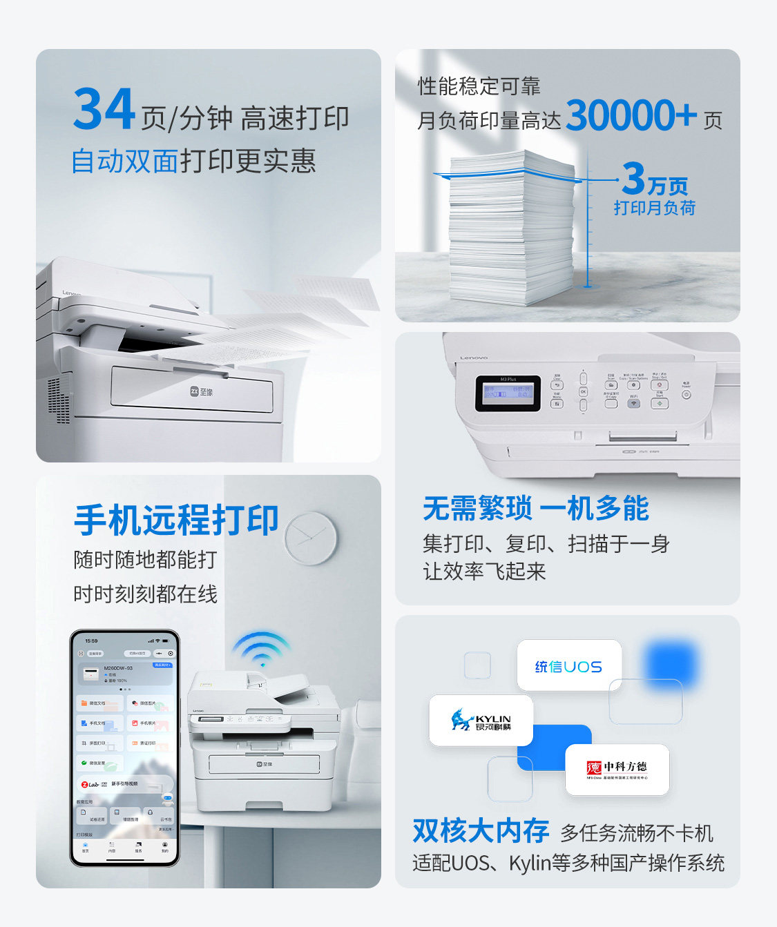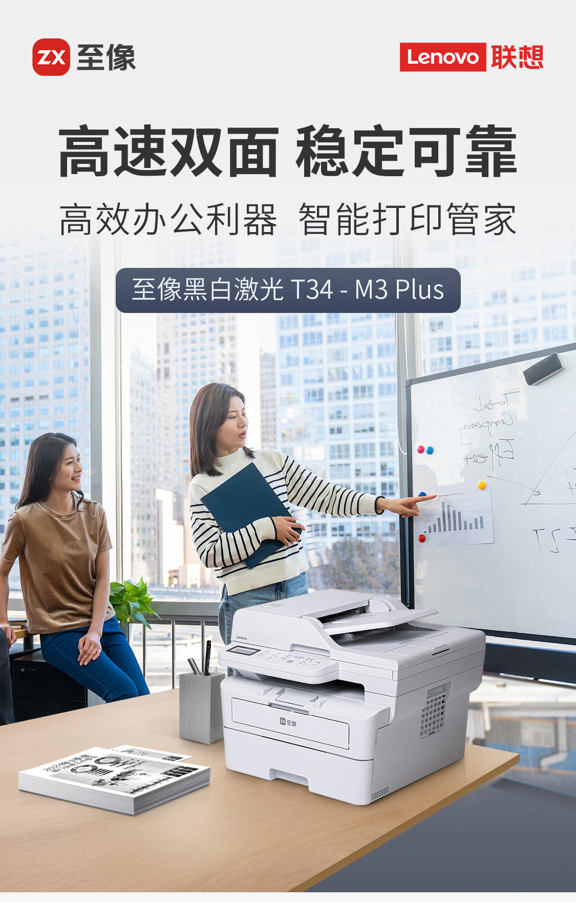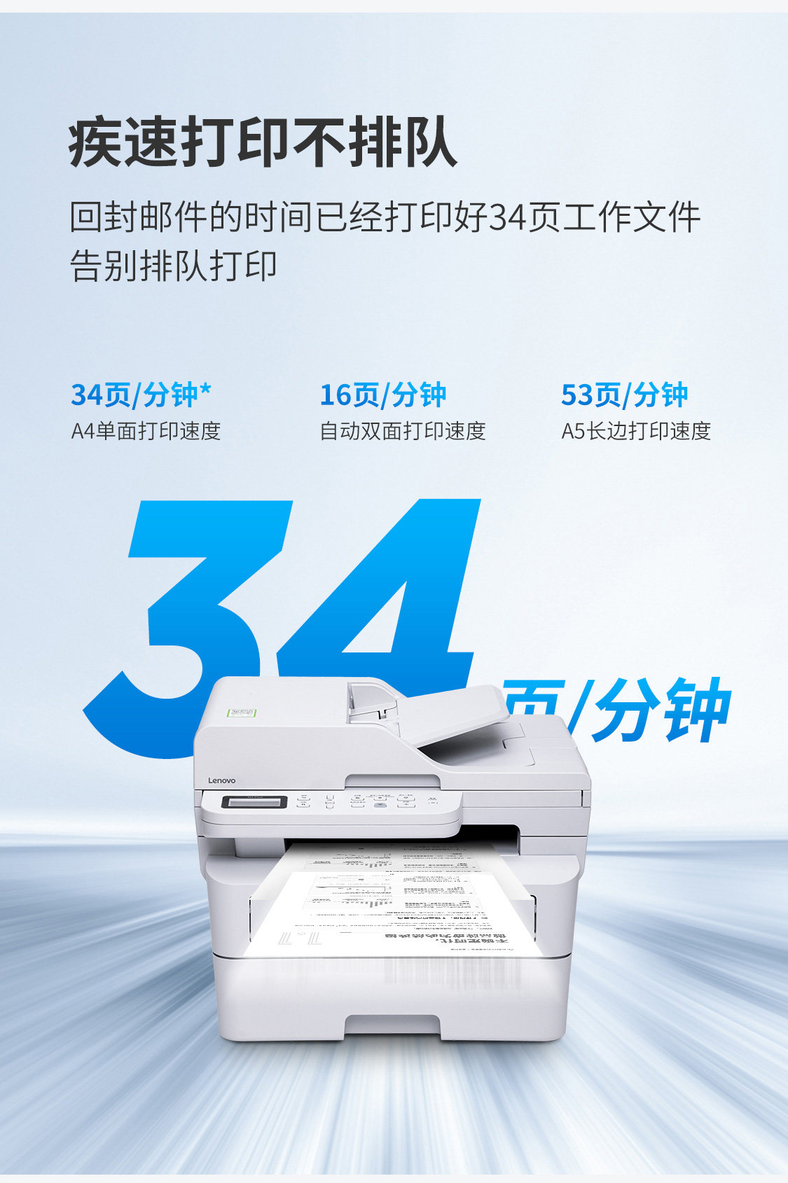 Lenovo M3 Plus Black and White Laser Printer with Automatic Duplex Printing, 50-Sheet Document Feeder, Continuous Copying and Scanning All-In-One Machine, Business Office Dedicated, Home Use, Small Size, 5g Dual-Band Wifi, High-Speed Brother