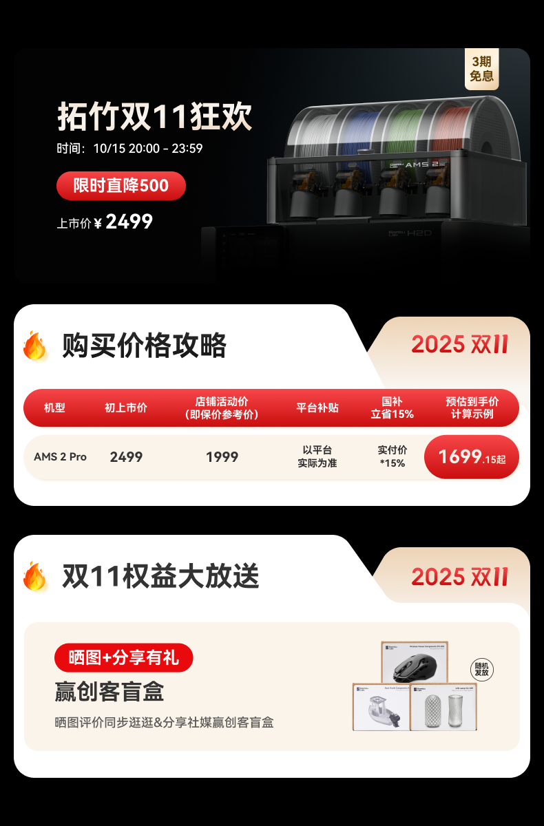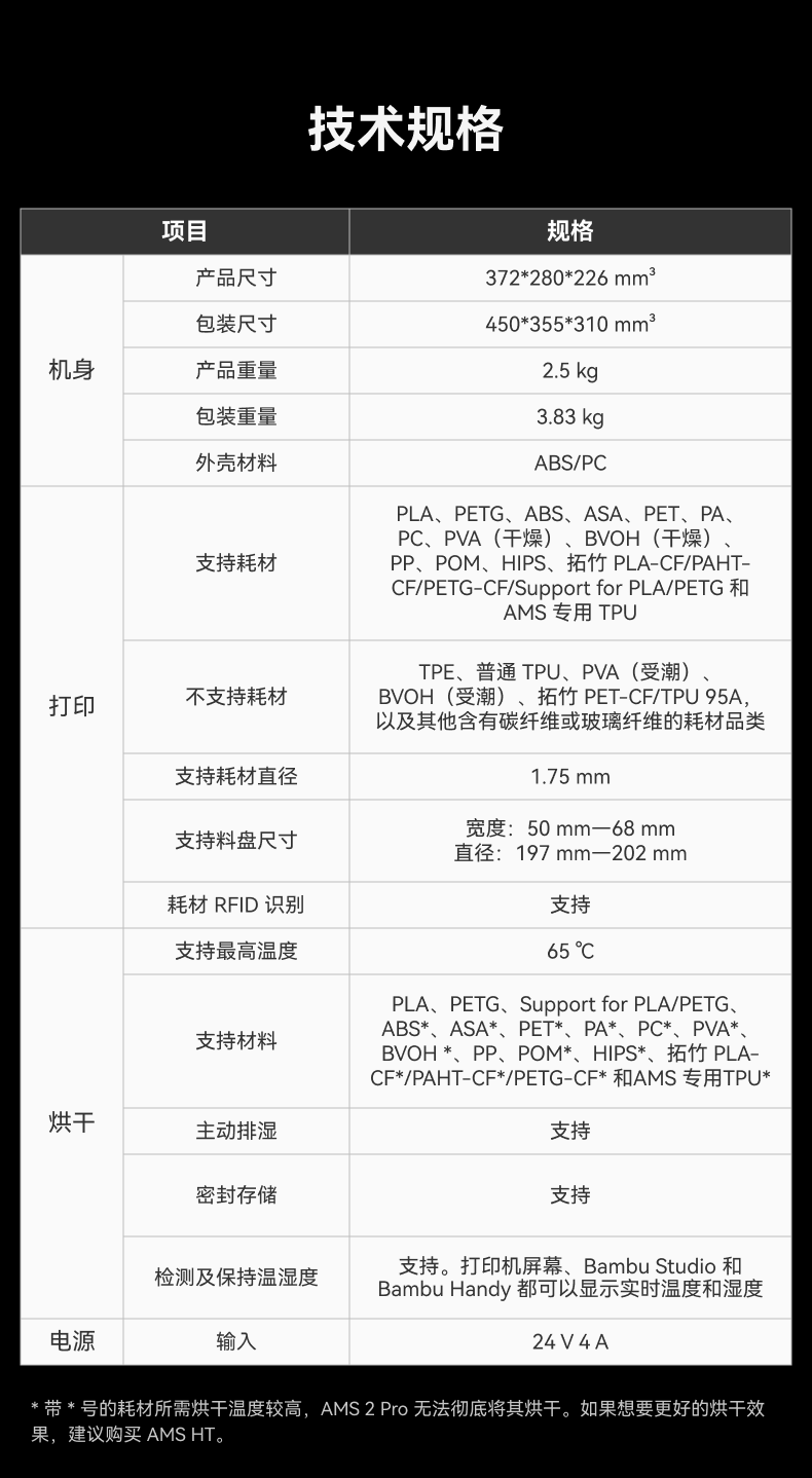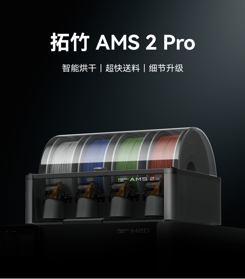 拓竹AMS 2 Pro 3D打印机自动供料系统 家用智能多色多材料 升级烘干新品 【大陆版】