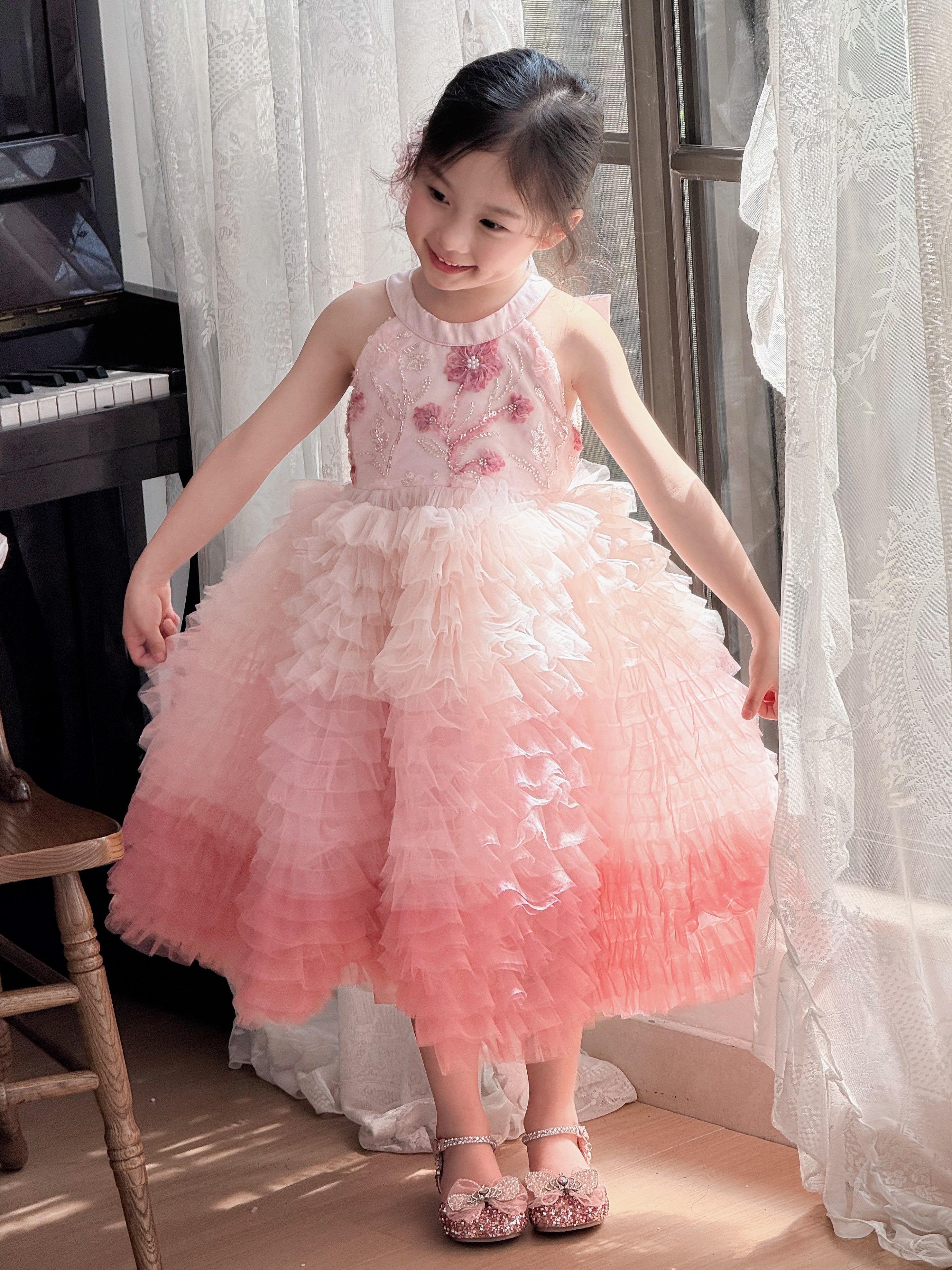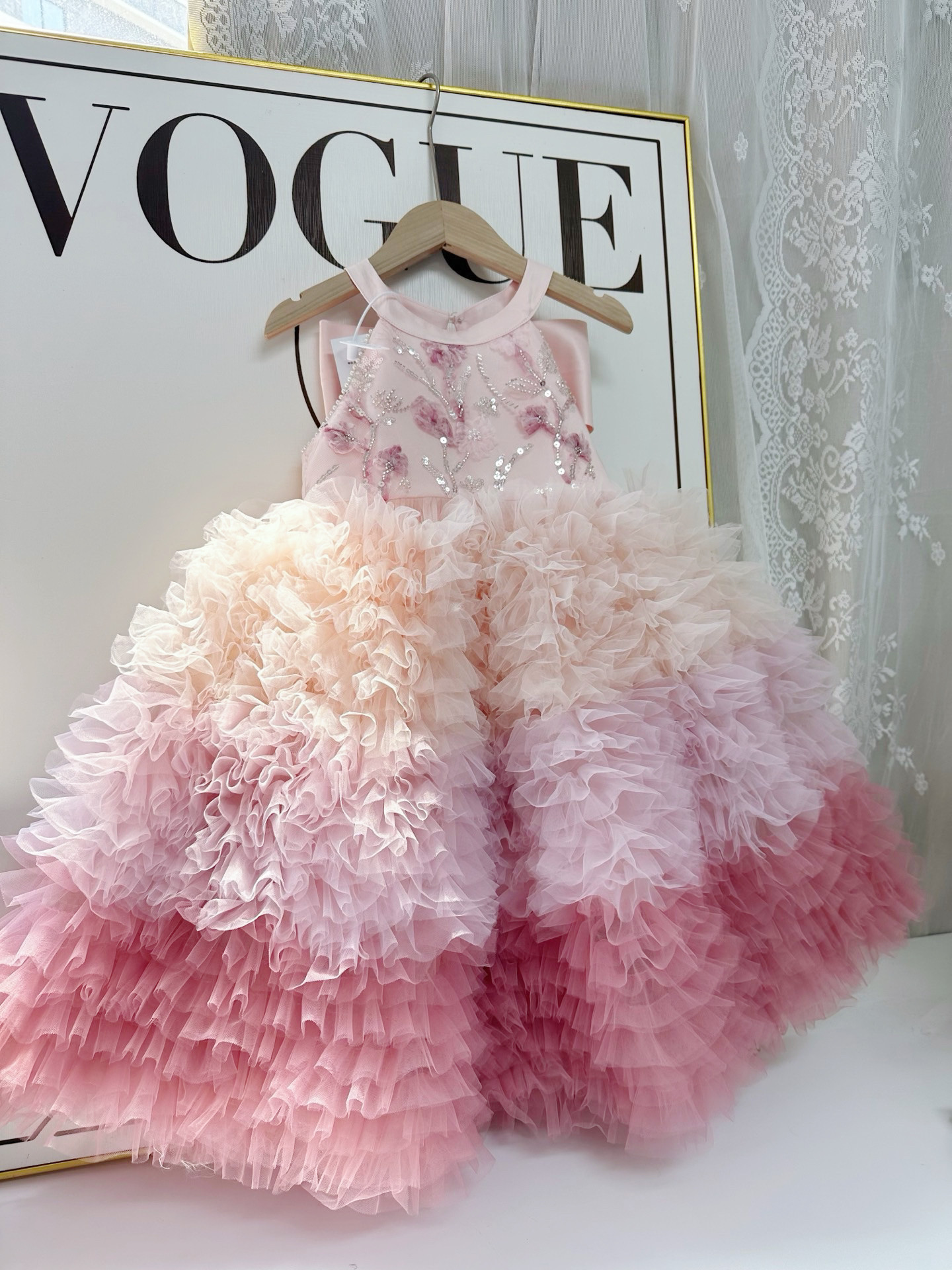 Mädchen Farbverlauf Rosa Schwerindustrie Kuchenrock Sommer Pailletten Puffy Geburtstag Prinzessin Rock High-End-Kleid Rock Geburtstagsrock
