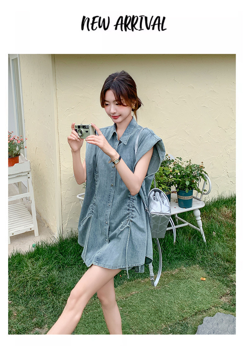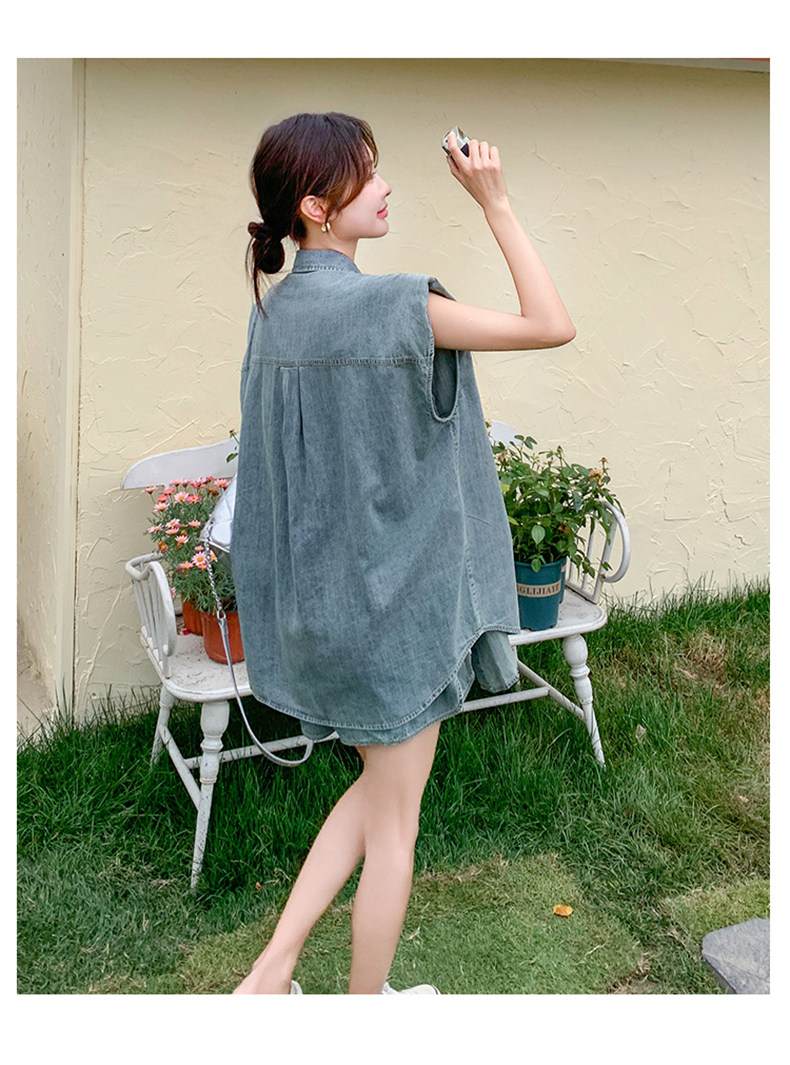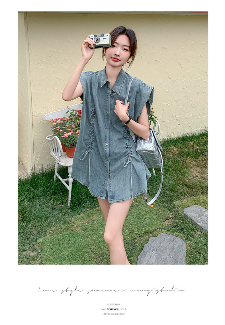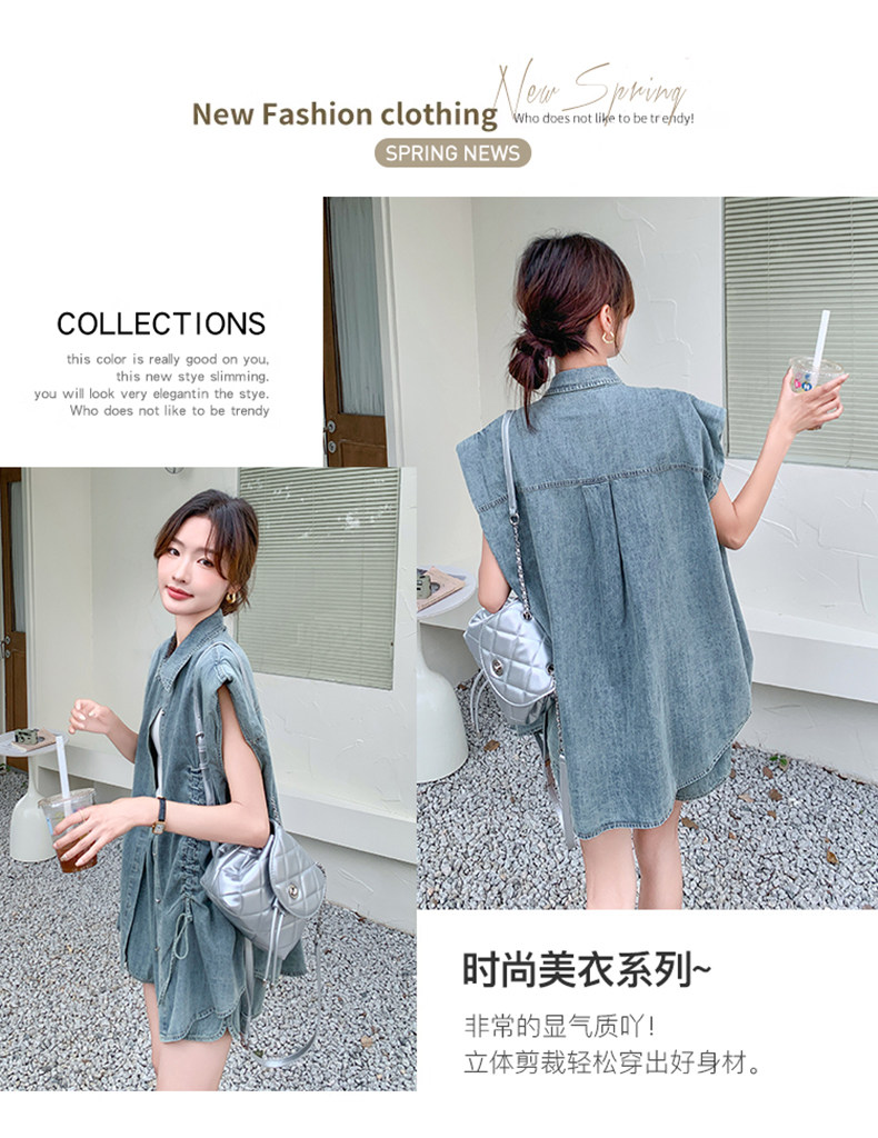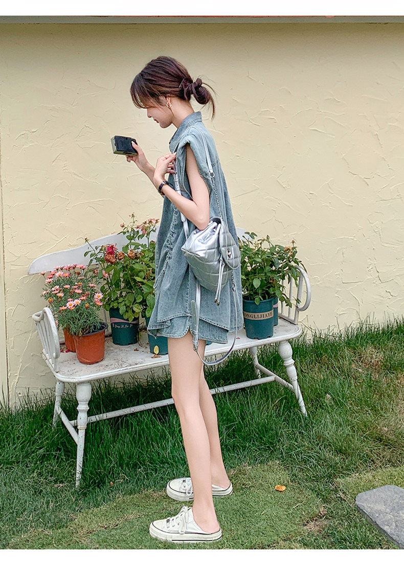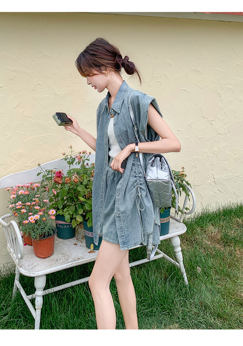 Blue Niche Design Denim Suit for Women, Summer 2025 New Korean Style Wrinkled Shirt Top and Shorts Two-Piece Set