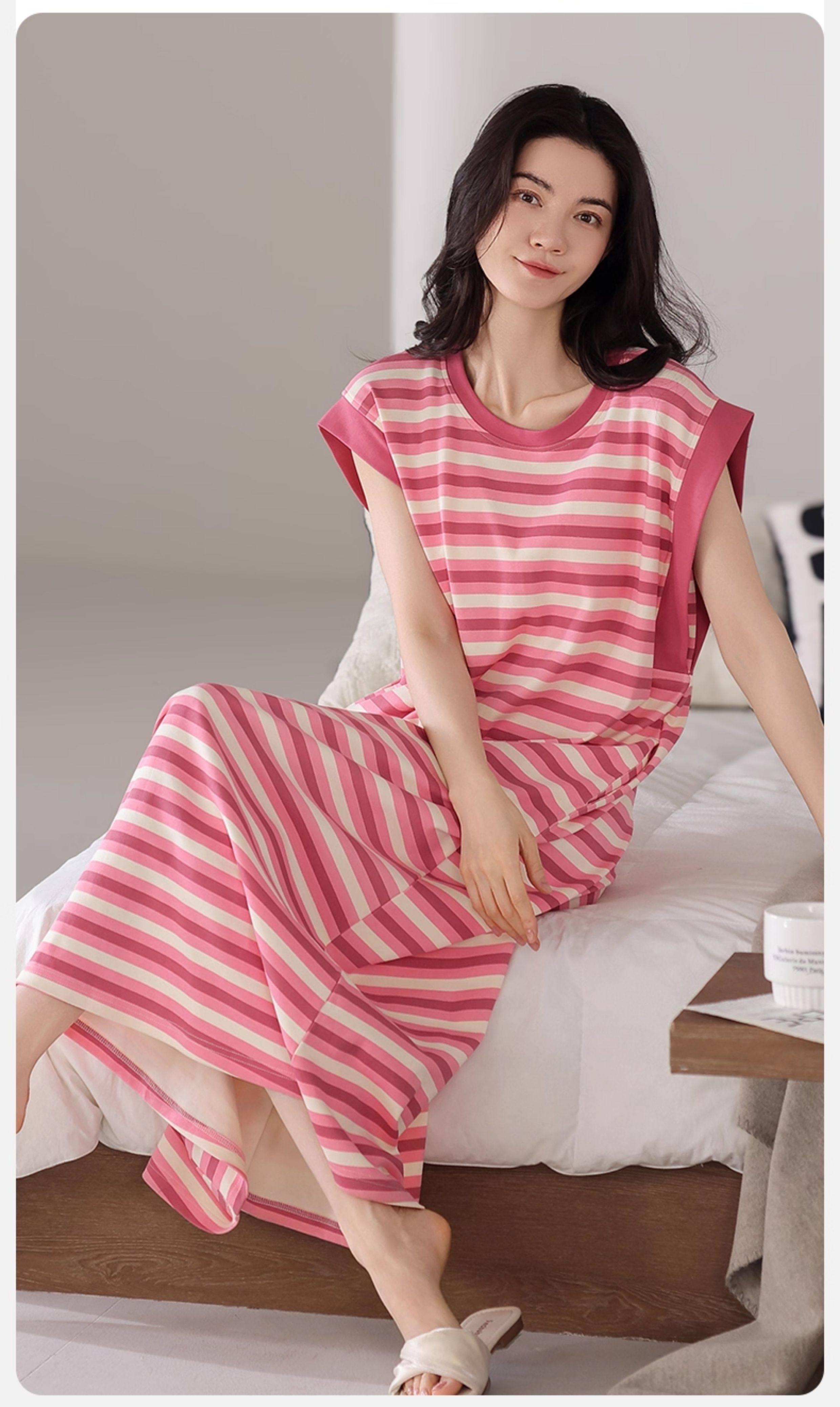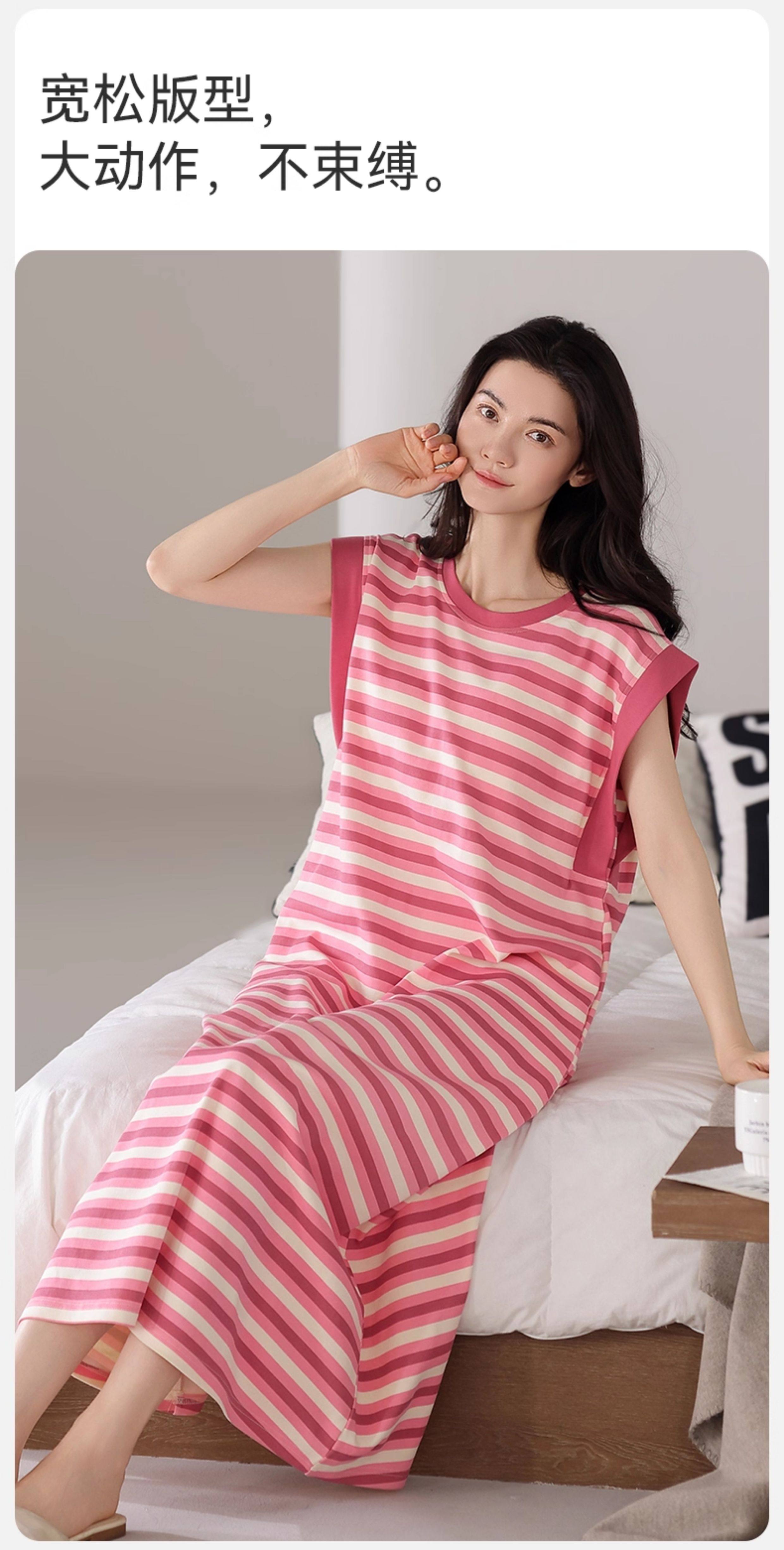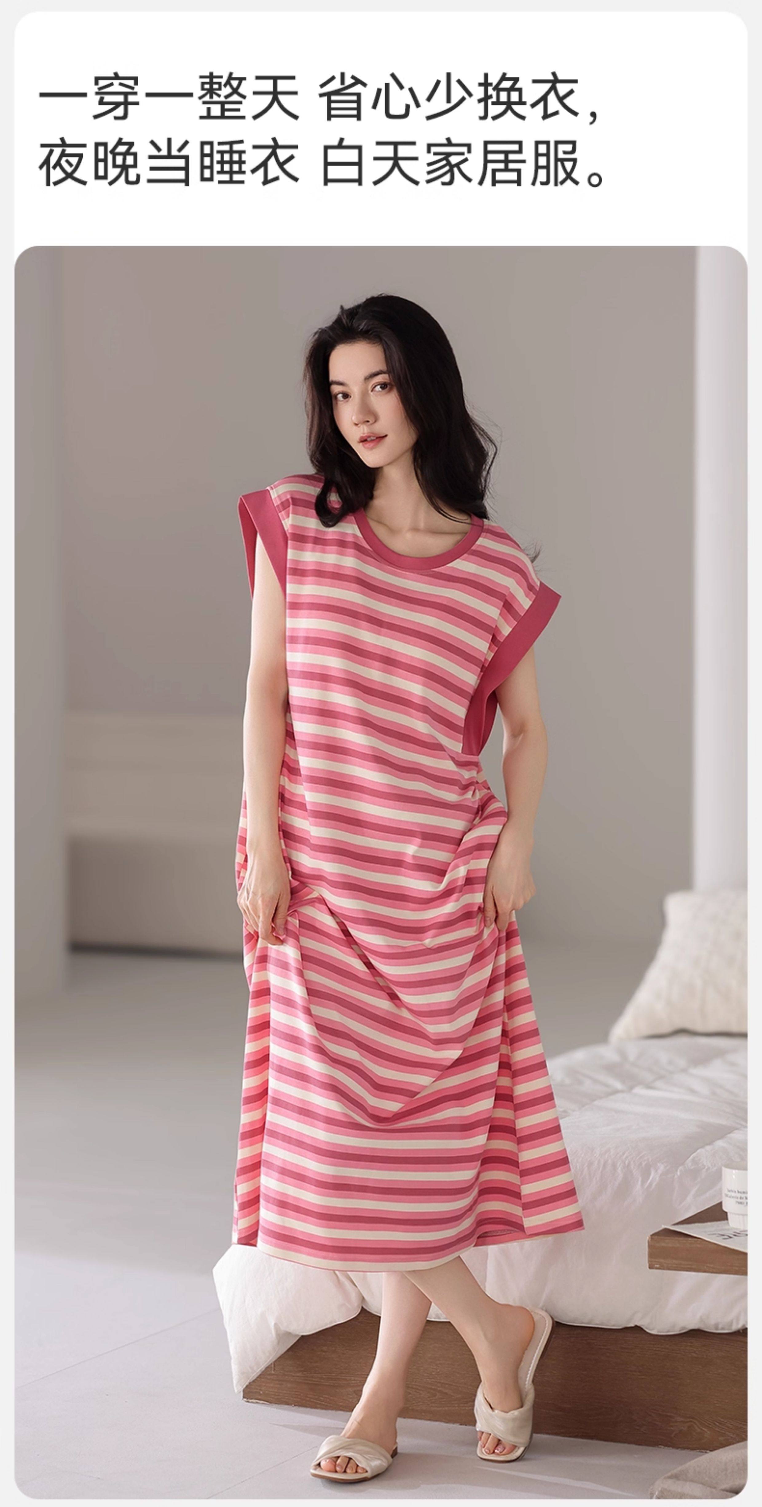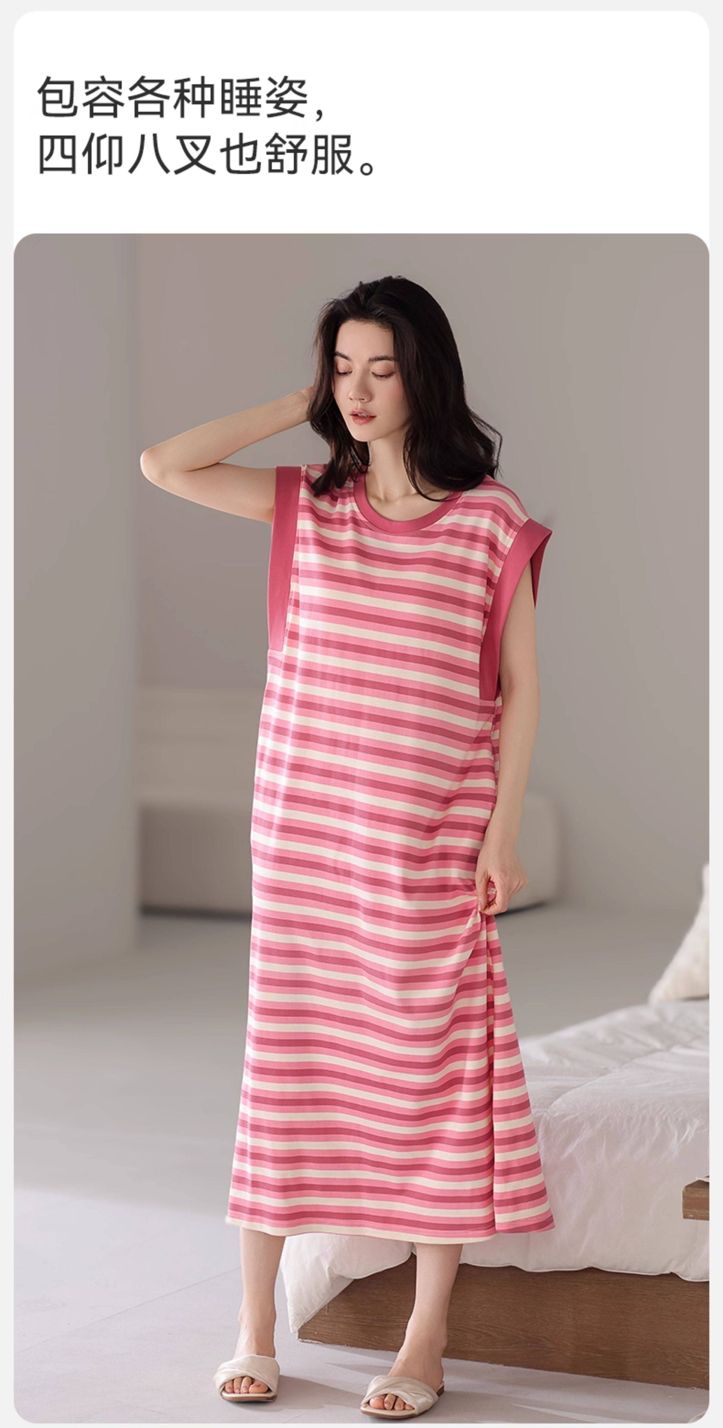 Camisón de algodón puro Catman, camisón Sexy para mujer con almohadilla para el pecho, suelto, de gran tamaño, se puede usar fuera de la ropa del hogar, nuevo verano 2025